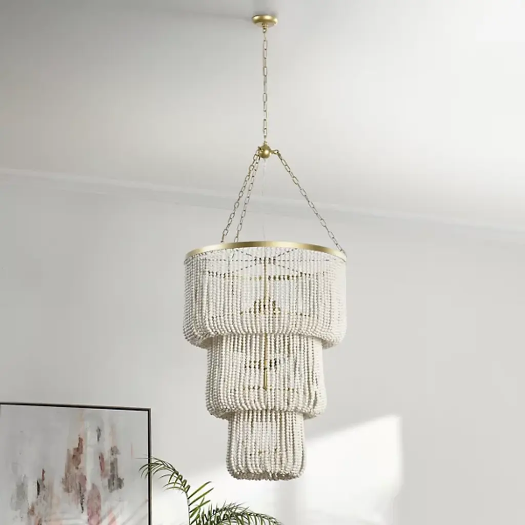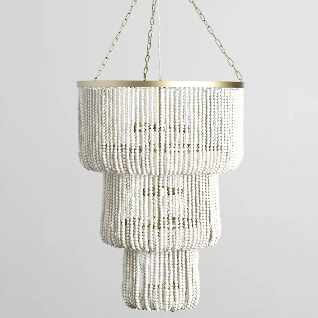The Amanda Chandelier by Classic Home reimagines illumination as a harmonious dance between artisanal craftsmanship and horizontal contemporary design. Wooden beads cascade through a three-tiered silhouette, creating a rhythmic interplay of light and texture that defies traditional categorization. The fixture is suspended with intention using a fine chain, bridging rustic charm and modern sophistication. The design transforms spaces, casting a warm, inviting glow through the beads that celebrate the beauty of the innovative design.