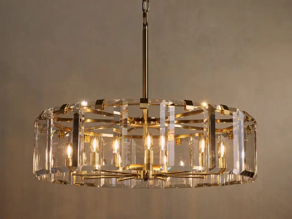 Boasting a thoughtful juxtaposition of clear crystals and sleek black-finished or brass-plated iron, our stunning Amaya Collection creates an artful display of illumination for living spaces, dining rooms, and beyond.