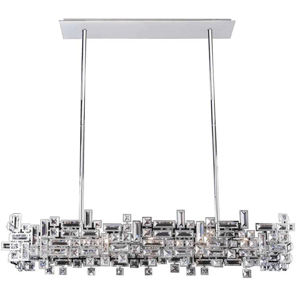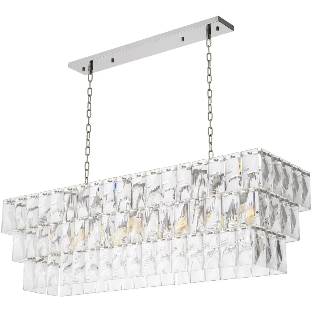 Amazone 10 Light 55.12 Inch Nickel Chandelier Ceiling Light In Crystal Glass, Rectangular