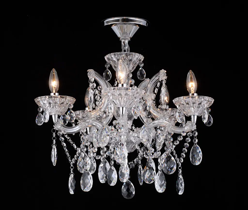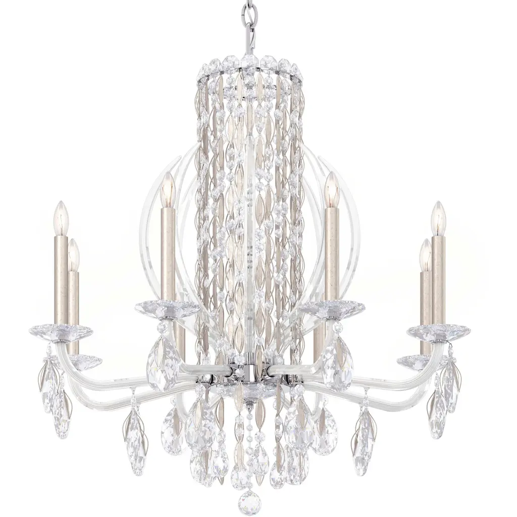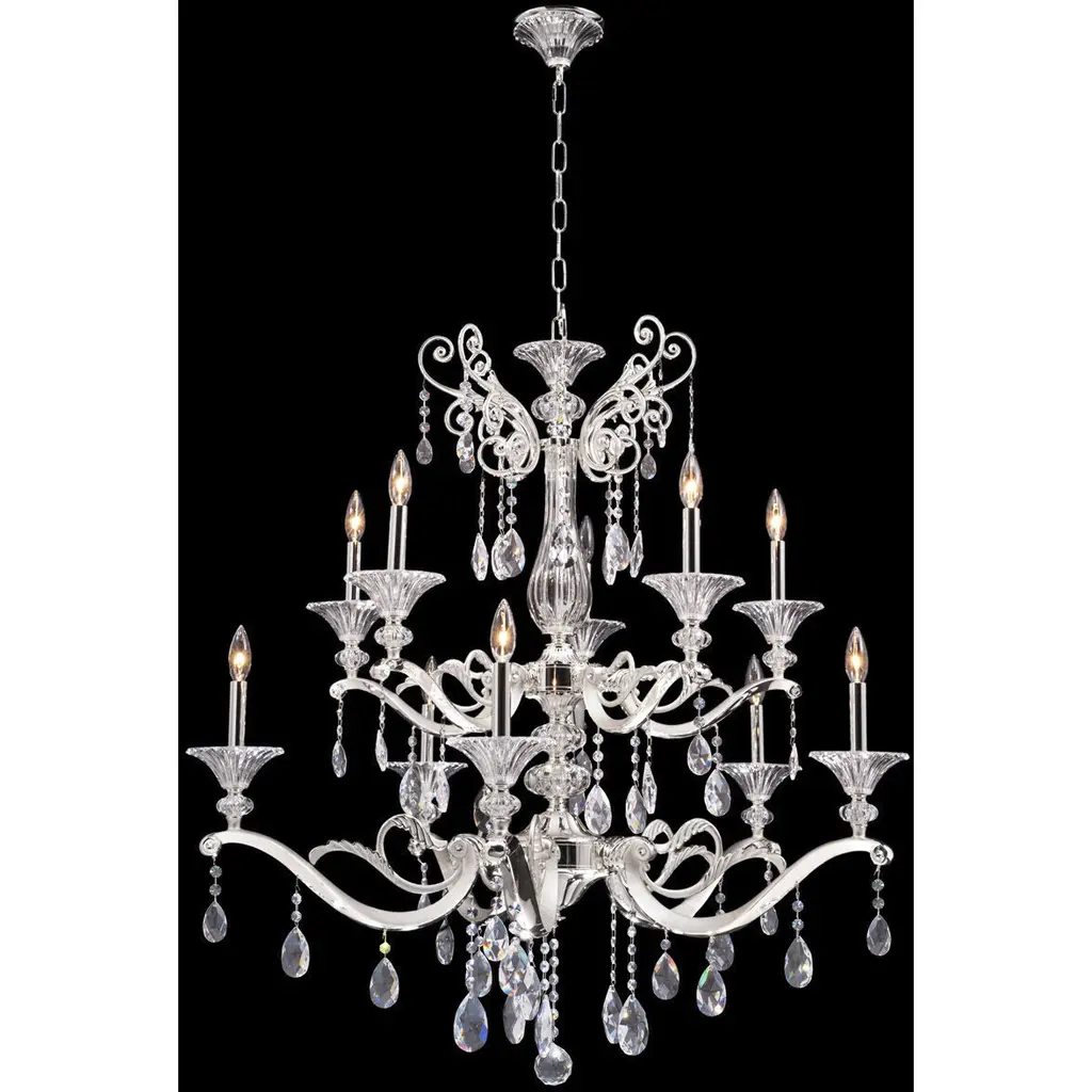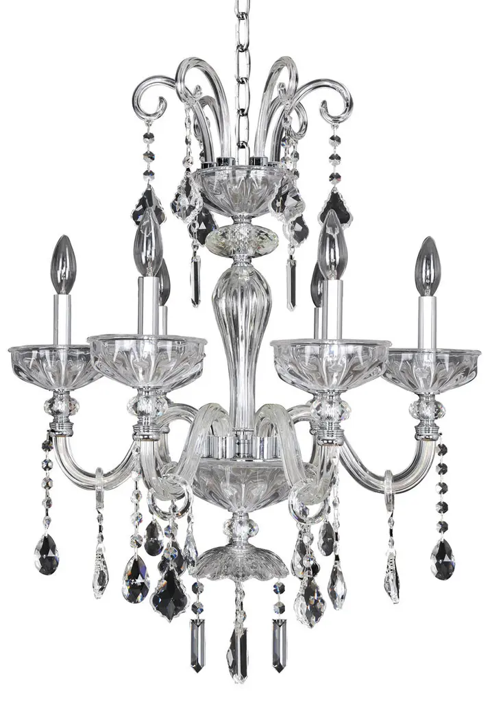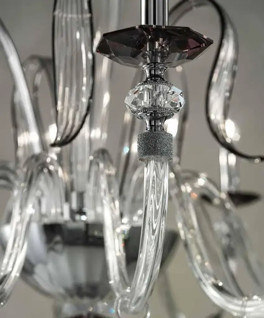 Finish: shiny gold, shiny silver. Other finishes on request.Colors: transparent with transparent bobeche and trasparent leaf with white detail. Transparent with fumè bobeche and transparent leaf with black detail. Other colors on request.Details: central body made in Tuscany. Leaf with colored edge and crystal cup are made in Venice. Embellished with Swarovski® pendants and Swarovski® crystal fabric application. Shade 34/62 mod. cone with hazel colour pongè fabric. Other lampshades on request.