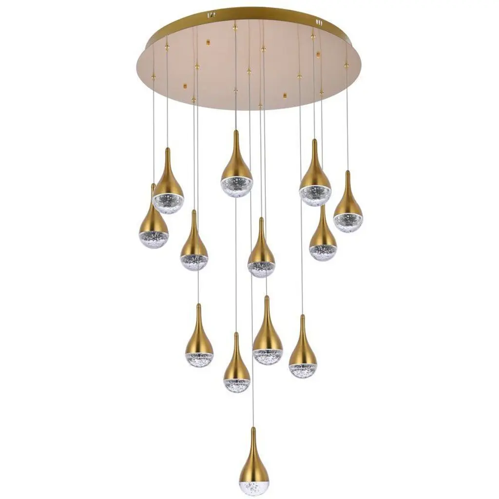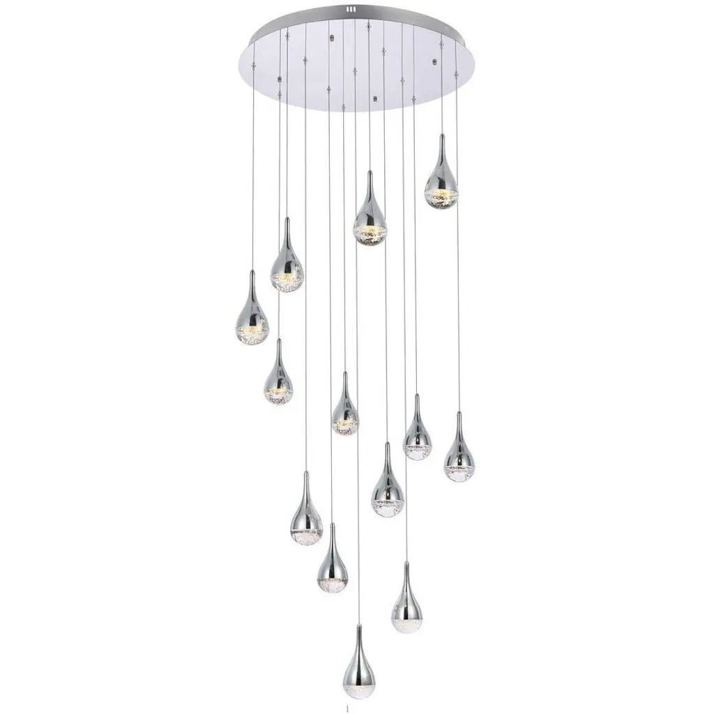 Our exquisite modern LED solid bubble crystal chandelier, a true masterpiece of contemporary design. Meticulously crafted with iron metal, this chandelier showcases a captivating arrangement of solid bubble crystals that exude an enchanting allure. With adjustable height functionality and compatibility with sloped ceilings, installation is a breeze, requiring no assembly. Emitting a warm temperature of 3000K, the energy-efficient LED lighting creates a cozy and inviting ambiance. Elevate your space with this stunning chandelier, effortlessly combining sleek iron with the mesmerizing beauty of solid bubble crystals, and immerse yourself in a realm of modern elegance and luminous warmth.