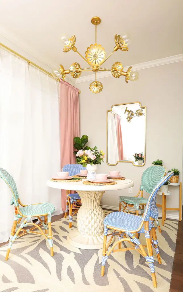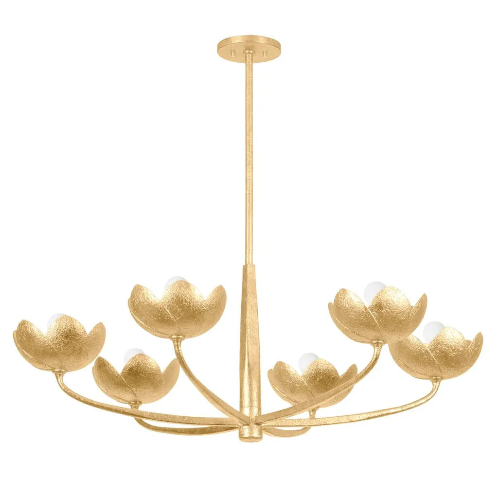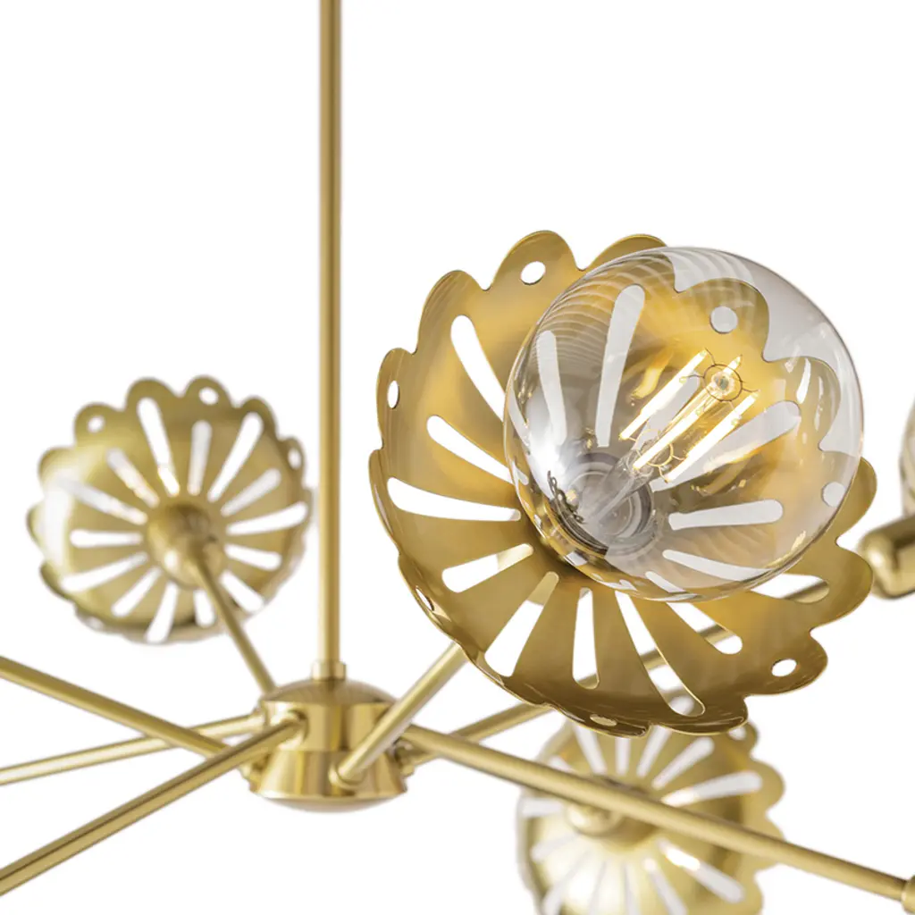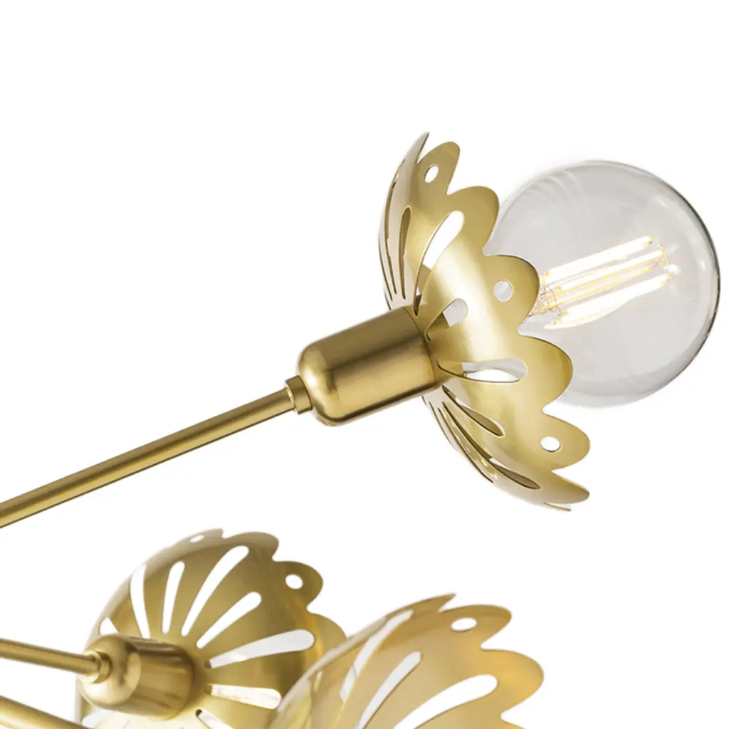 Metal shades resembling fanciful flowers cap this ceiling fixture's five round bulbs, commanding attention whether it's on or off. Because the chandelier is damp rated, you can use it in your bathroom as well as over your dining table, in your entryway, or just about anywhere else in your home.