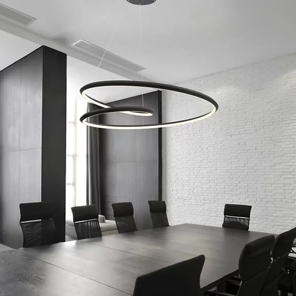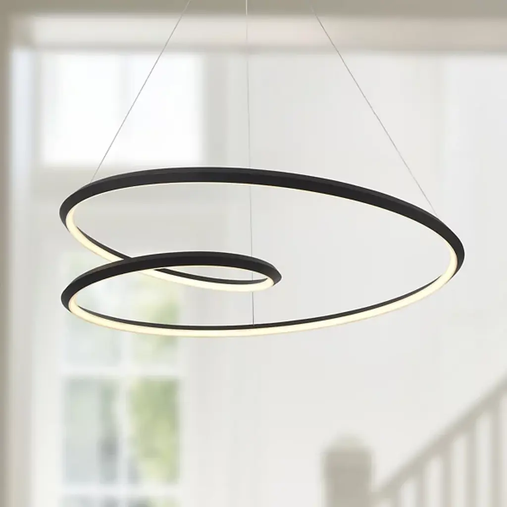 Kuzco Lighting presents the Ampersand LED Chandelier. The pendant features an extruded and rolled triangular aluminum loop lined with a flexible silicon rubber diffuser. Suitable as an up and down light, the integrated LEDs stand out as long-lasting, low energy drawing, and eco-friendly luminaires. The Ampersand will animate your space as a gestural line drawing.