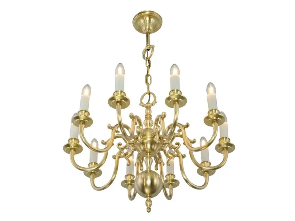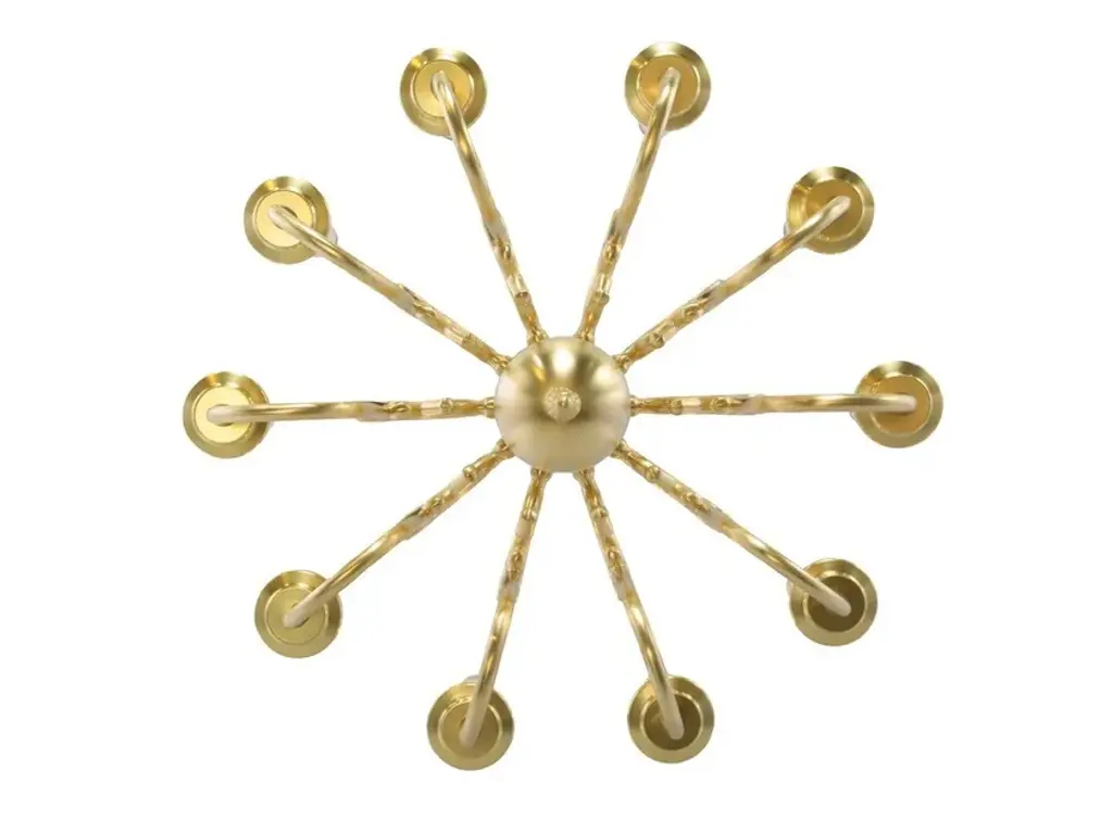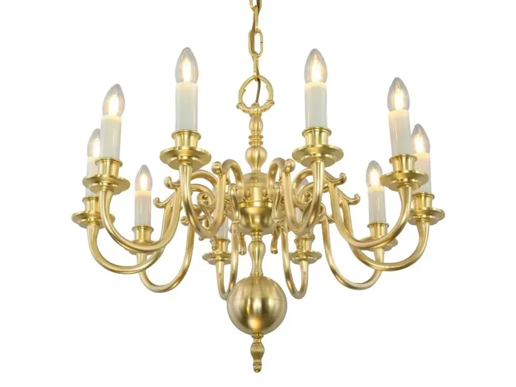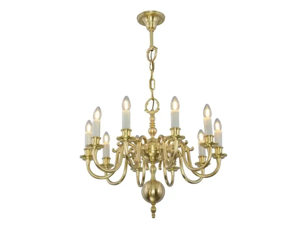 AMSTERDAM 10 ARMED CHANDELIER SMALL is a brass chandelier from the AMSTERDAM collection by Patinas. Available in various finishes.Finish: antique, shiny brass, matt brass, shiny nickel, matt nickelLight source: 10x60W, E14Material: brass