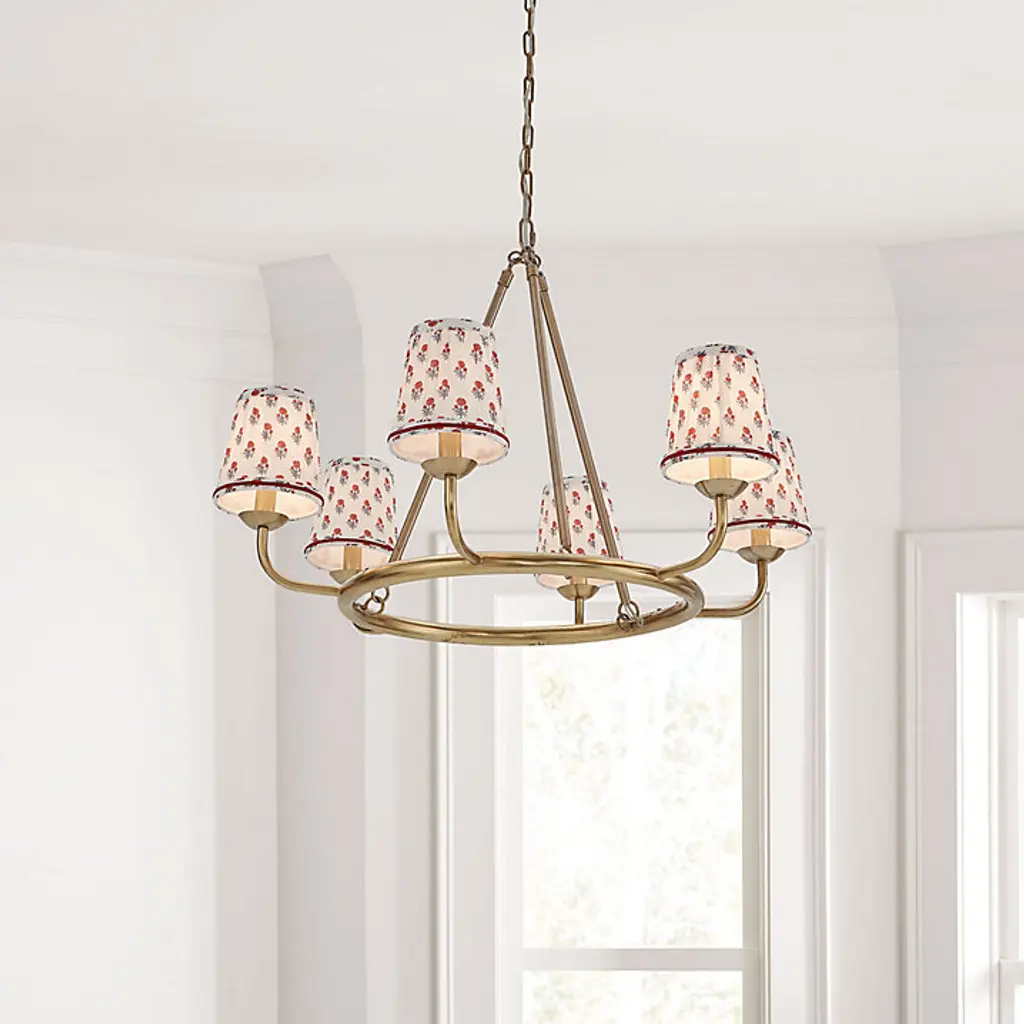 Designed by our talented artist, the pretty watercolor floral pattern was inspired by a traditional Indian block print. Our Anais Tall Pleated Chandelier Shade is handmade of poly-cotton blend with classic mushroom pleats. Anais Pleated Tall Chandelier Shade features: