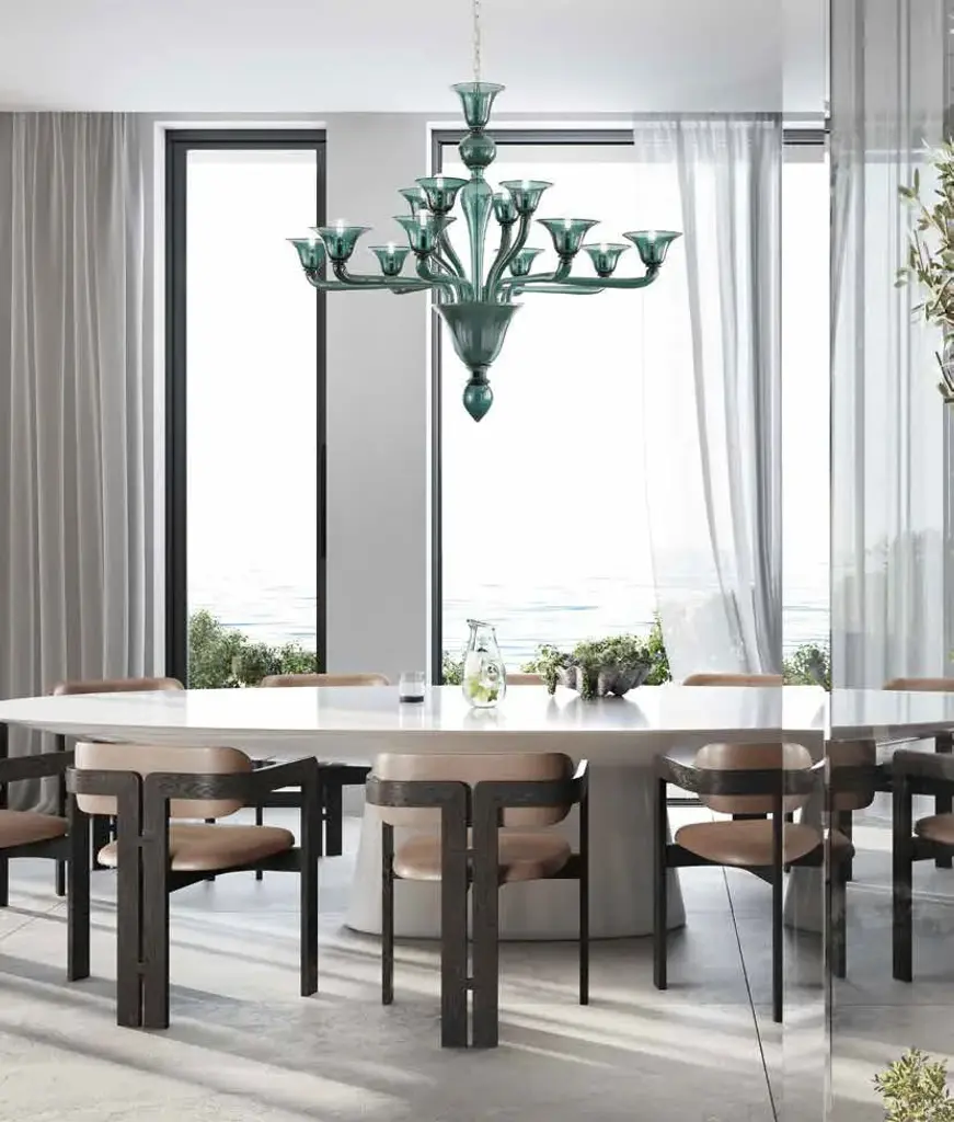 Anastasia is a chandelier in blown glass, an object meticulously worked, selecting a range of metallic finishes, glass colours and precious details that make it unique and handcrafted.