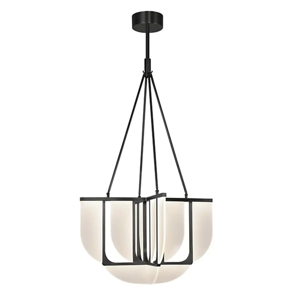 Meet the Anders LED Chandelier from Alora Lighting, a contemporary reinterpretation of traditional design. This piece artfully combines light guide technology with Art Deco-inspired elements, resulting in a stunningly decorative chandelier. Designed by Elisa Carlucci, its fusion of vintage aesthetics with modern innovation makes the fixture genuinely unique. Its design features a cylinder canopy and slender metal supports, beautifully complemented by gracefully curving opal glass fins. Crafted from steel and aluminum, this chandelier effortlessly blends modern sophistication with classic charm, making it a decadent, radiant addition to any interior.