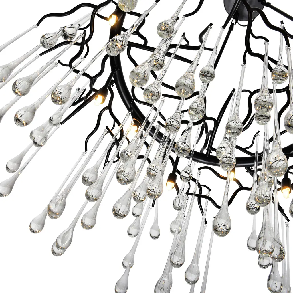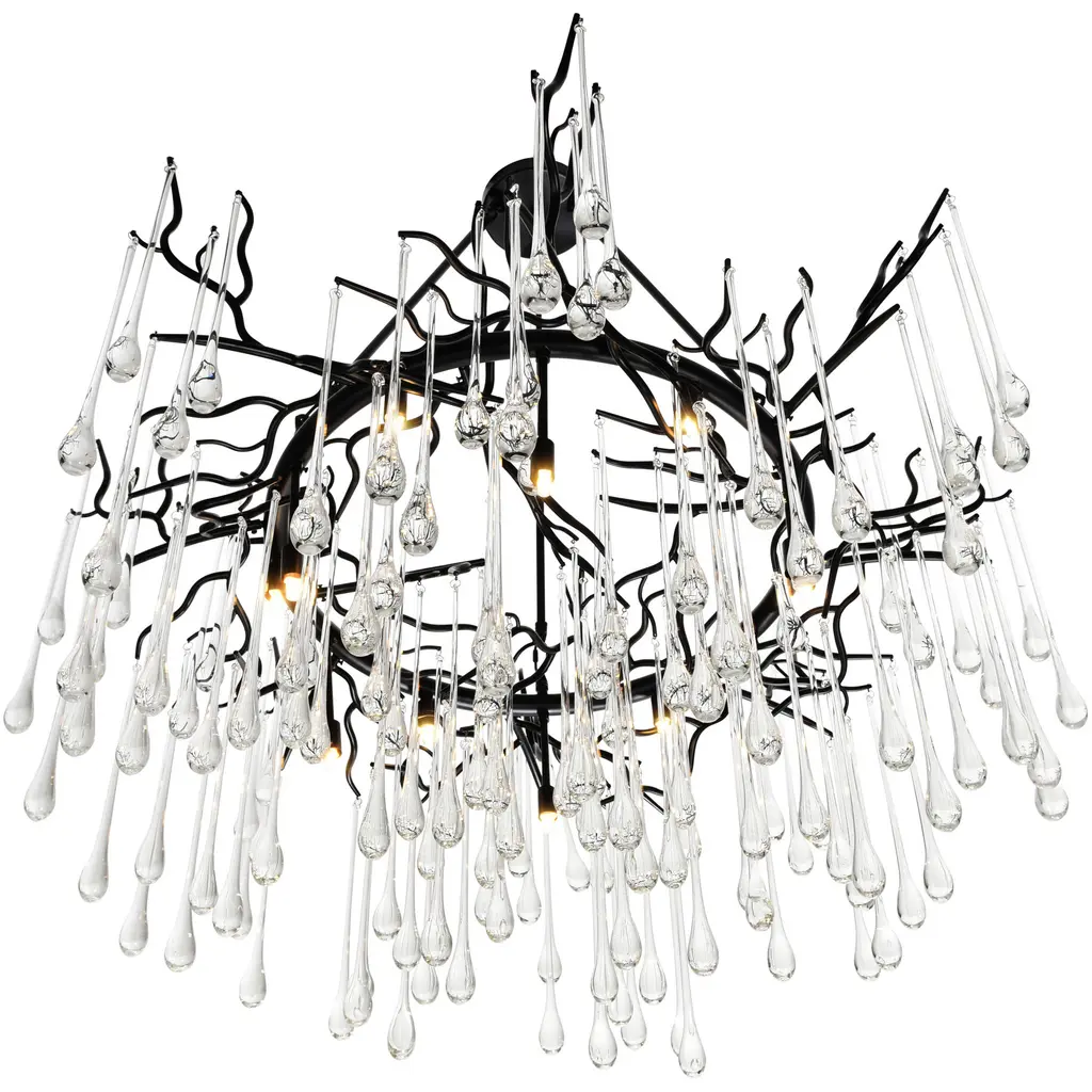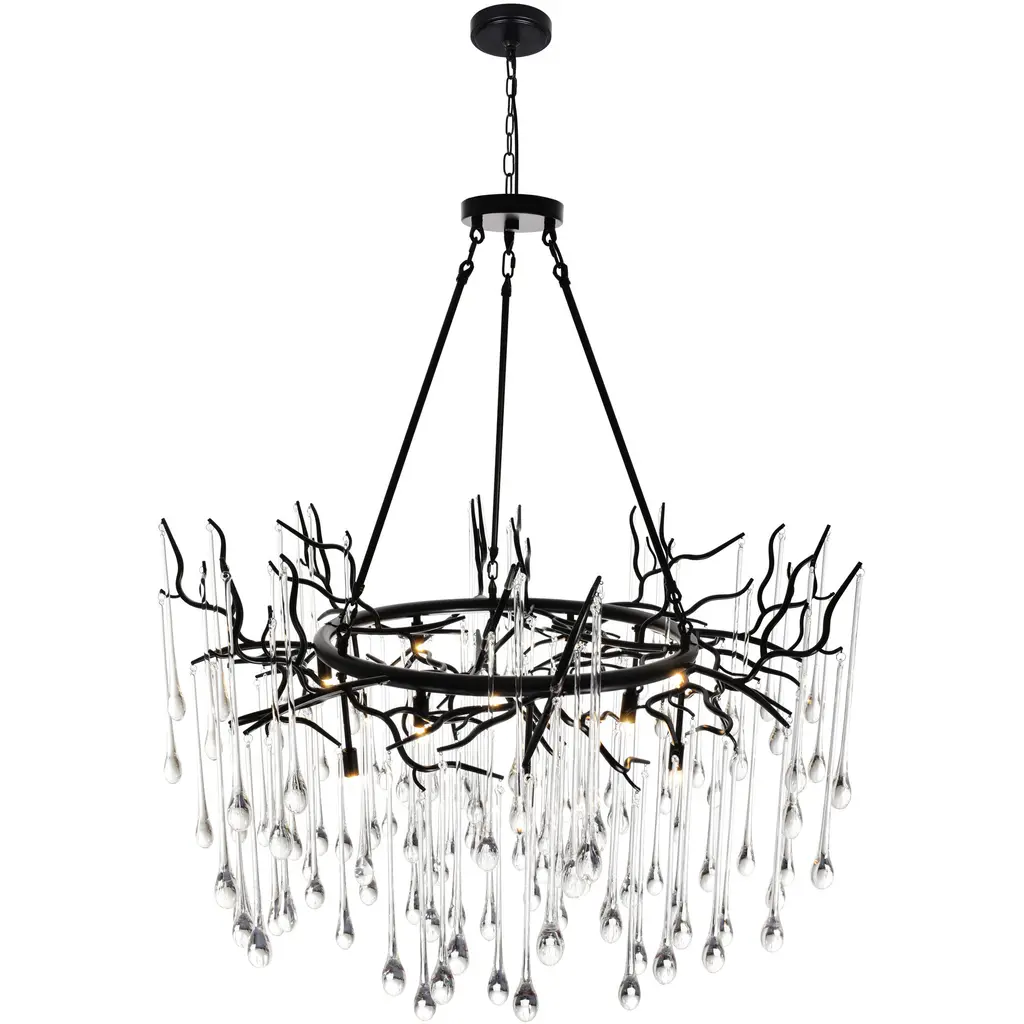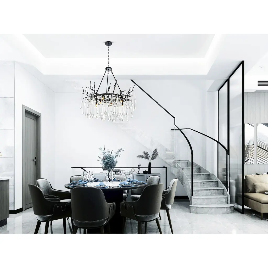 Elevate your space with sculptural eleganceintroducing the Anita 12-Light Chandelier in striking black finish. From the artistic Anita Collection by CWI Lighting, this chandelier offers a perfect blend of organic form and bold modern style. Inspired by the natural branching of trees, its rounded frame is intricately detailed with clear crystal drops that reflect light with captivating brilliance. The dramatic black finish adds contrast and a touch of modern flair, making this fixture equally suited to rustic-chic or contemporary homes. Designed for spacious interiors, its 43-inch diameter allows it to shine in larger environments like grand foyers, vaulted living rooms, or elegant dining areas. Its 12-light setup delivers substantial illumination and can be customized with your choice of G9 bulbs (Halogen or LED) for the right mood. With adjustable hanging chains and a thoughtful installation kit included, this piece is as practical as it is beautiful. Let your ceiling be a canvas for nature-inspired art. Add the Anita 12-Light Round Chandelier to your home and let your decor bloom in brilliance.