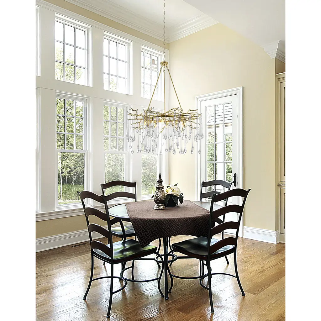 Turn your ceiling into a sculptural showpiece with the Anita 12-Light Chandelier in Gold Leaf. Art meets illumination in this standout piece from CWI Lightings Anita Collection. Inspired by natural forms, the chandelier features a branching silhouette arranged in a circular shape, creating a stunning visual effect when viewed from any angle. Draped with shimmering clear crystals, it reflects light beautifully while adding organic charm to your interior. The gold leaf finish lends richness and texture to the design, bringing an artisan touch that elevates your contemporary settings. With a 43-inch diameter, this chandelier is ideal for spacious rooms that demand a bold lighting feature. Its 12-light (compatible with G9 Halogen or LED) setup ensures both style and functionality, offering warm, ambient glow throughout the space. Installation is straightforward thanks to included hardware and instructions, and the fixture is backed by a one-year warranty for your confidence. Make an unforgettable statementadd the Anita Gold Leaf Chandelier to your home and let nature-inspired luxury shine.