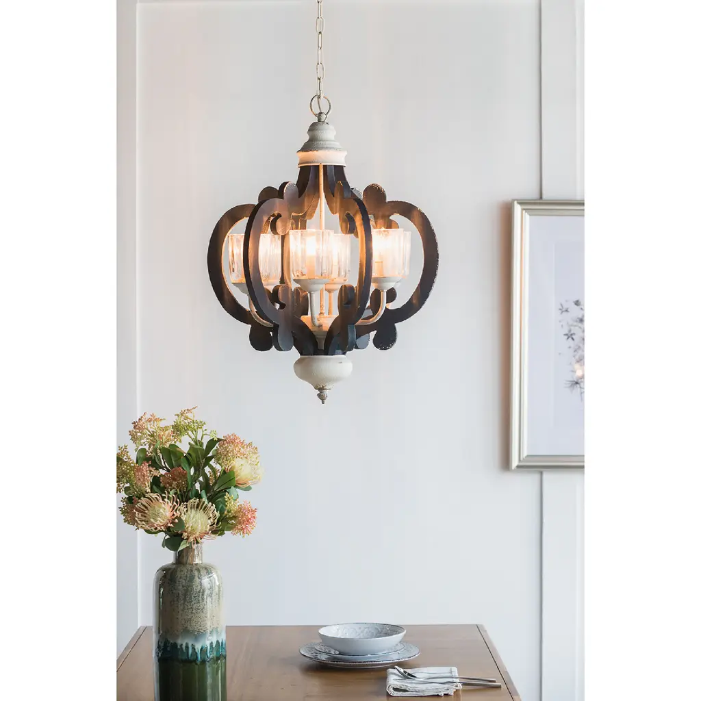 This 6-Light Wood Chandelier adds elegant style to your dining room, foyer, or living room.