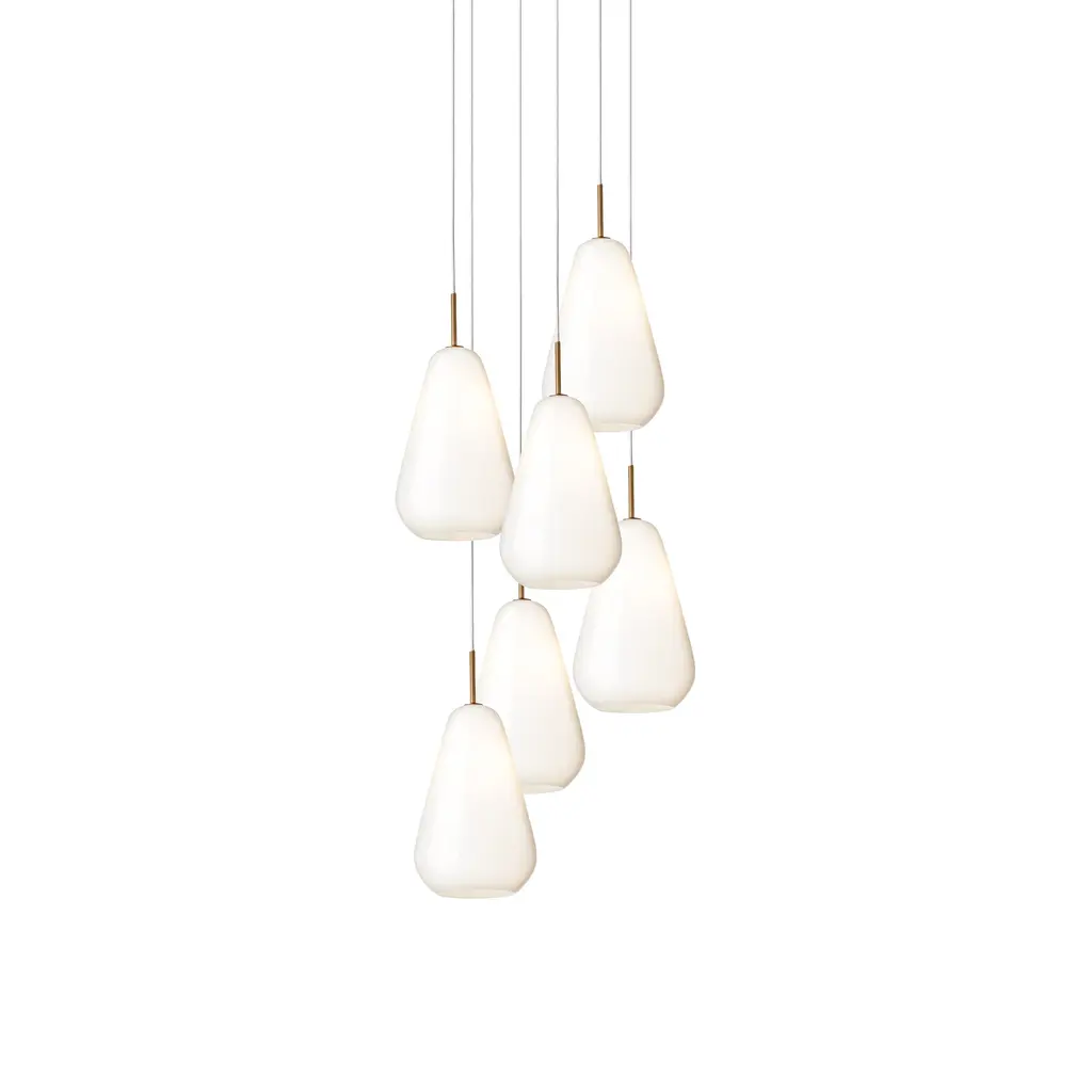 With a half-dozen of its mouth-blown glass pendants massed together, this chandelier clearly alludes to the tranquility of falling droplets of rain which originally inspired Nuura's series Anoli. The Danish brand's cofounder Sofie Refer encapsulates the warm Nordic light with hand-painted glass in a delicate golden color and metal hardware in the same subtle shade. Imagine the chandelier's magical effect in a hall or sweeping staircase or in a living area to illuminate a dusky corner.