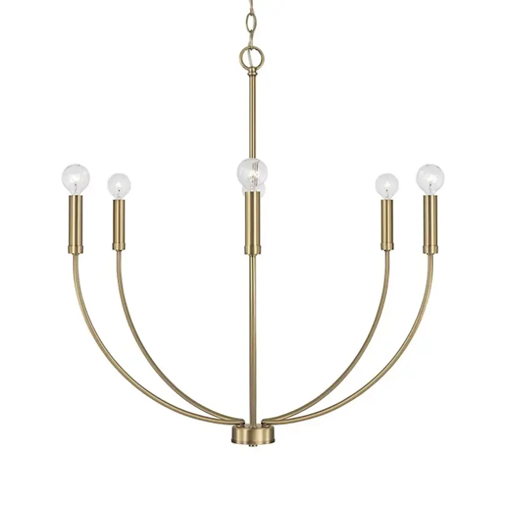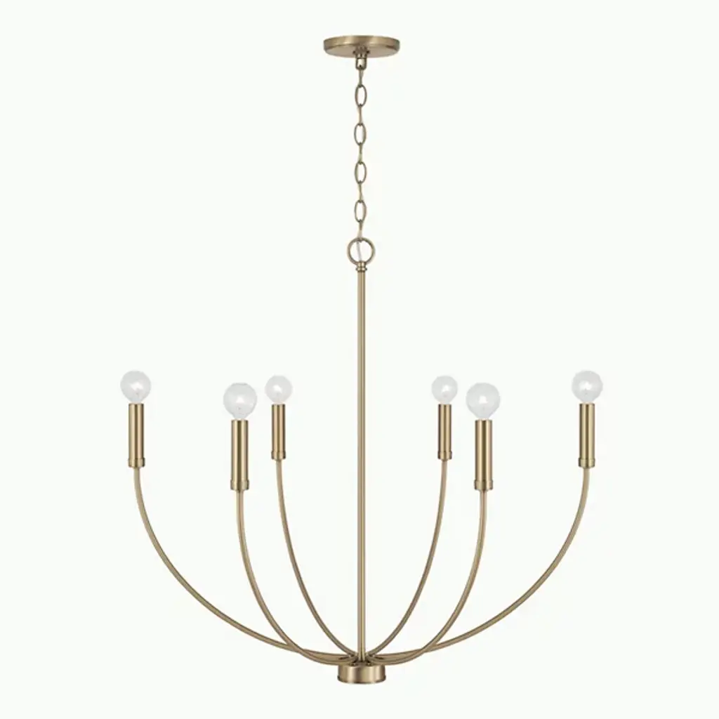 Elevate your space with timeless elegance using the Ansley 6-Light Chandelier from Capital Lighting. This classic fixture undergoes a modern transformation, featuring sleek contours and sweeping curves that make a statement while seamlessly complementing any style. The chandelier's elongated arms and open silhouette create a captivating design that stands out without overpowering, adding a touch of sophistication to your decor. Illuminate your space with this tasteful blend of classic charm and contemporary allure.