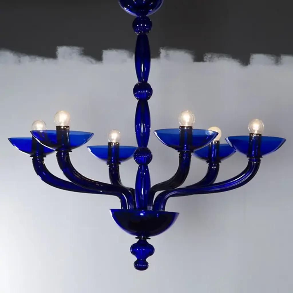 Enchant your inside spaces with an old-world charm when you suspend the Antenoreo Chandelier by Mazzega 1946 from your ceilings. Designed to echo classic Italian glass, its curving classical design looks to natural forms for inspiration, extending a round-beaded central stem down to a bowl-shaped hub that steadies a series of curving glass arms that arc out and up to secure the fixture’s lamping. A short candelabra-style lamp extends from a bold bowl bobeche at the end of each arm, spilling an even warmth out to the sides, while the translucent glass structure takes on a lively light of its own.