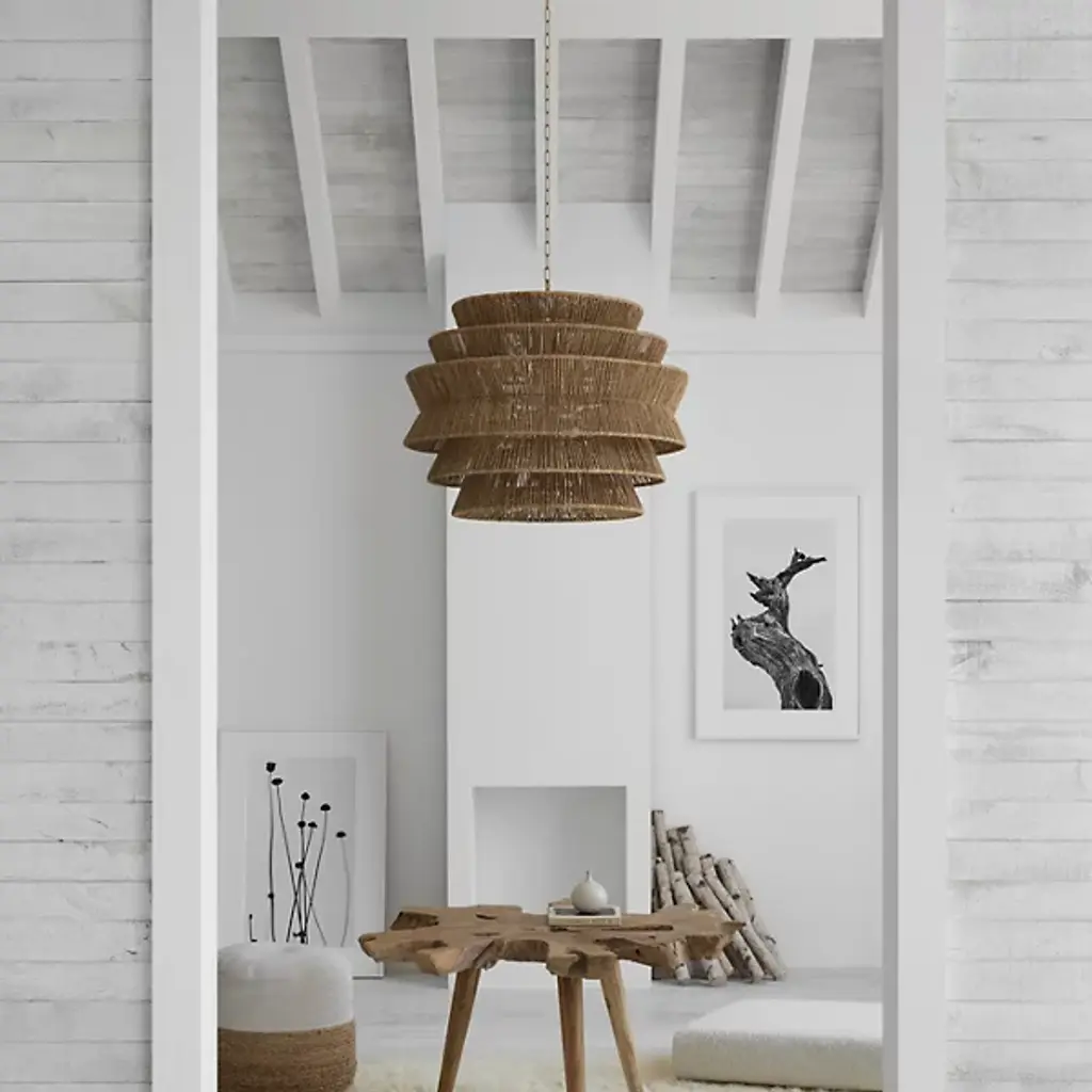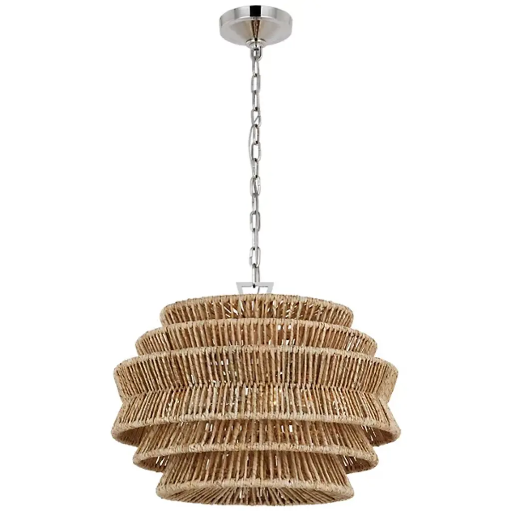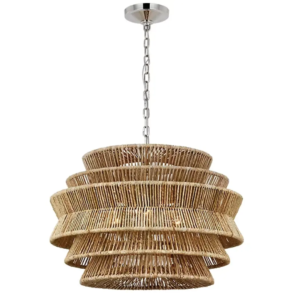 Presented by Visual Comfort Signature, the Antigua Chandelier is a truly mesmerizing lighting fixture that exudes elegance and natural beauty. Designed by Chapman & Myers, it is composed primarily of natural abaca rope, adorning throughout its entire bodice. The organic texture and earthy tones of the abaca create a captivating visual and tactile experience. As the light emanates from within, it delicately peeks through the layers of the rope, casting a gentle and enchanting effect in the surrounding space.