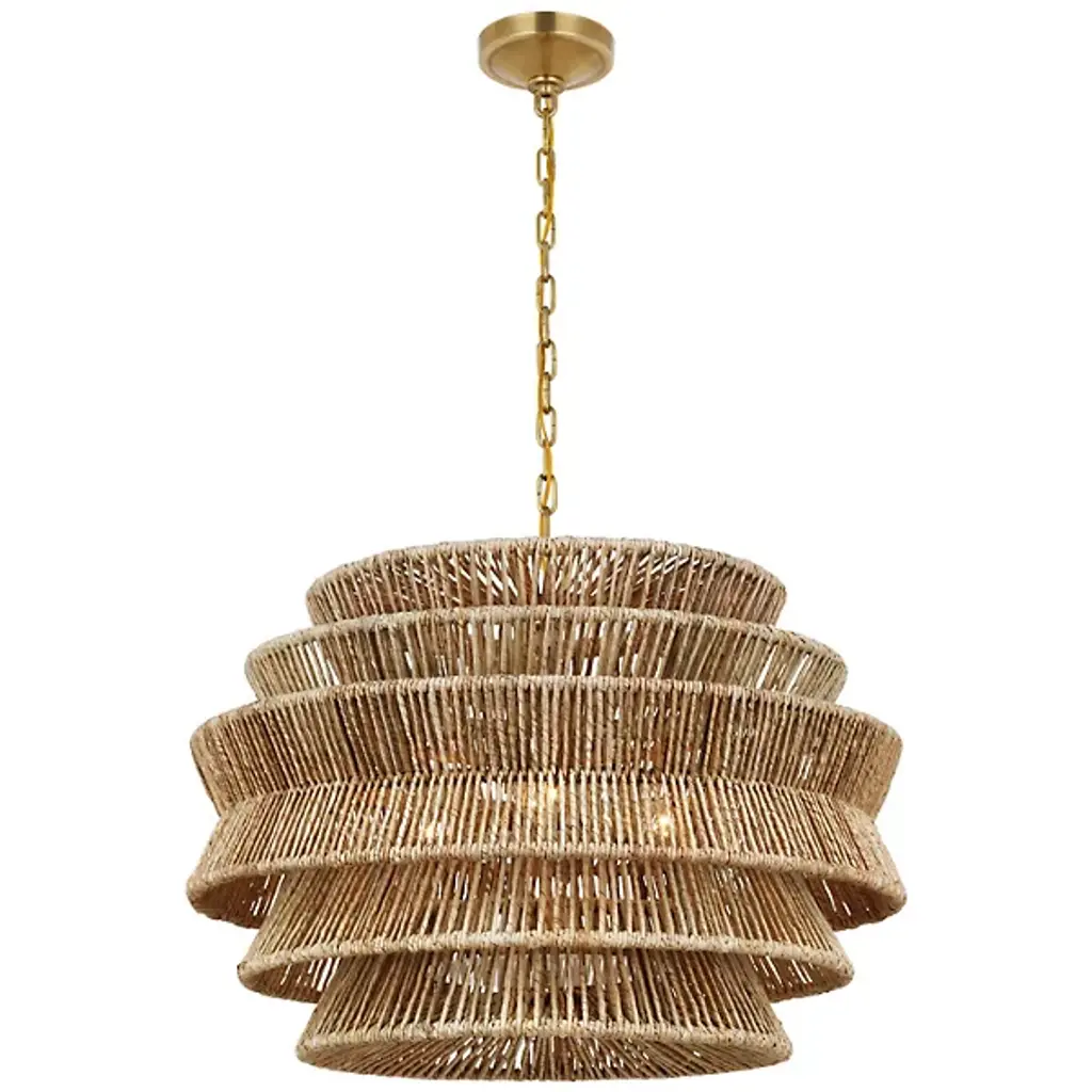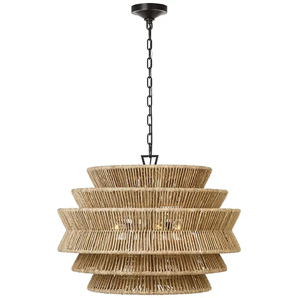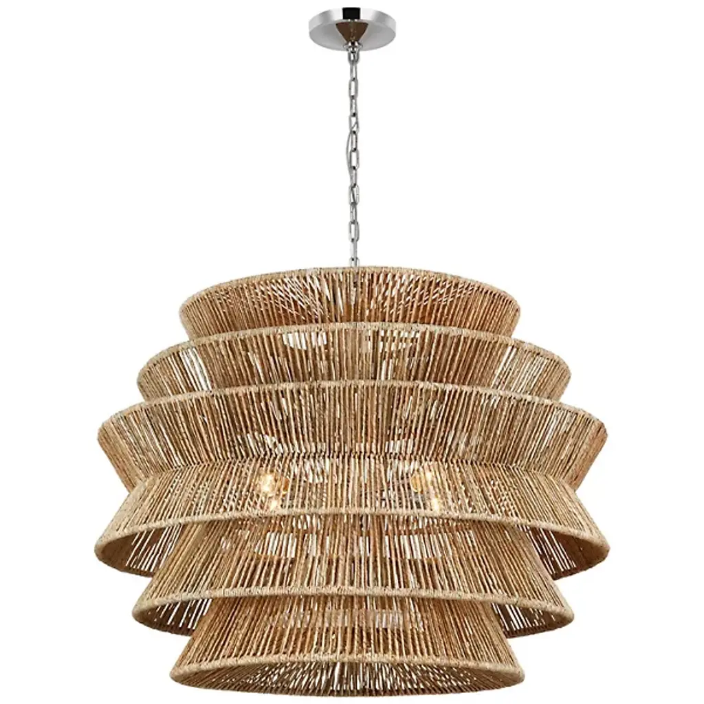 Presented by Visual Comfort Signature, the Antigua Chandelier is a truly mesmerizing lighting fixture that exudes elegance and natural beauty. Designed by Chapman & Myers, it is composed primarily of natural abaca rope, adorning throughout its entire bodice. The organic texture and earthy tones of the abaca create a captivating visual and tactile experience. As the light emanates from within, it delicately peeks through the layers of the rope, casting a gentle and enchanting effect in the surrounding space.