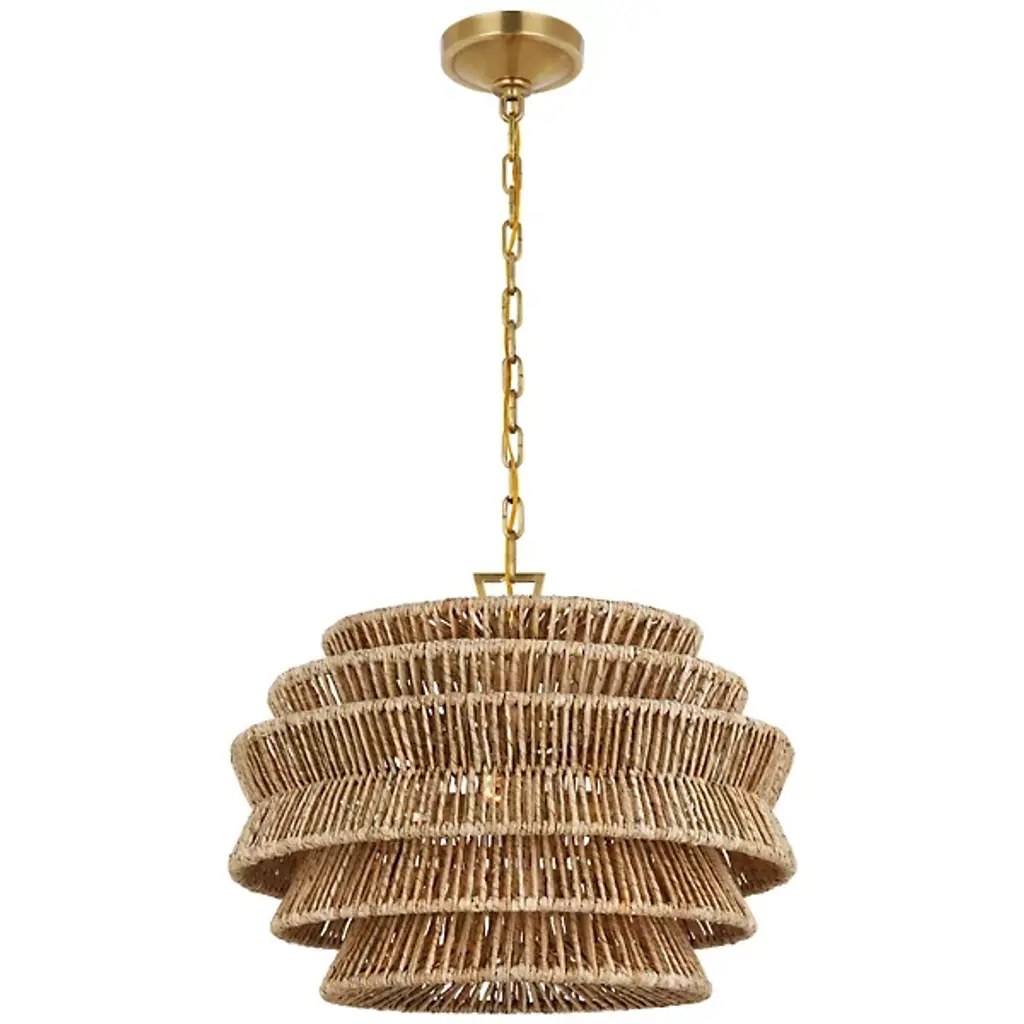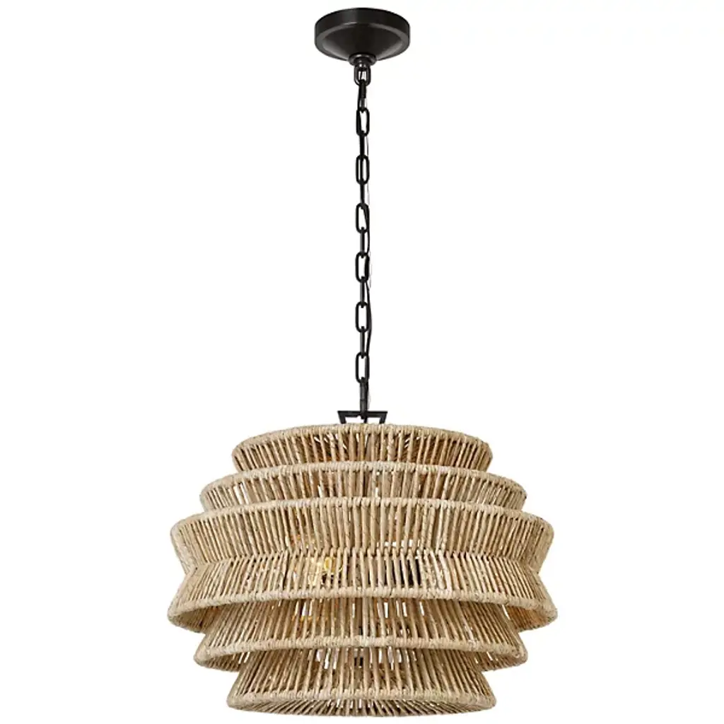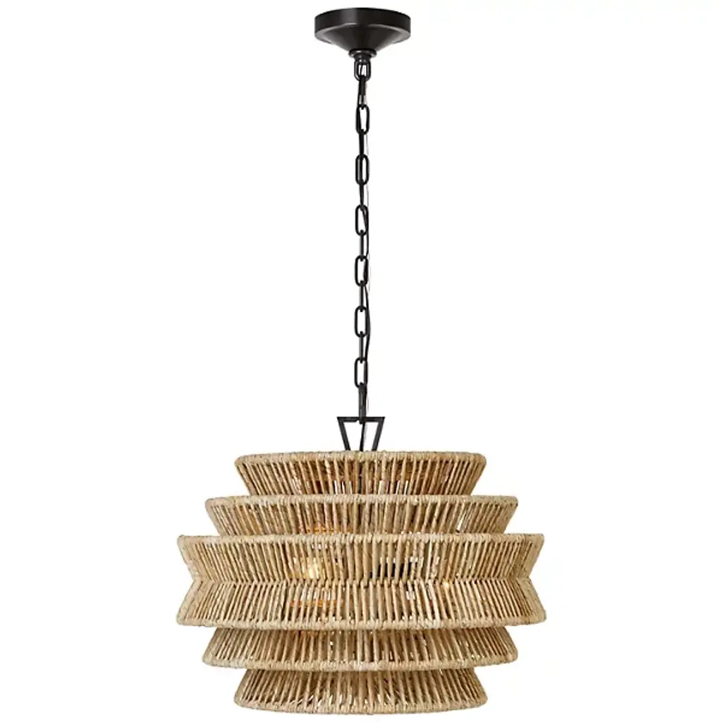 Presented by Visual Comfort Signature, the Antigua Chandelier is a truly mesmerizing lighting fixture that exudes elegance and natural beauty. Designed by Chapman & Myers, it is composed primarily of natural abaca rope, adorning throughout its entire bodice. The organic texture and earthy tones of the abaca create a captivating visual and tactile experience. As the light emanates from within, it delicately peeks through the layers of the rope, casting a gentle and enchanting effect in the surrounding space.