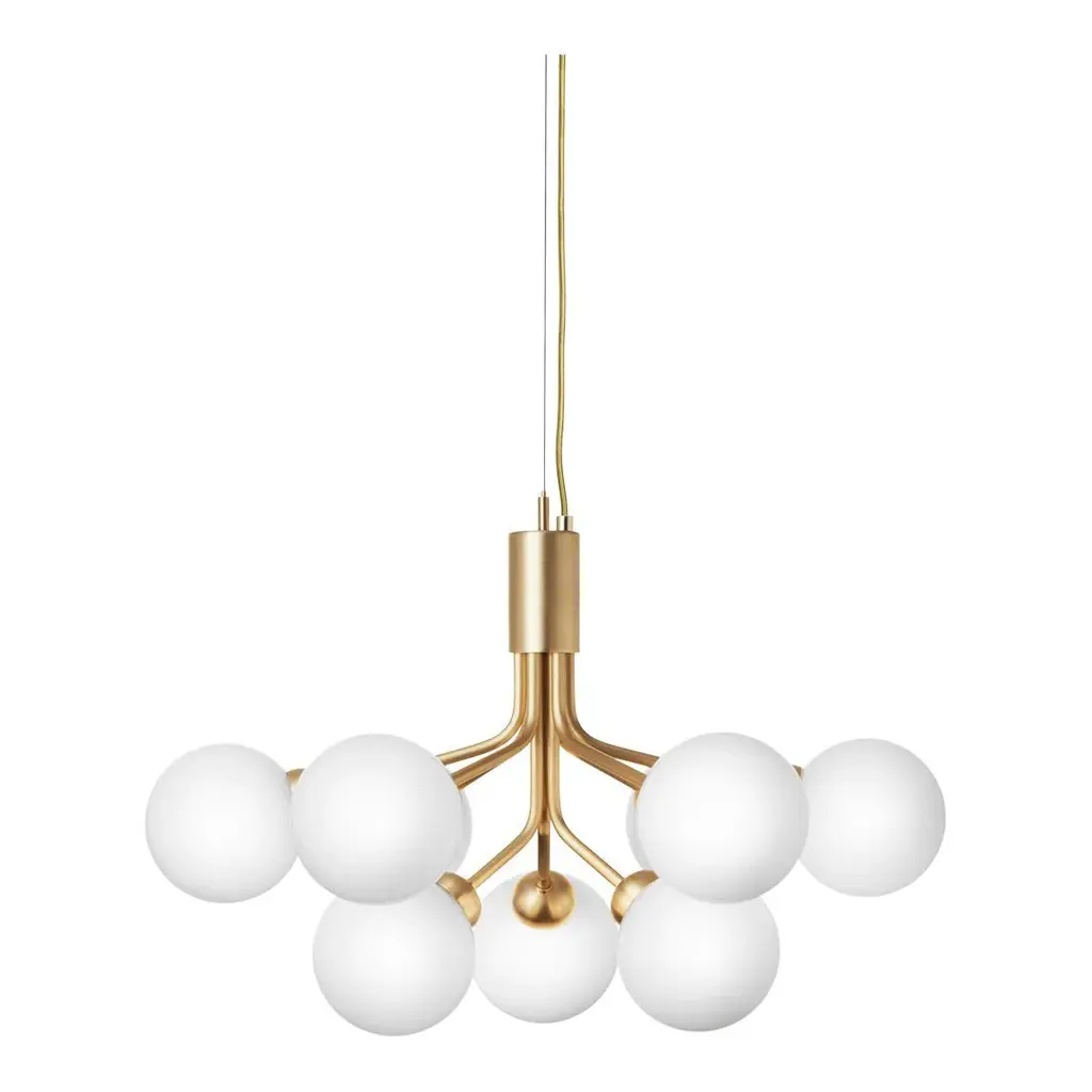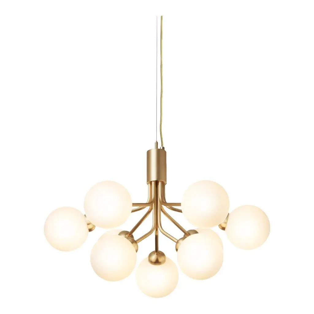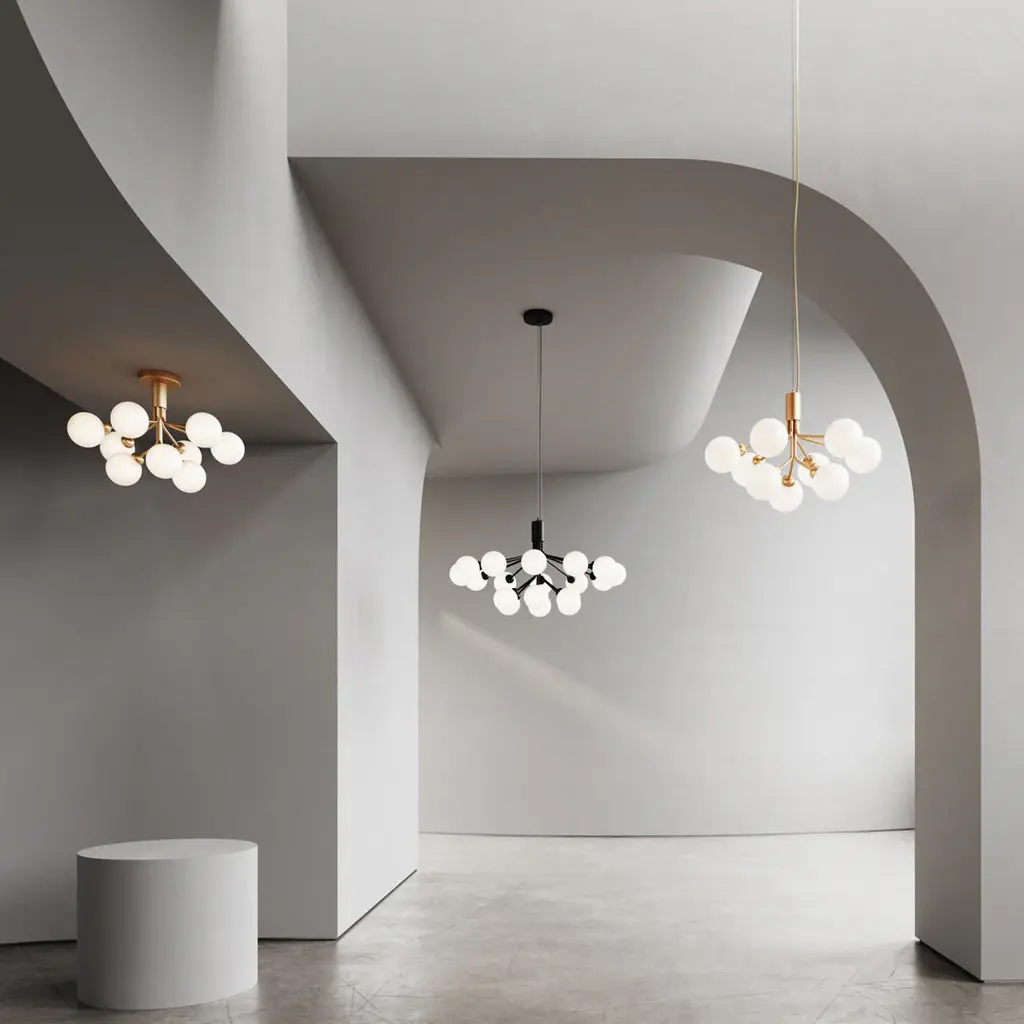 Modern chandelier inspired by umbellifer flowers. Apiales 9 Ceiling unfolds its 9 metal arms from a special produced canopy, and the branched stalks are capped with mouth-blown glass globes. Add sensuous lighting to the home with Apiales 9 Ceiling.