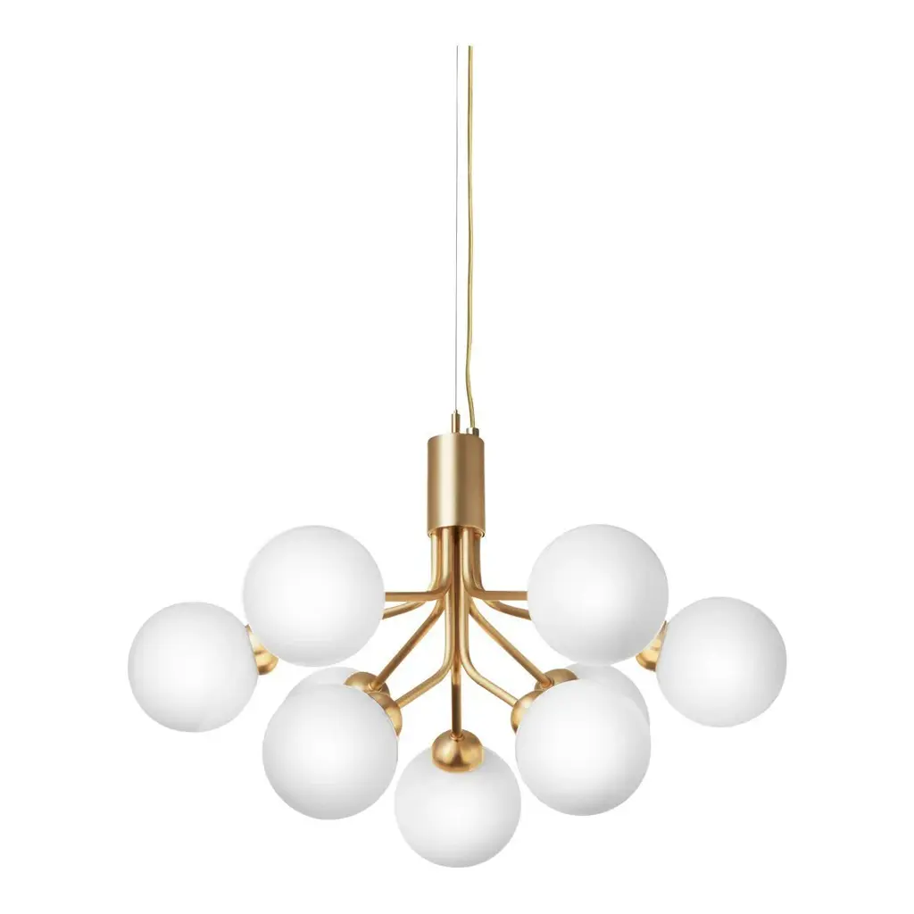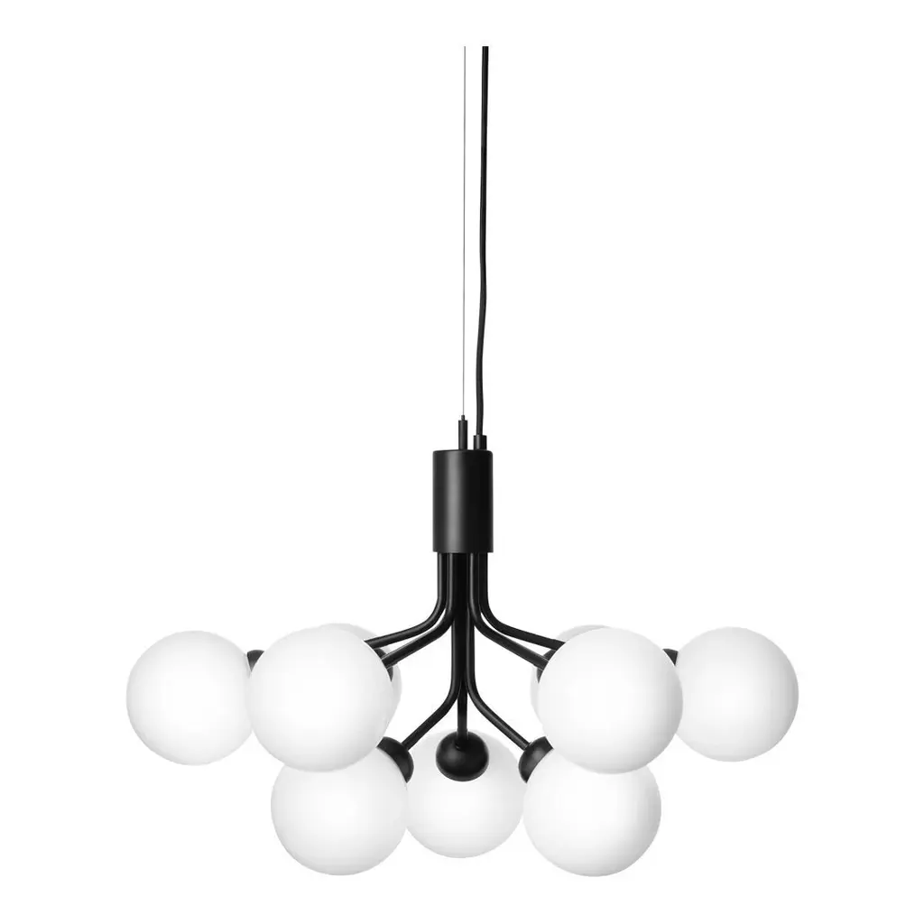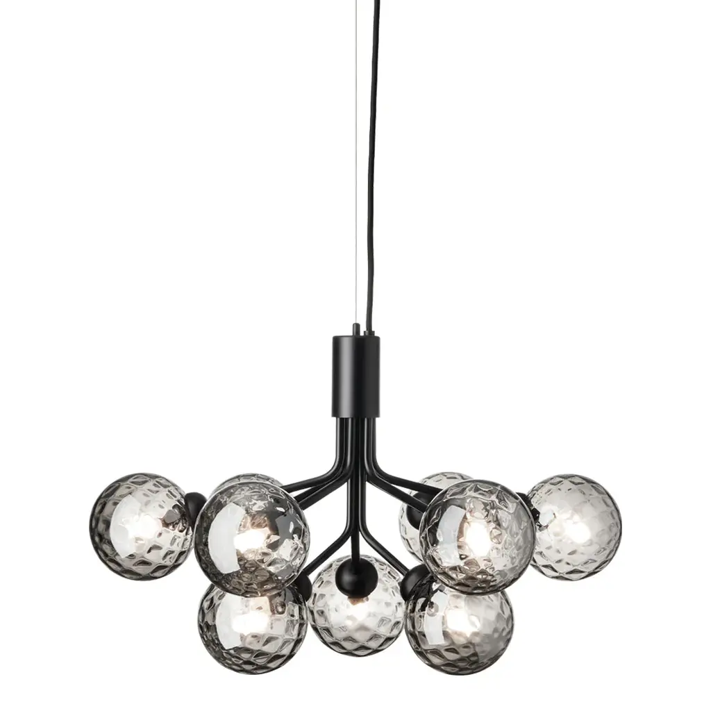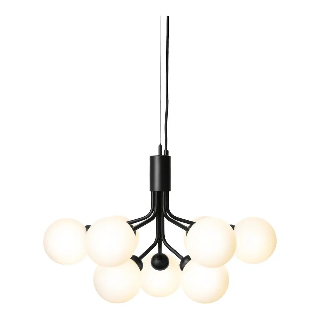 Modern chandelier inspired by umbellifer flowers. Apiales 9 Ceiling unfolds its 9 metal arms from a special produced canopy, and the branched stalks are capped with mouth-blown glass globes. Add sensuous lighting to the home with Apiales 9 Ceiling.