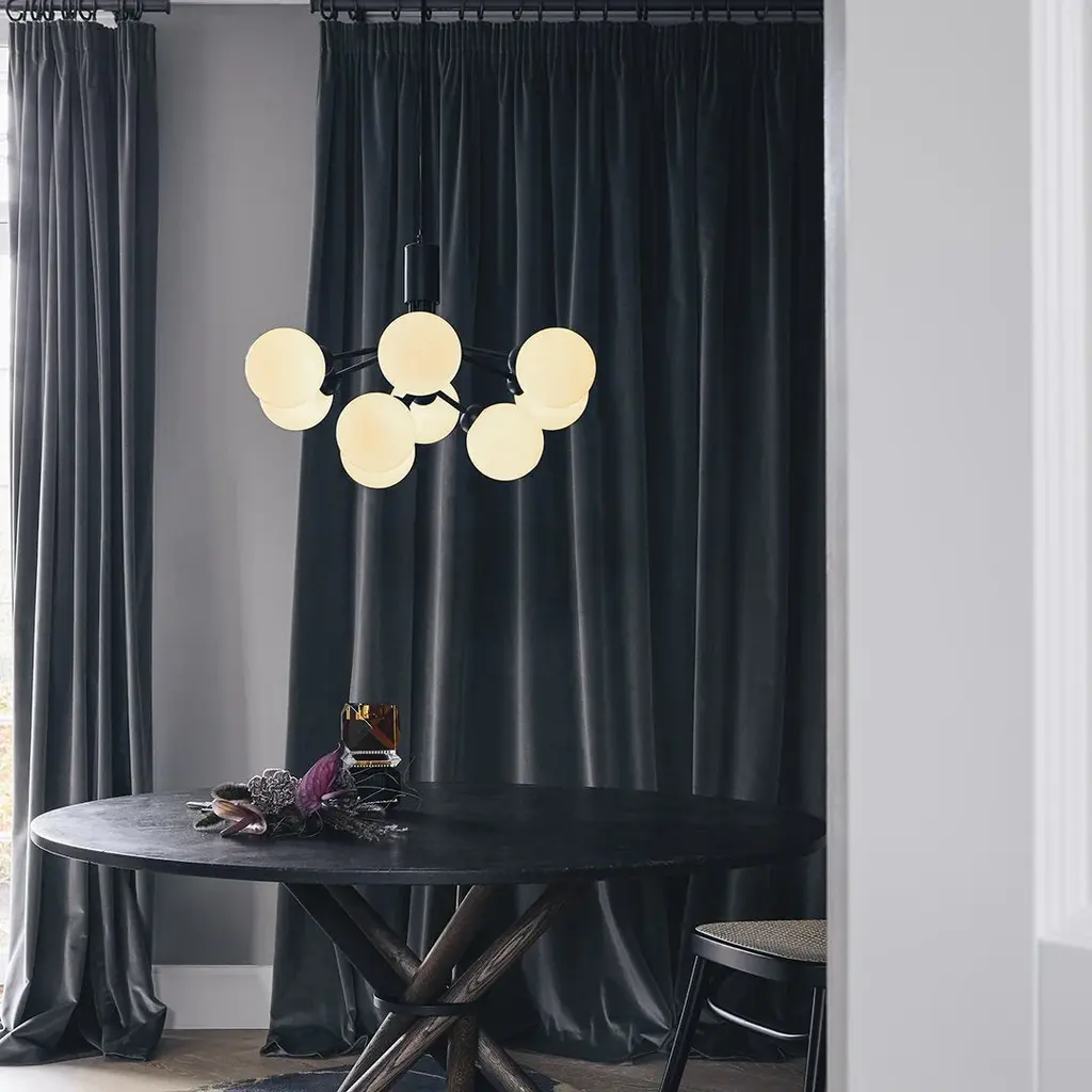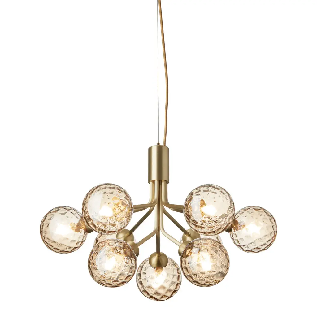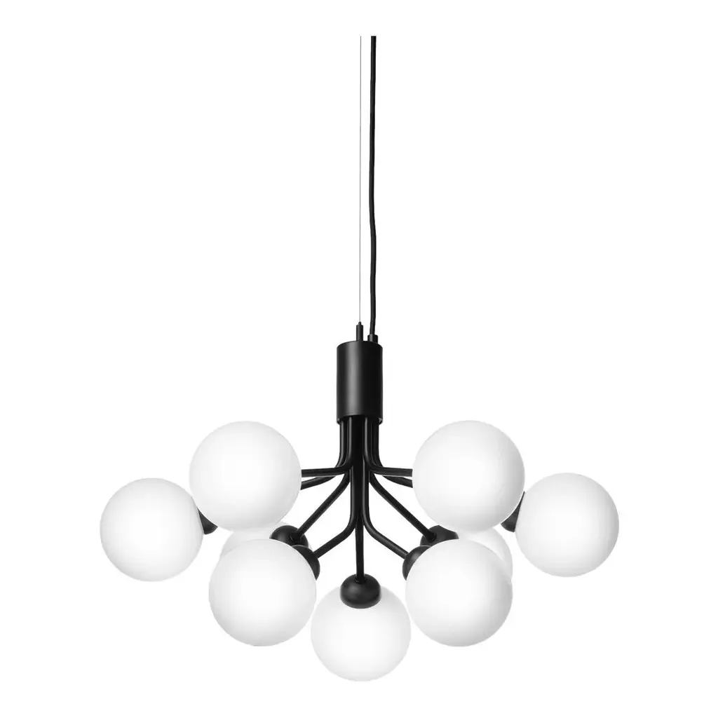 Modern chandelier inspired by umbellifer flowers. Apiales 9 Ceiling unfolds its 9 metal arms from a special produced canopy, and the branched stalks are capped with mouth-blown glass globes. Add sensuous lighting to the home with Apiales 9 Ceiling.
