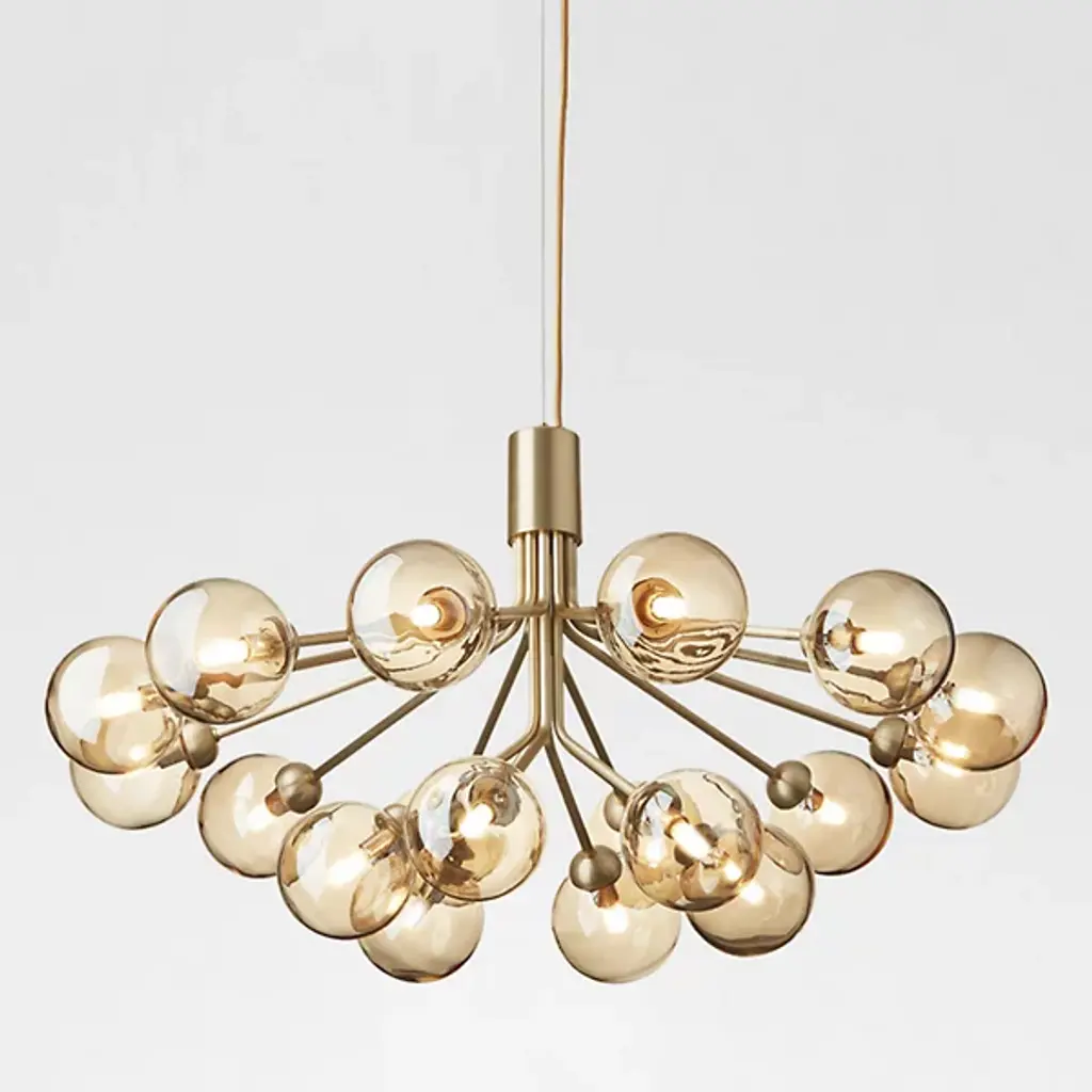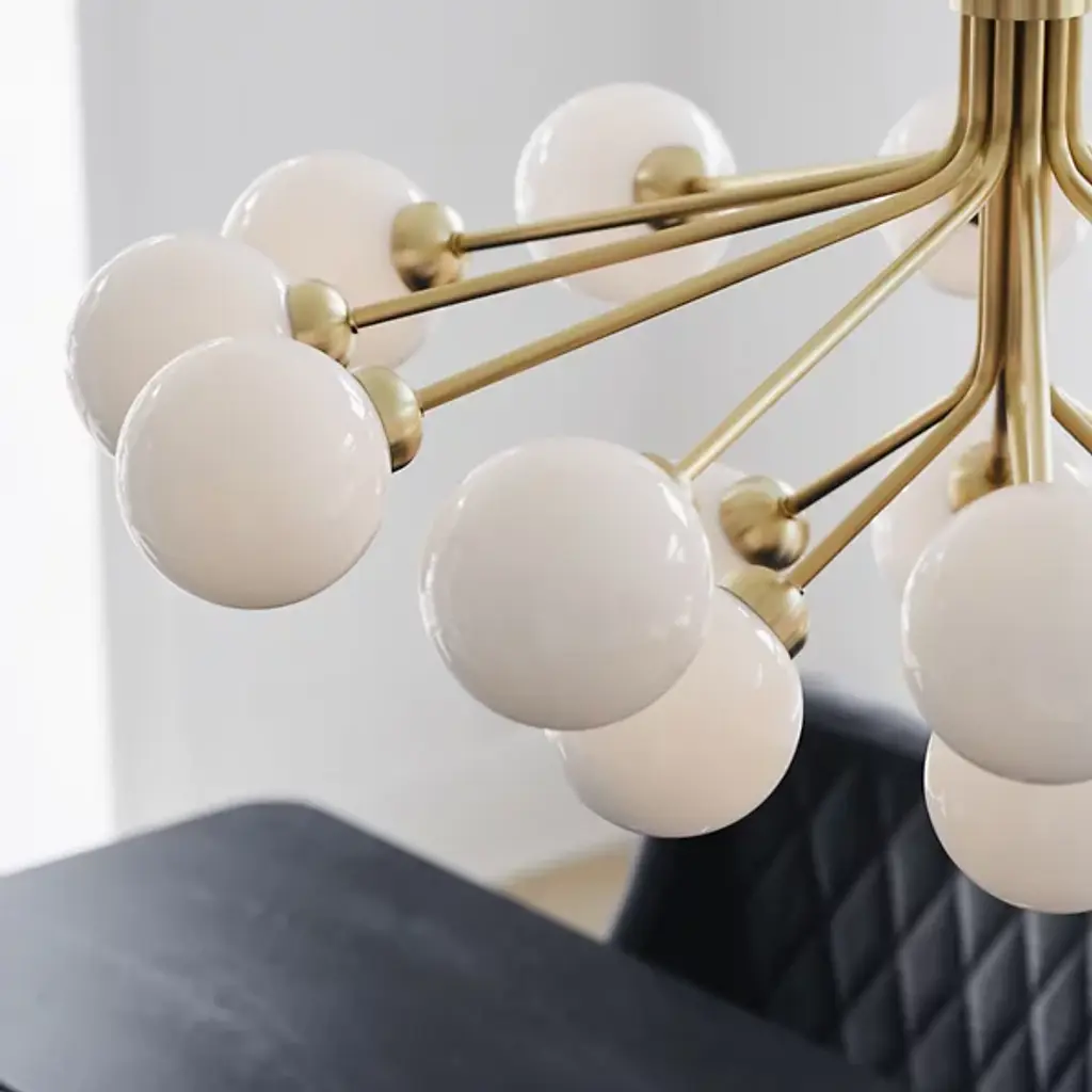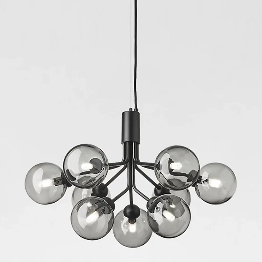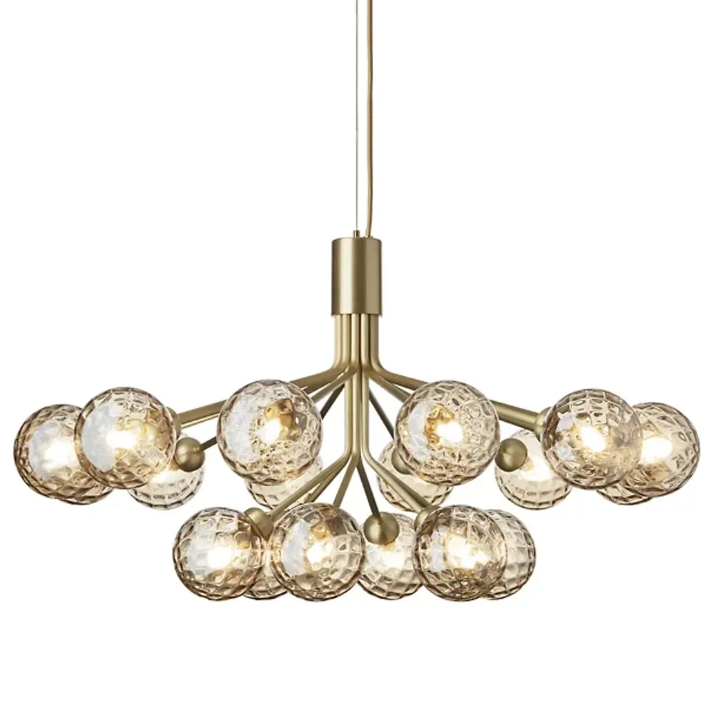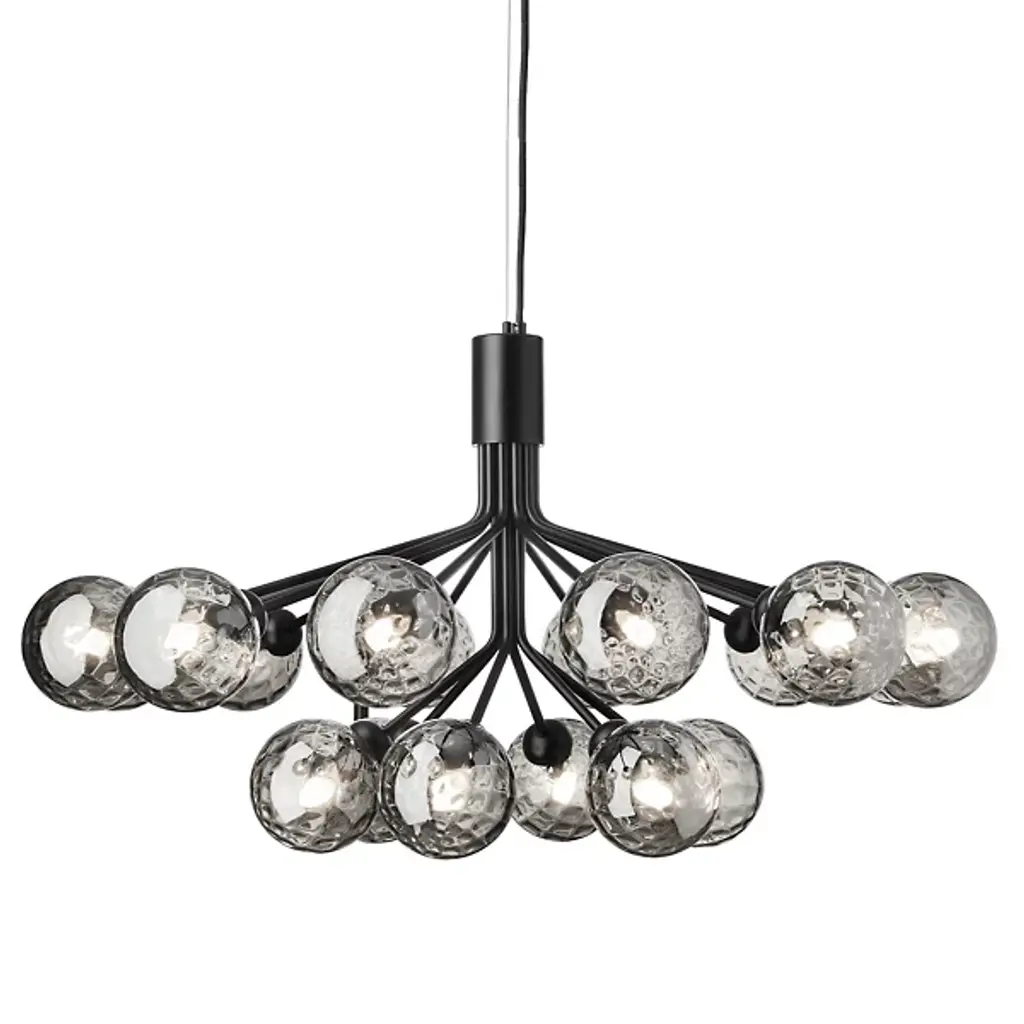 The Apiales Chandelier by Nuura is an elegant creation from Danish designer Sofie Refer. Inspired by Nordic nature and flowers, this design is supported by a specially-produced canopy and slim cable. A collection of arms with a lovely finish unfold like flower stalks to support spherical, mouth-blown glass shades. Each shade diffuses an even, welcoming layer of illumination throughout its form, bringing a bright and beautiful touch to its surroundings.