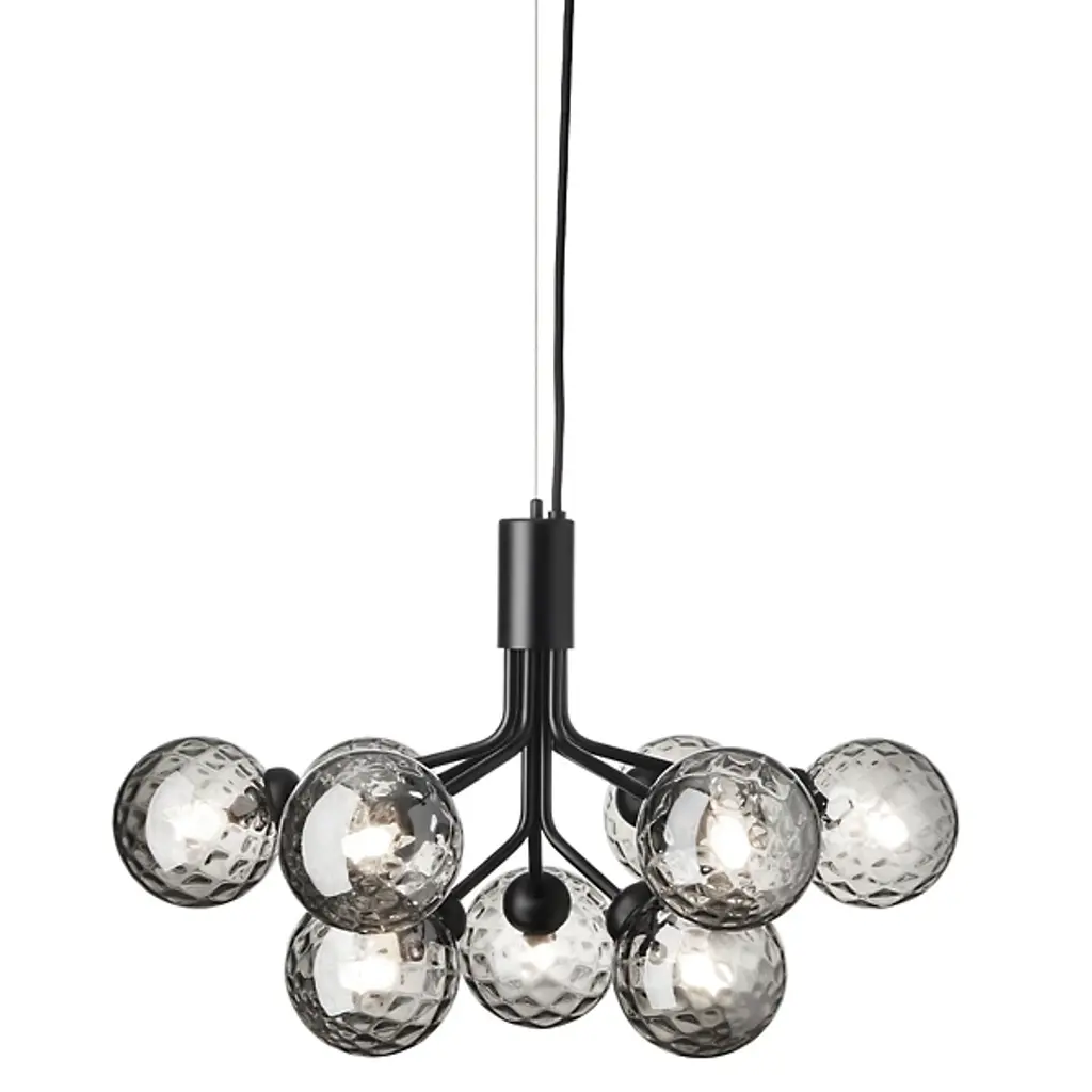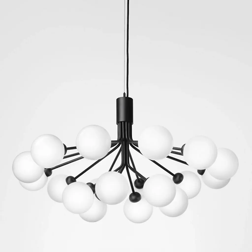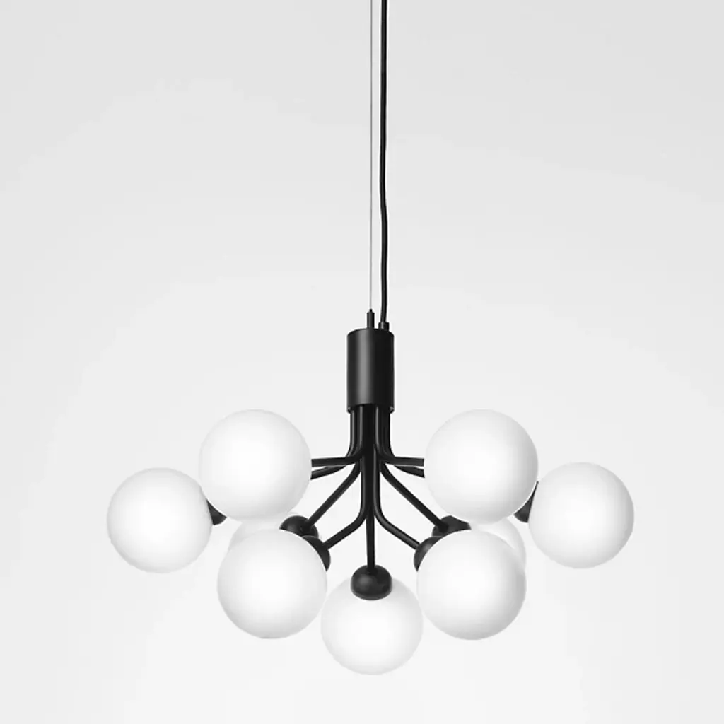 The Apiales Chandelier by Nuura is an elegant creation from Danish designer Sofie Refer. Inspired by Nordic nature and flowers, this design is supported by a specially-produced canopy and slim cable. A collection of arms with a lovely finish unfold like flower stalks to support spherical, mouth-blown glass shades. Each shade diffuses an even, welcoming layer of illumination throughout its form, bringing a bright and beautiful touch to its surroundings.