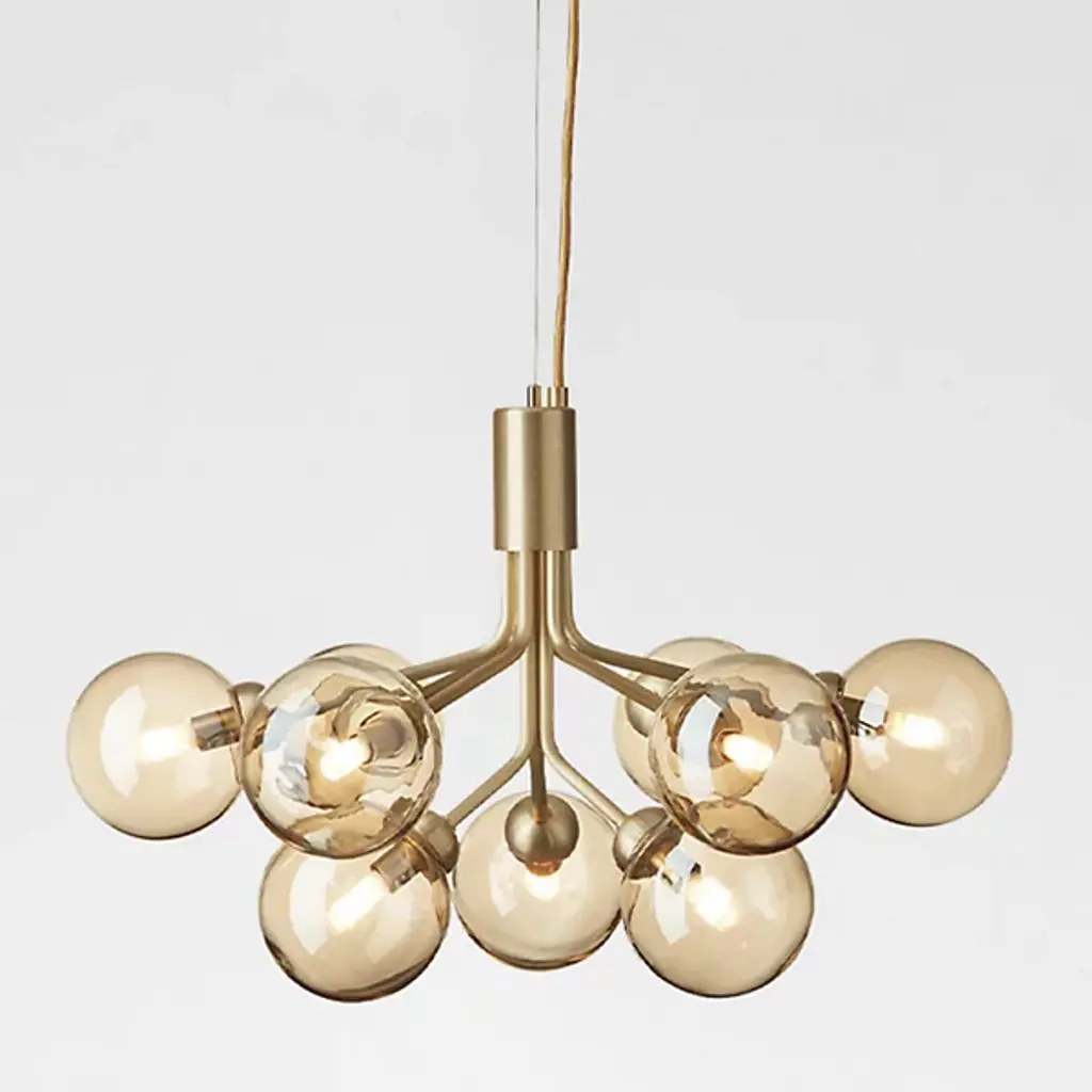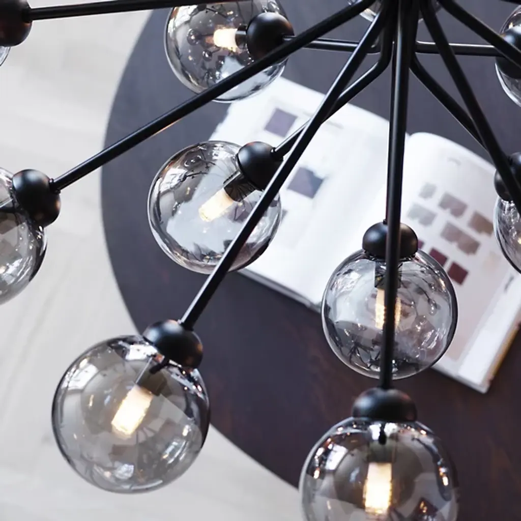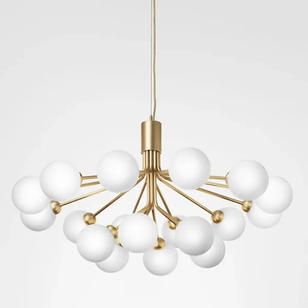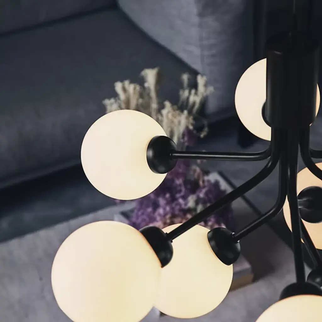 The Apiales Chandelier by Nuura is an elegant creation from Danish designer Sofie Refer. Inspired by Nordic nature and flowers, this design is supported by a specially-produced canopy and slim cable. A collection of arms with a lovely finish unfold like flower stalks to support spherical, mouth-blown glass shades. Each shade diffuses an even, welcoming layer of illumination throughout its form, bringing a bright and beautiful touch to its surroundings.