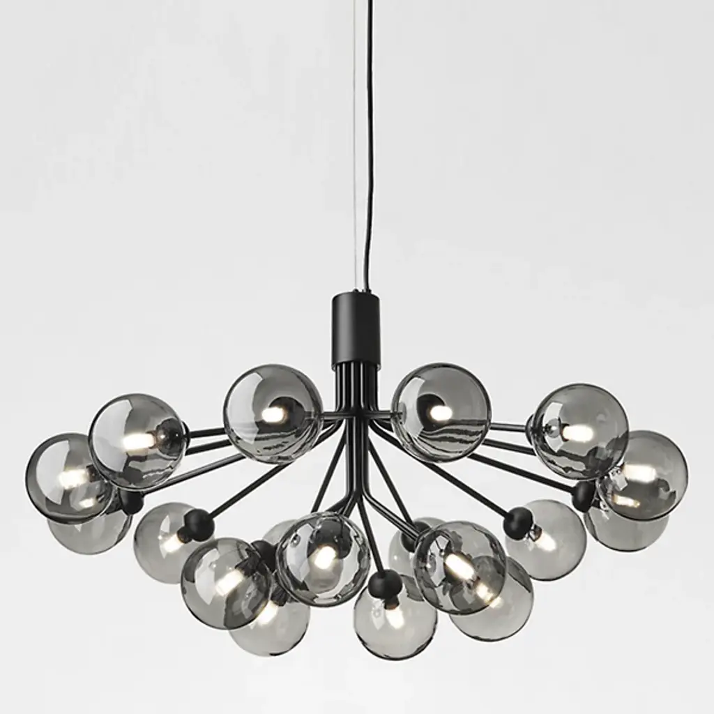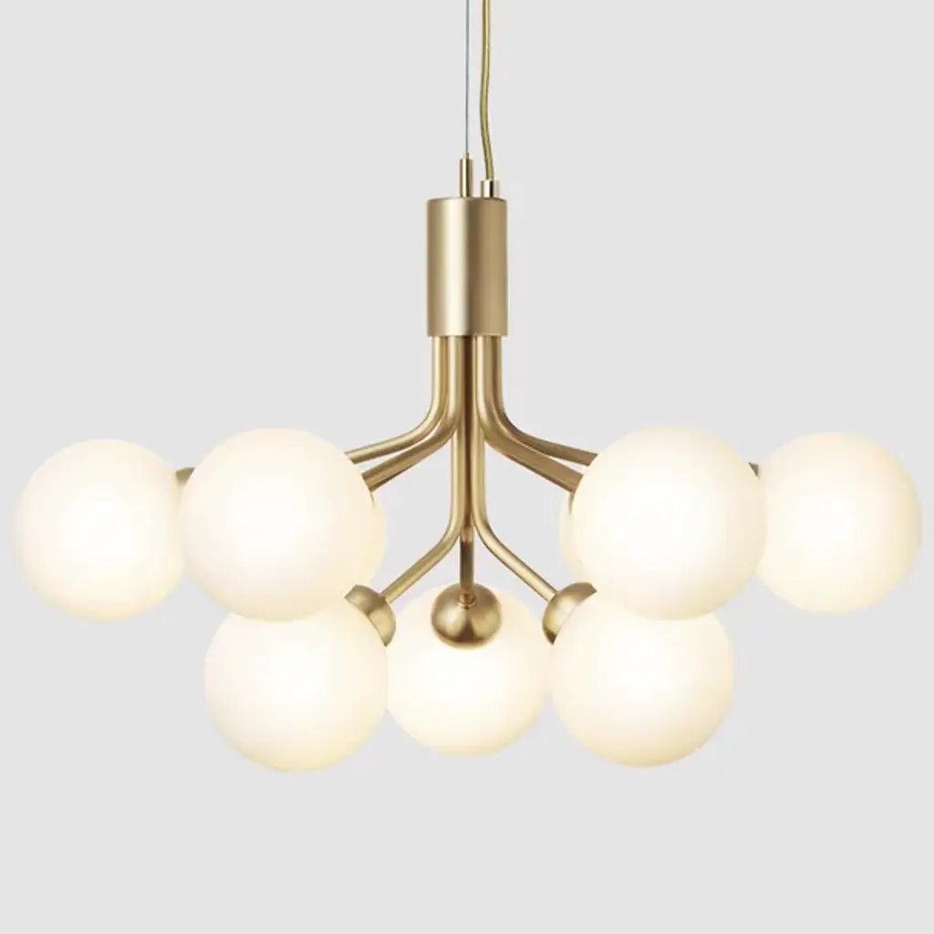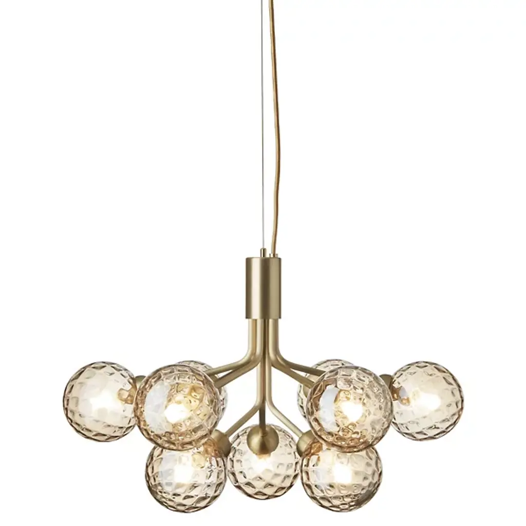 The Apiales Chandelier by Nuura is an elegant creation from Danish designer Sofie Refer. Inspired by Nordic nature and flowers, this design is supported by a specially-produced canopy and slim cable. A collection of arms with a lovely finish unfold like flower stalks to support spherical, mouth-blown glass shades. Each shade diffuses an even, welcoming layer of illumination throughout its form, bringing a bright and beautiful touch to its surroundings.