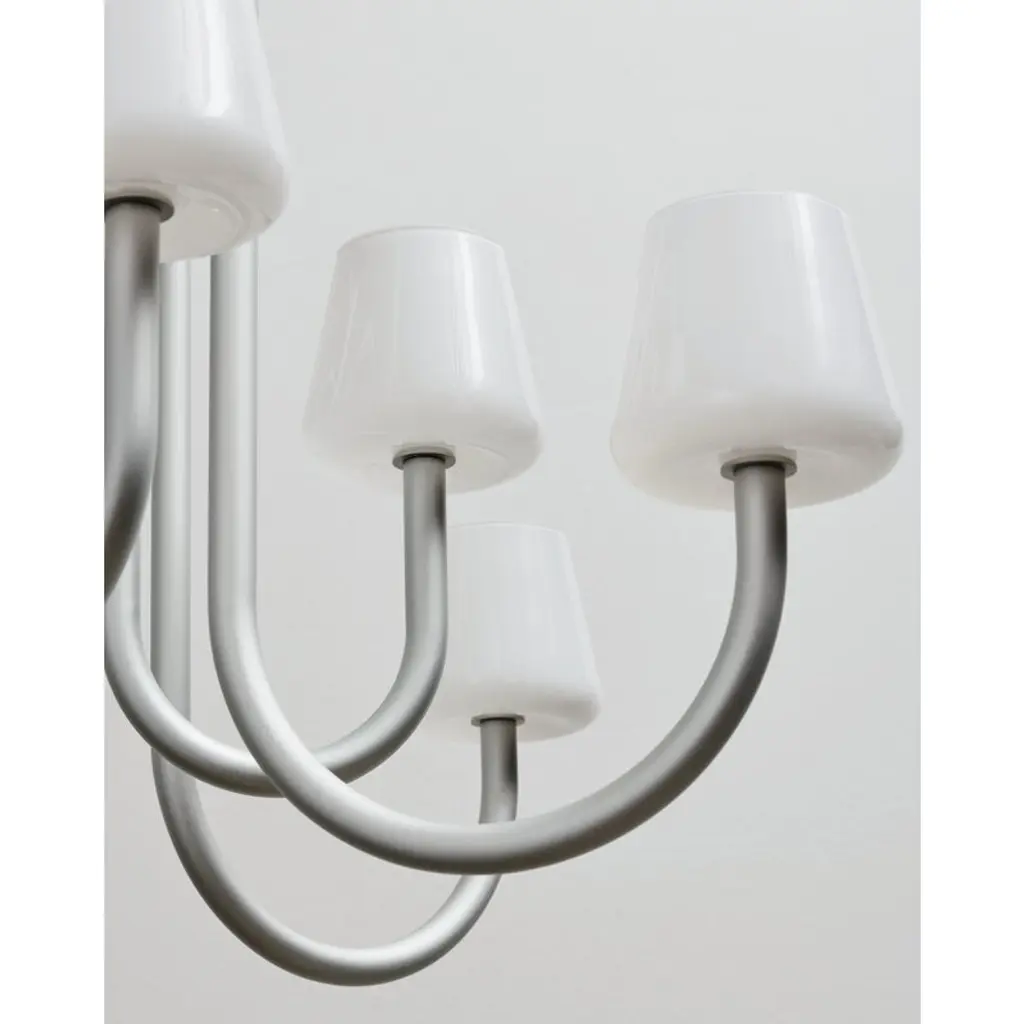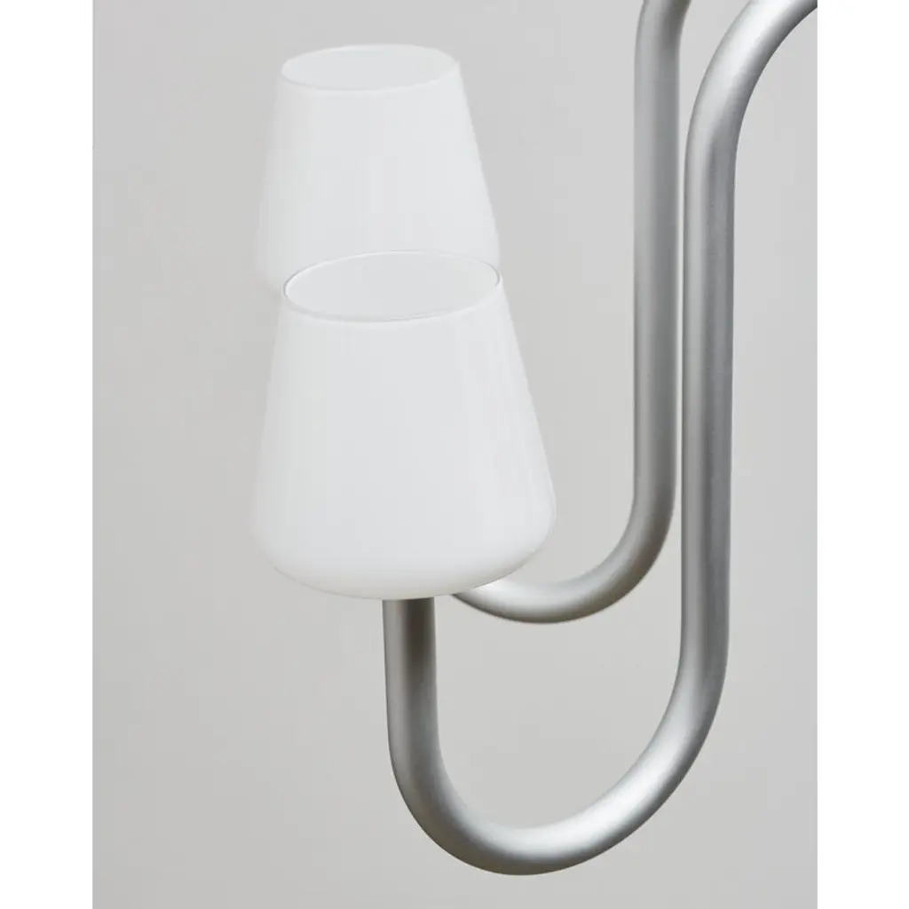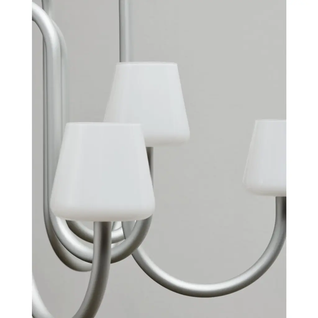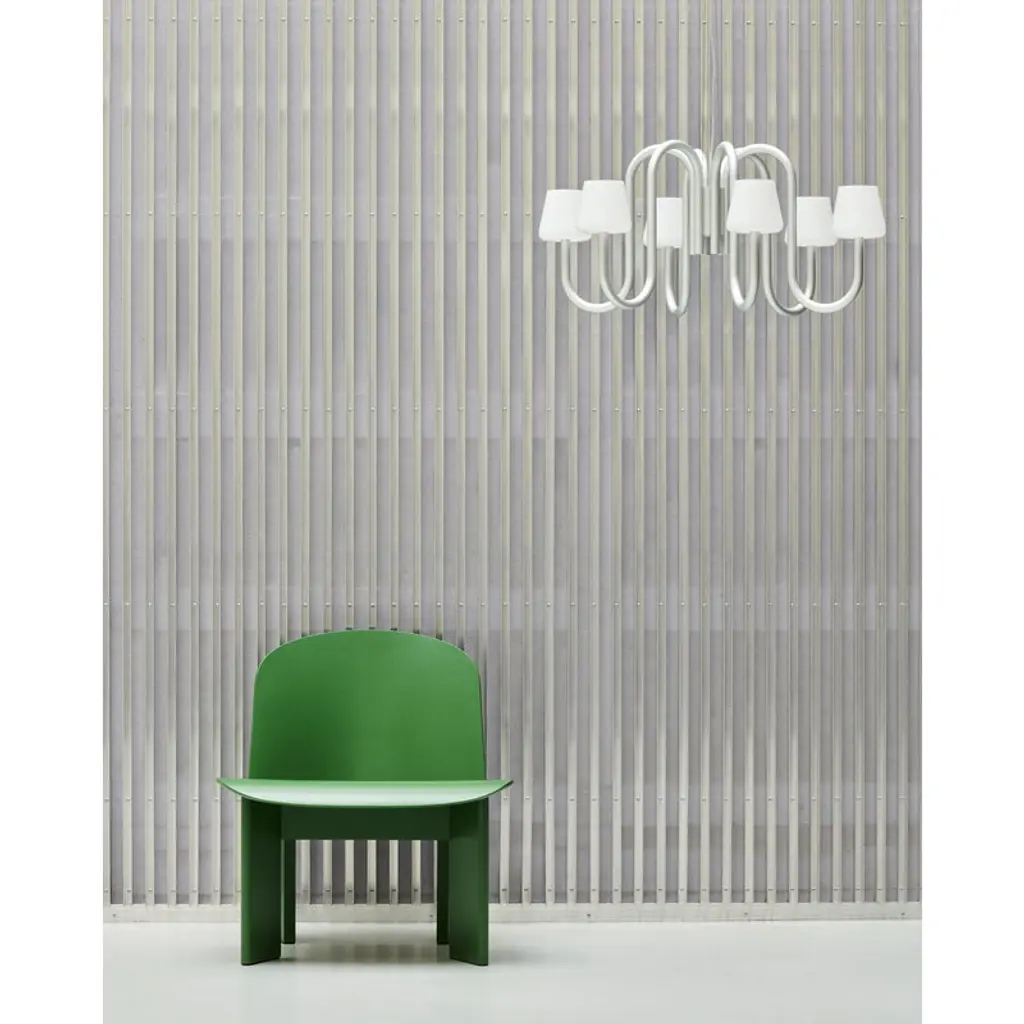 HAY's Apollo chandelier is a delightful combination of traditional and contemporary elements. Created by Studio 0405, the modern chandelier comprises six curved arms with opal glass lampshades whose mouth-blown, organic forms create a fun contrast to the industrial look of the aluminum tubes. Thanks to the opal white shades, the Apollo chandelier emits a soft and inviting glow suitable for a wide variety of settings from private homes to public spaces – we could easily imagine it illuminating a modern Scandinavian living room, a trendy restaurant or the lounge of a boutique hotel!