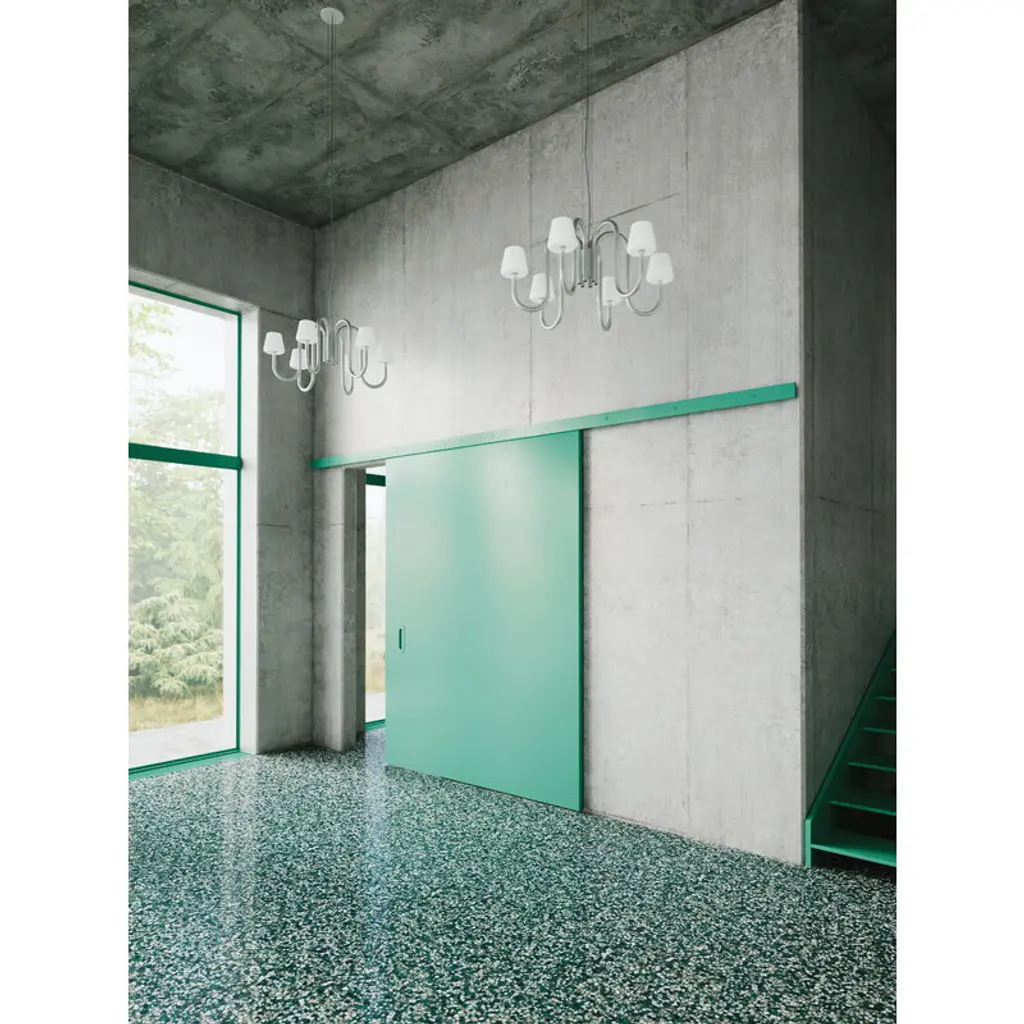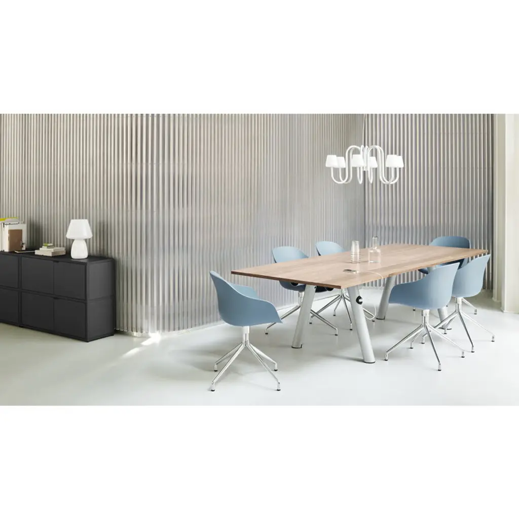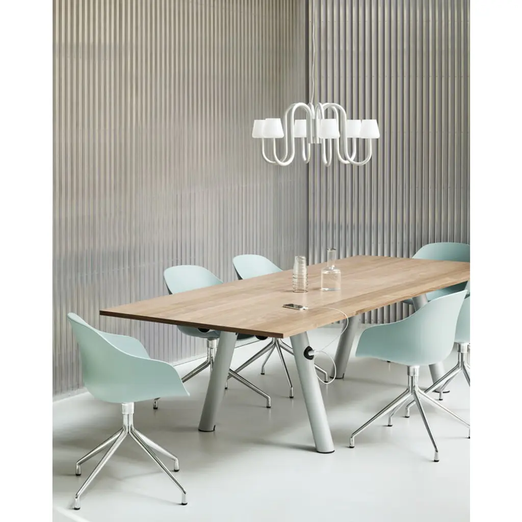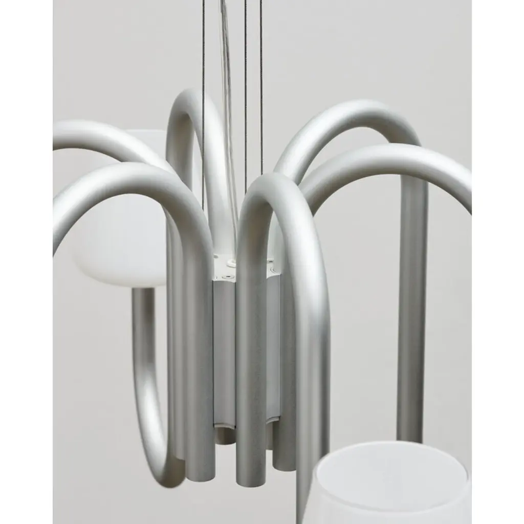 HAY's Apollo chandelier is a delightful combination of traditional and contemporary elements. Created by Studio 0405, the modern chandelier comprises six curved arms with opal glass lampshades whose mouth-blown, organic forms create a fun contrast to the industrial look of the aluminum tubes. Thanks to the opal white shades, the Apollo chandelier emits a soft and inviting glow suitable for a wide variety of settings from private homes to public spaces – we could easily imagine it illuminating a modern Scandinavian living room, a trendy restaurant or the lounge of a boutique hotel!