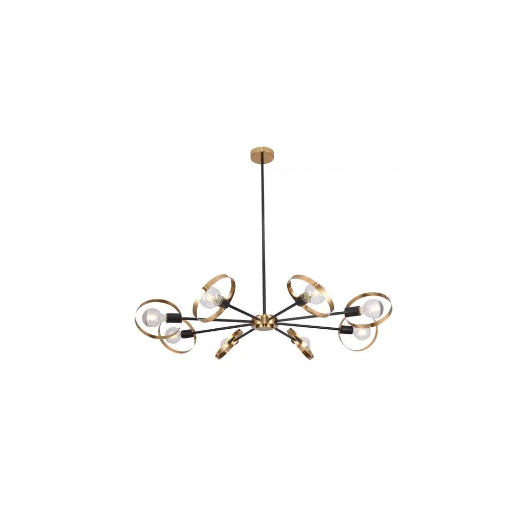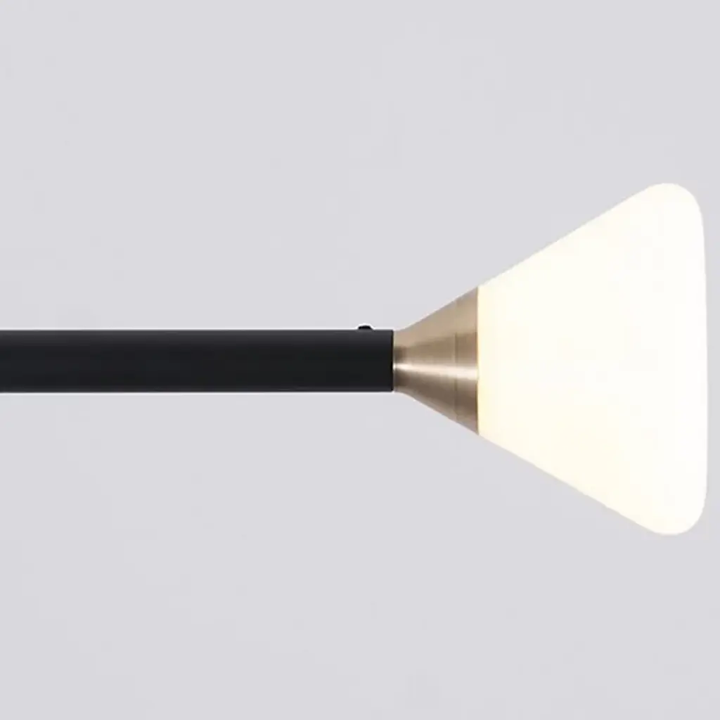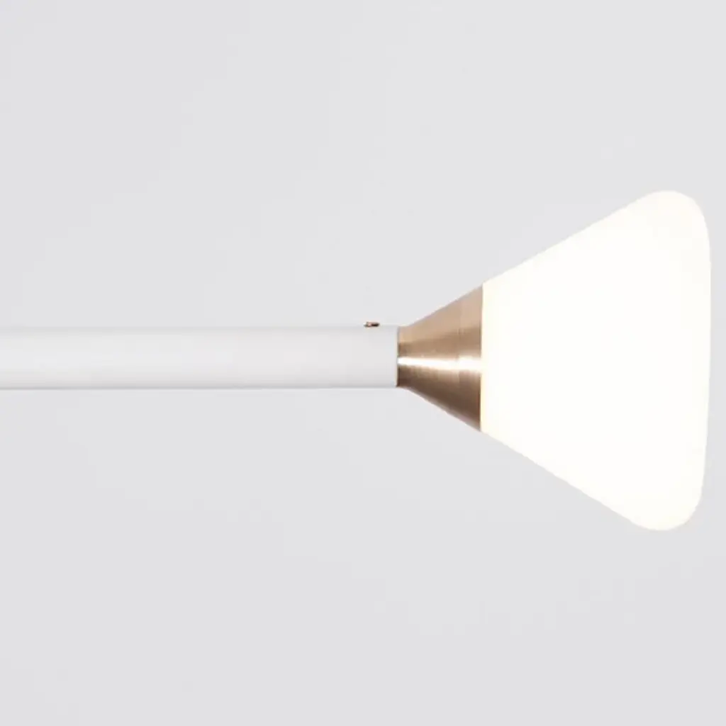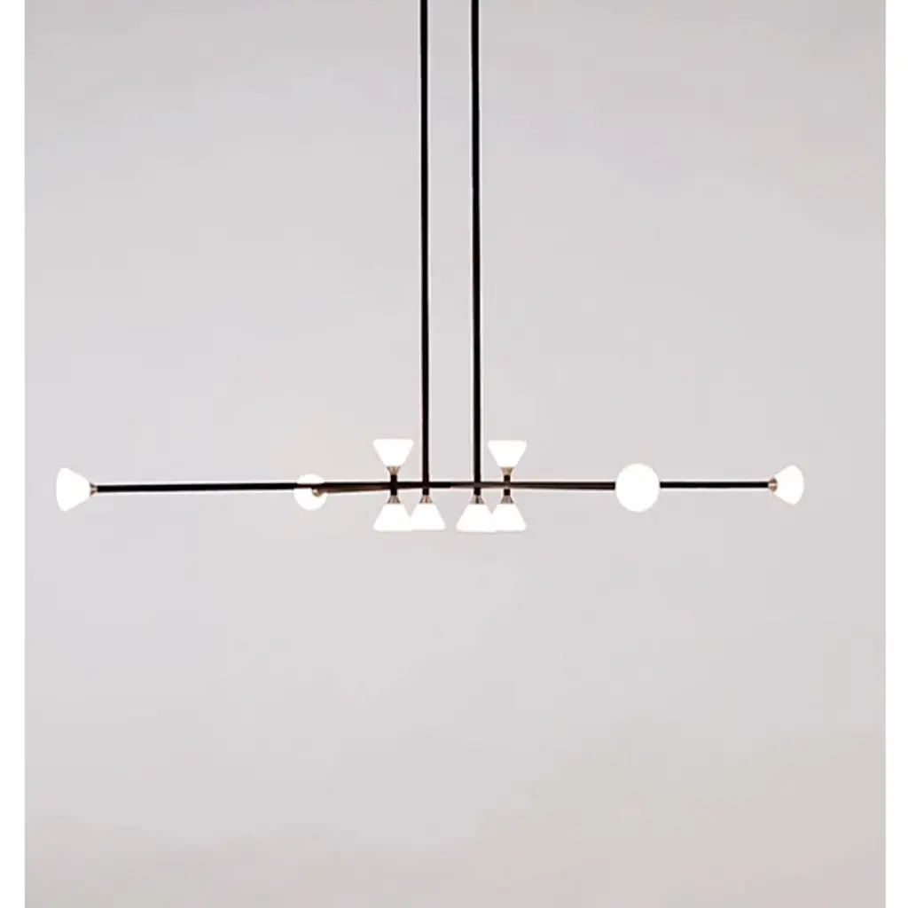 The Apollo Horizontal LED Chandelier from Roll & Hill stretches far and wide with endearing shapes and wondrous radiance. Creators McKenzie & Kim approach each piece with the goal of producing minimal lines and a balanced movement of components. A wood canopy catches the eye above with subtle wood grain accents. A slender downrod suspension sets the chandelier’s linear tone. Slender arms cross at the center, marked by a group of handblown glass shades. These shades also cap off the arms while containing brilliant lamping. The lamping faces in near every direction, setting the piece up for a clean, airy glow.