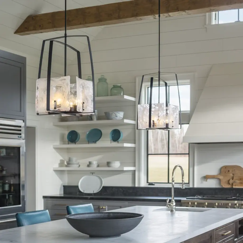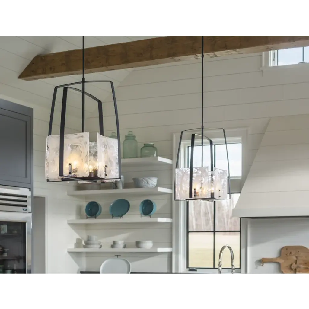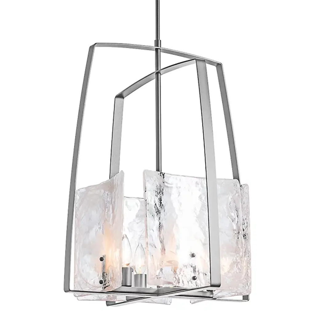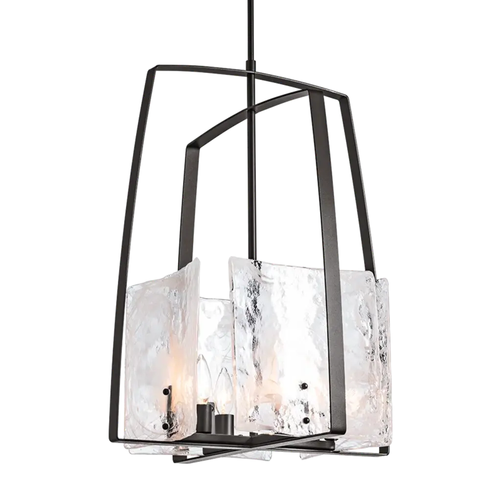 A clean blend of traditional and contemporary forms is the first thing you'll notice about the Arc lantern pendant with its unique, slightly convex glass panels. With a freeform white "swirl", the thick hand-poured glass panels have both depth and clarity. Hang singly at an entryway or small table or in multiples down a hallway, larger dining table, or over an island, the Arc Pendant's glass adds a touch of modernity to an otherwise classic form. All Hubbardton Forge products are hand-crafted to last one at a time in Vermont.