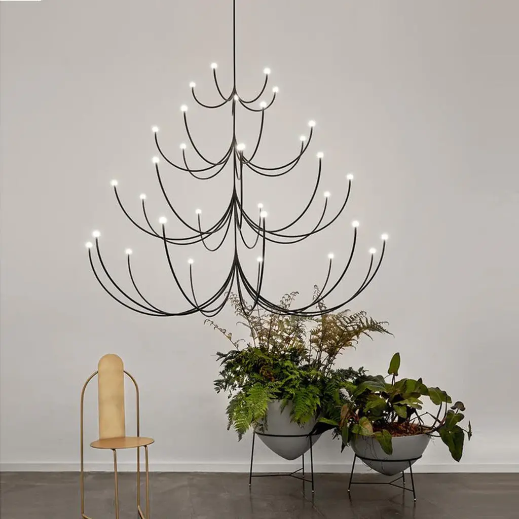 The perfect play of contrasts between the classical swooping branches and the spare minimalism of its stark black composition, the Arca Multi-Tier Chandelier from Matter Made is a simple, yet striking addition to your favorite interiors. Available in a range of sizes perfect for making a statement in a variety of spaces, this layered chandelier is equipped with LED lighting technology for a more powerful and energy-efficient design. Highlights