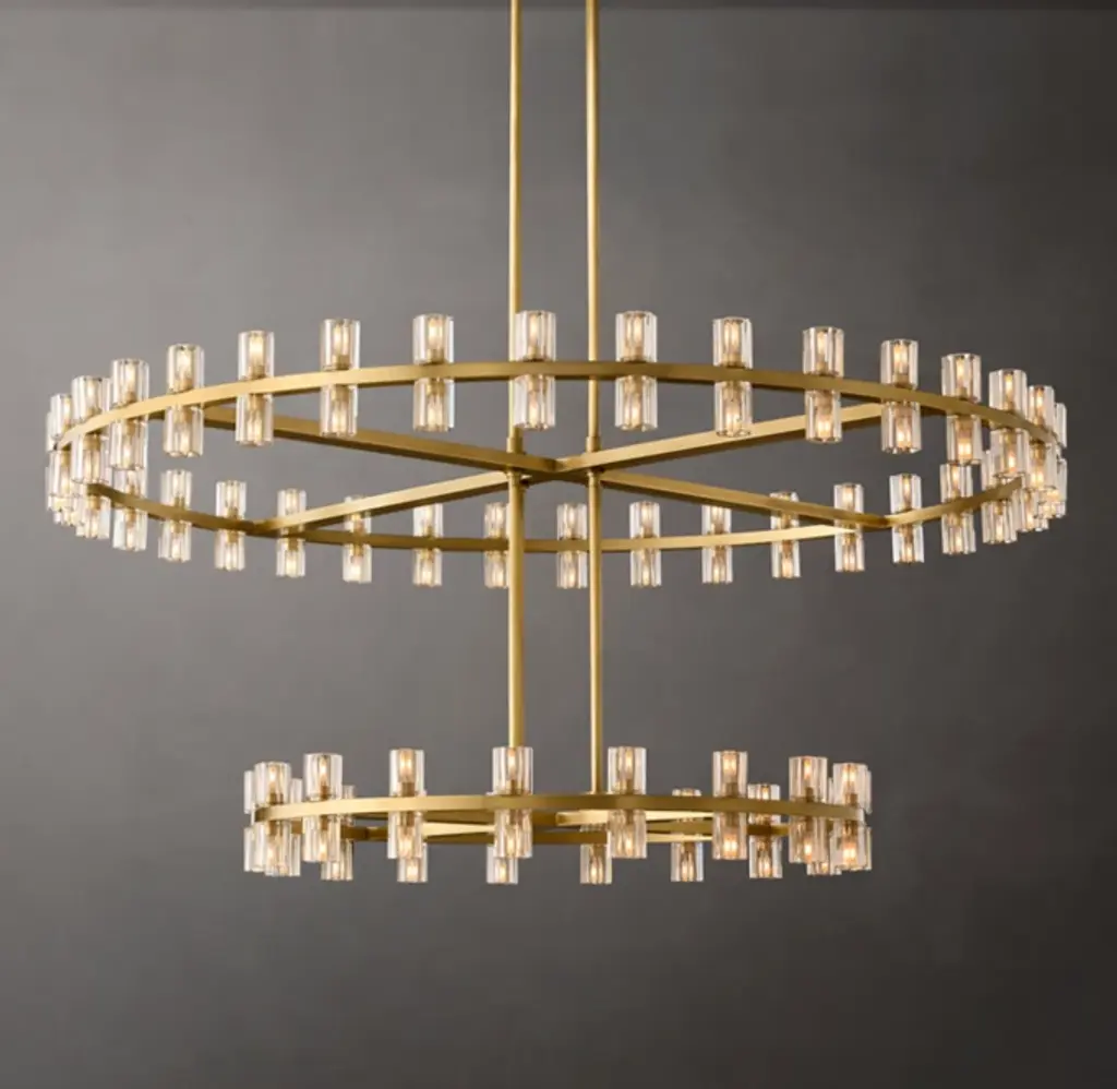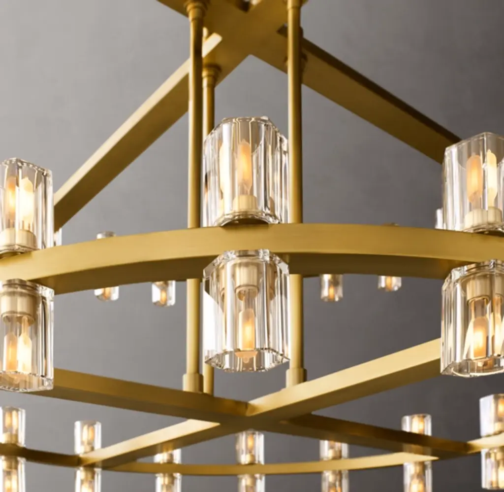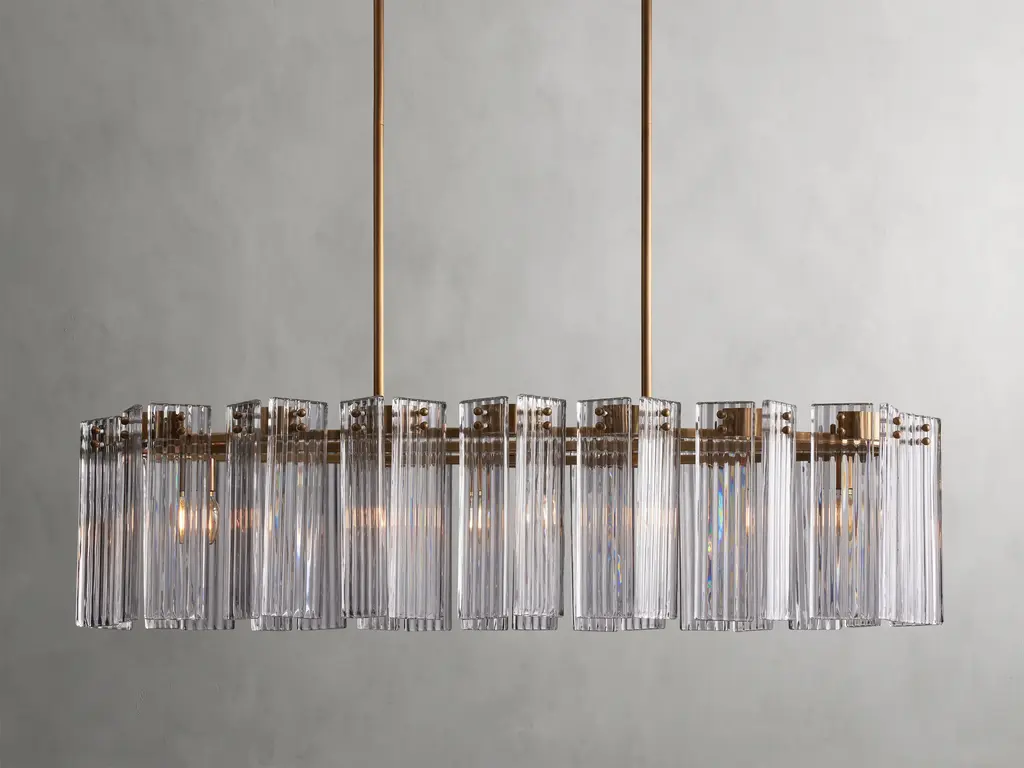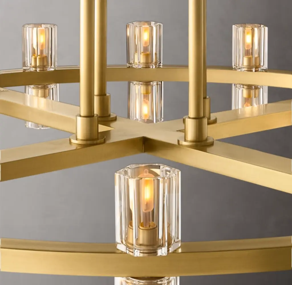 Jonathan Browning's rhythmic design for the Arcachon collection is inspired by the shape and scale of industrial gears, where spokes intersperse with negative space in order to interlock with other gears. Here, the spokes are hexagonal forms juxtaposed with rounded interiors, beautifully crafted of crystal glass, running along a simple, solid metal frame.SHOP THE ENTIRE COLLECTION