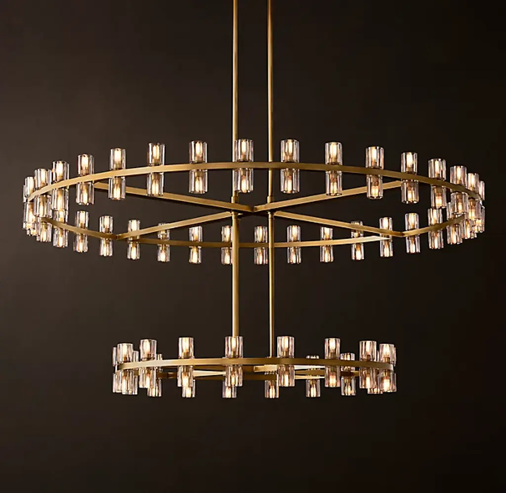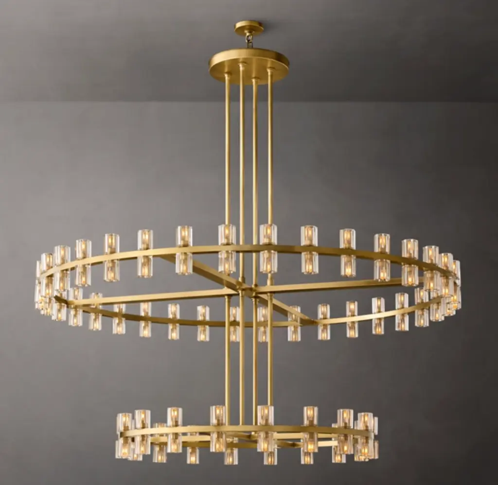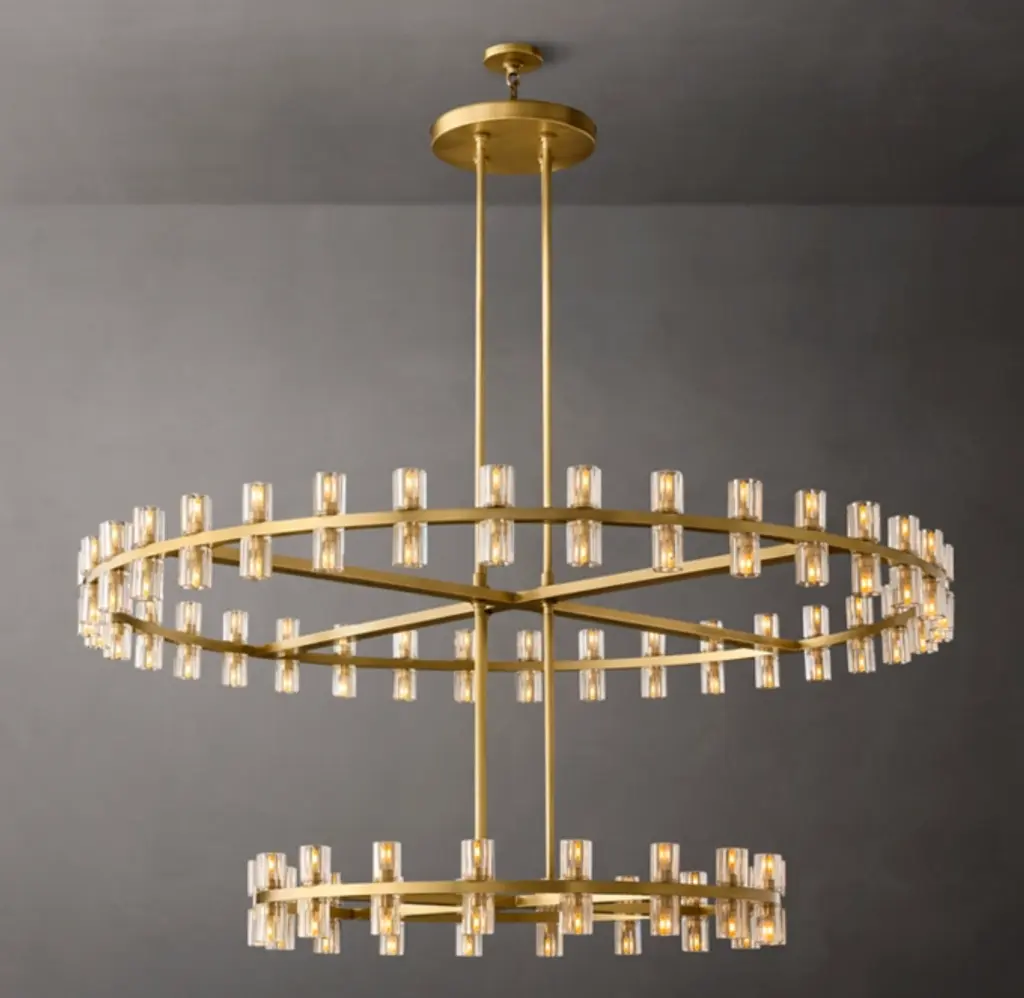 Jonathan Browning's rhythmic design for the Arcachon collection is inspired by the shape and scale of industrial gears, where spokes intersperse with negative space in order to interlock with other gears. Here, the spokes are hexagonal forms juxtaposed with rounded interiors, beautifully crafted of crystal glass, running along a simple, solid metal frame.SHOP THE ENTIRE COLLECTION