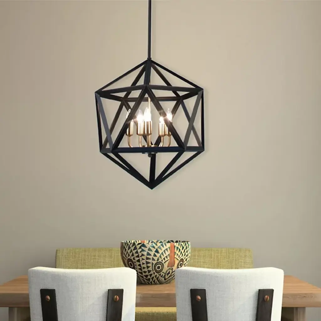 Give your inside ceilings a tasteful touch with the Archello Chandelier by Dainolite. Anchored from above with a smooth disc canopy, it uses a long downrod to support three open candelabra-style lamps from a central hub. The lamping rests inside a geometric frame of flat-sided metal branches, forming triangular facets that mellow some of the excess glare from within, lending the fixture an airy ambiance able to enhance a variety of décor styles.