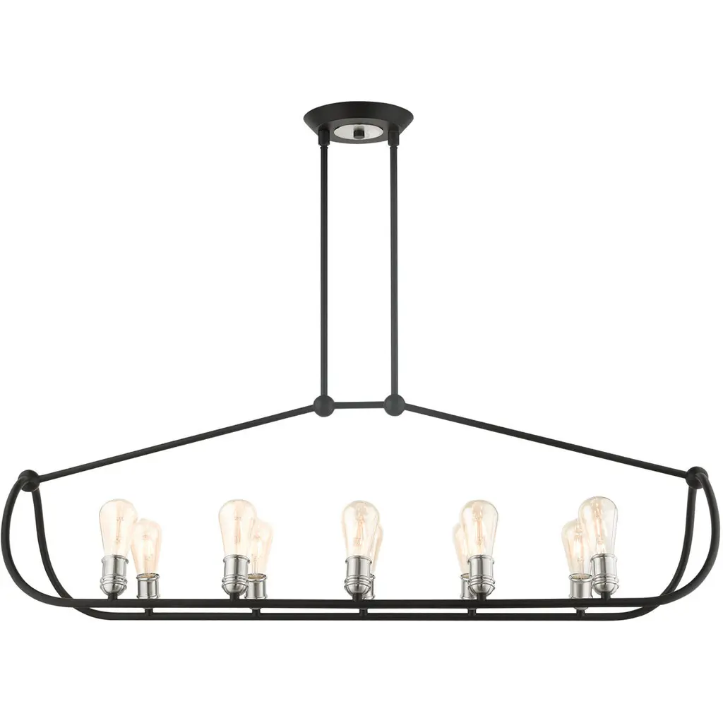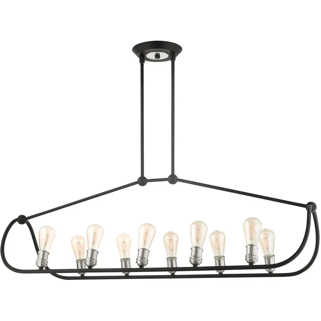 Archer 10 Light 48 Inch Textured Black With Brushed Nickel Accents Linear Chandelier Ceiling Light