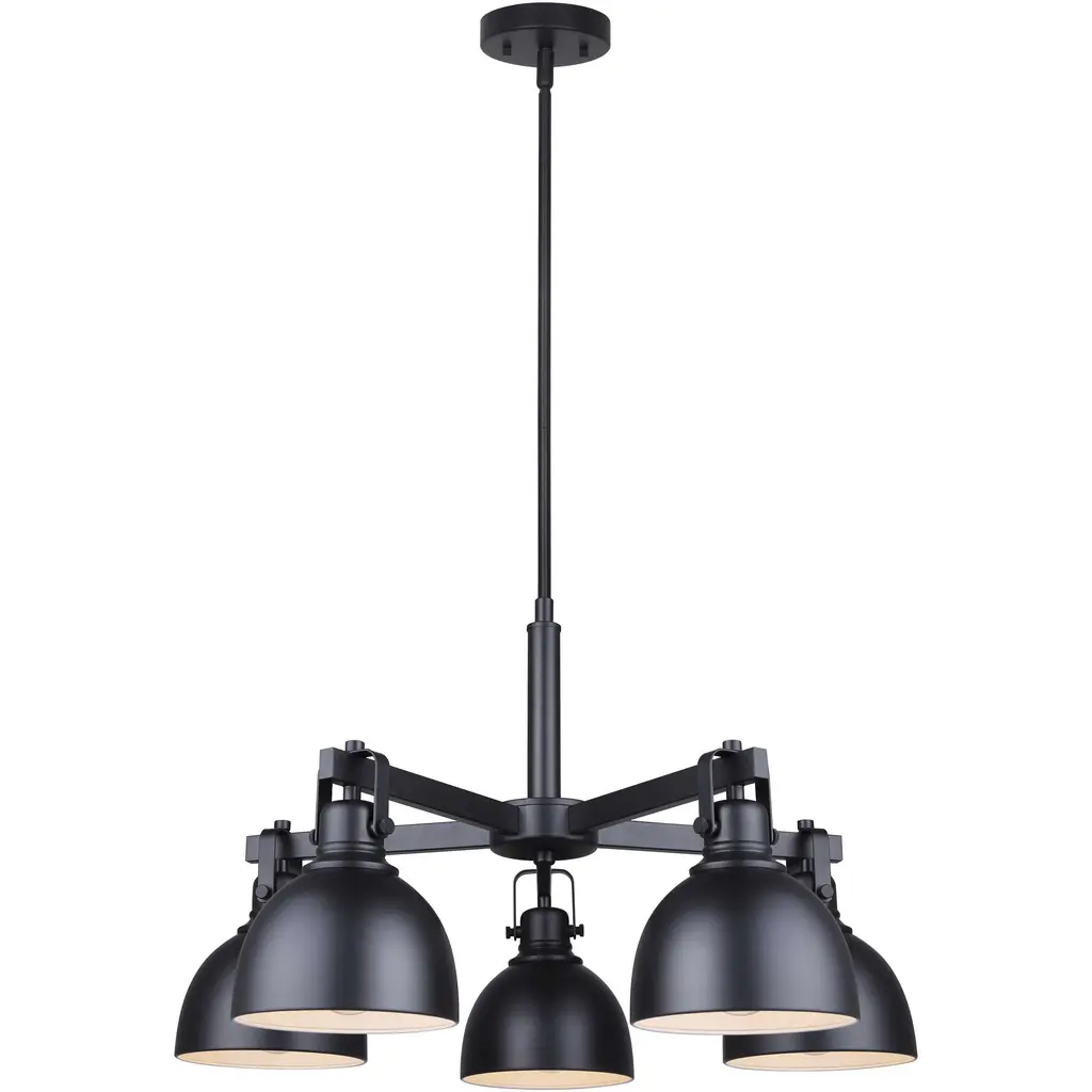 The Archer Chandelier by Alora Mood is a handsome addition to spaces with a bold, defined silhouette. A single down rod supports a collection of crisp, tapered shades with open tops that are accented by metal straps and grommet detailing. Allowing plenty of illumination to be cast down onto surroundings, this chandelier also offers a little ambient light to the space above it, highlighting the build of this piece and creating a welcoming environment.