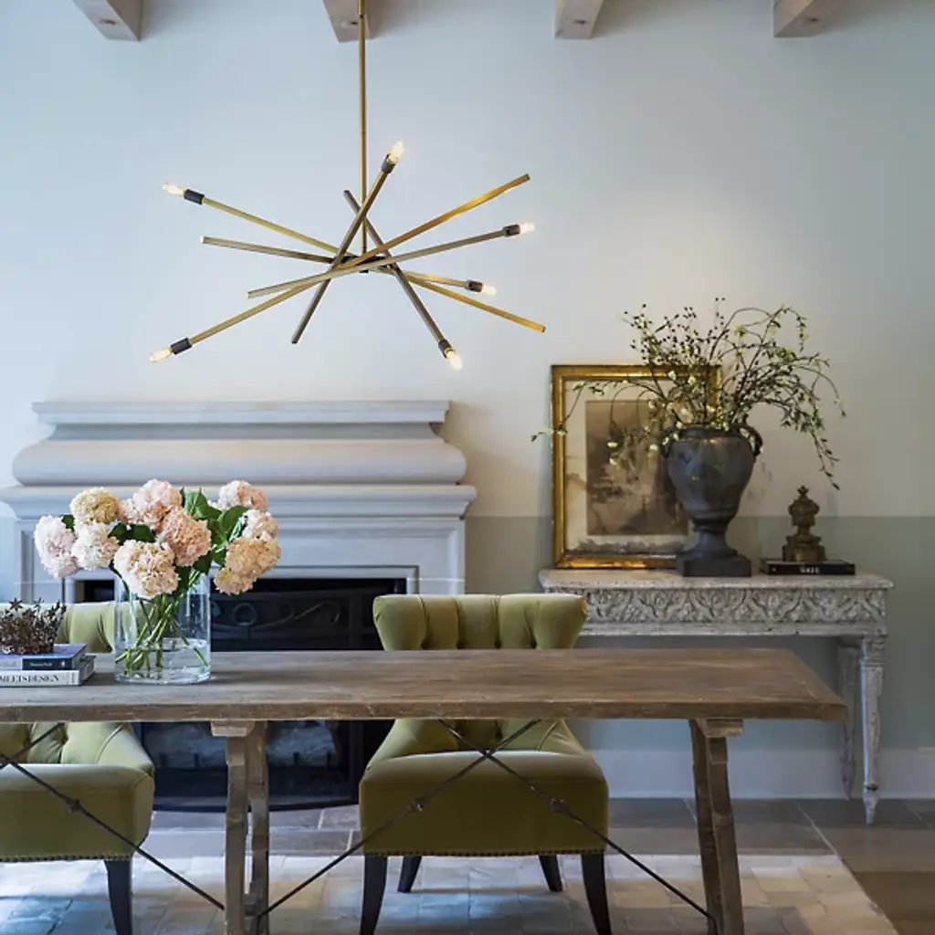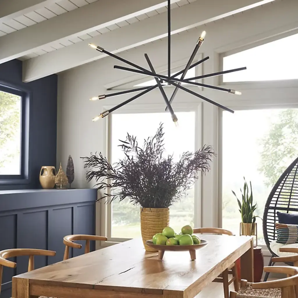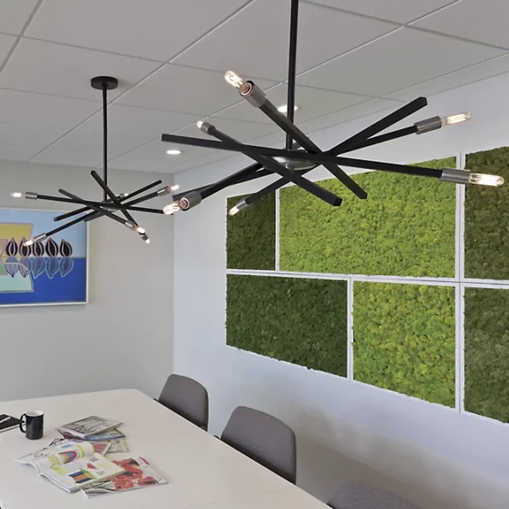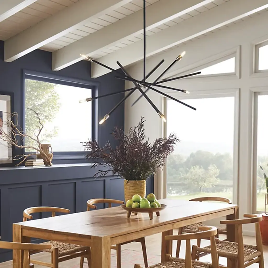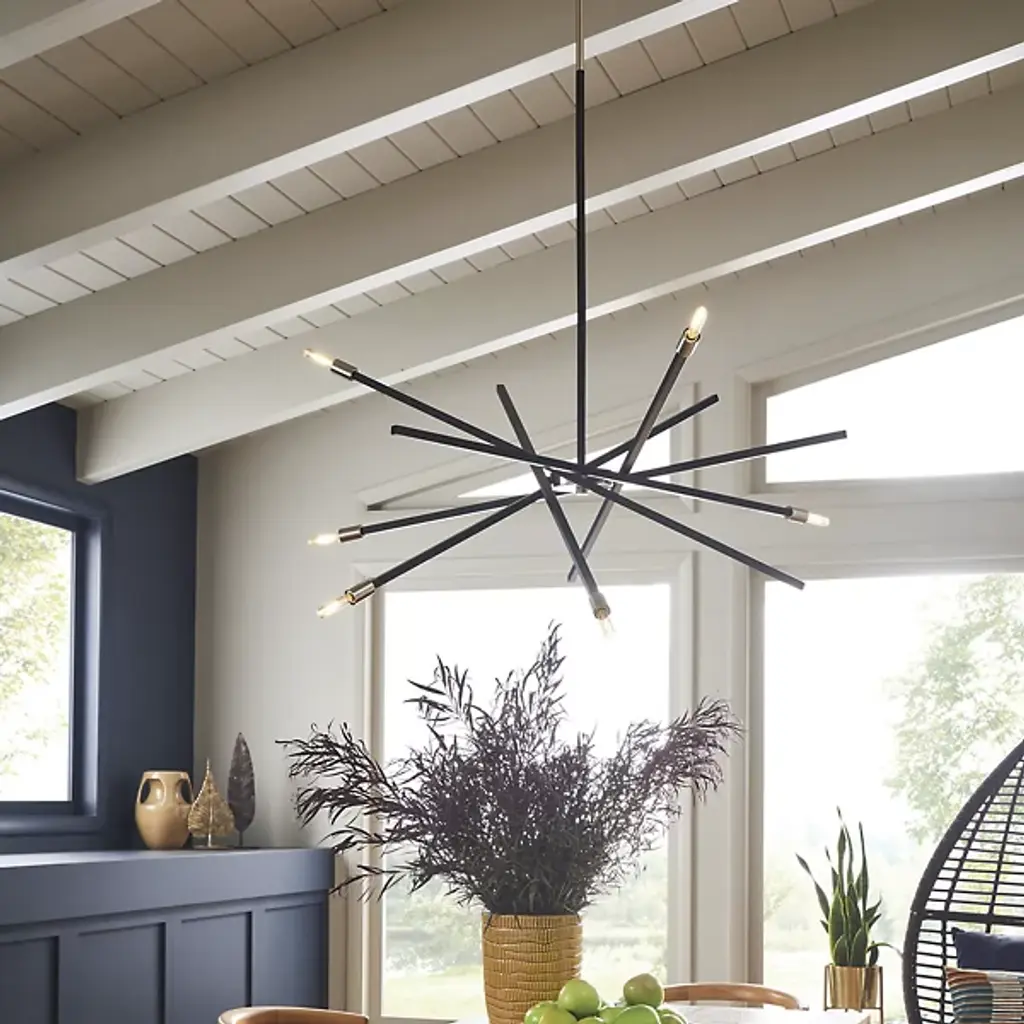 A straight shot to ceiling lighting excellence. The distinctive, angular design of the Archer Chandelier by Hinkley Lighting is perfect for adding a vibrant, almost mobile quality to your ceiling, as it provides powerful yet warm indirect lighting from multiple points. The Steel constructed chandelier consists of a conventionally made cylindrical stem extending from a thick circular canopy, as well as a series of rectangular rods that hold the chandelier’s bulbs, each angled at a different orientation to create a multidirectional lighting pattern.