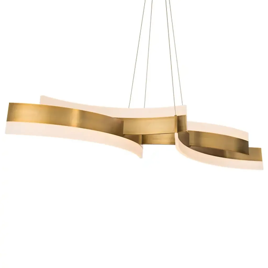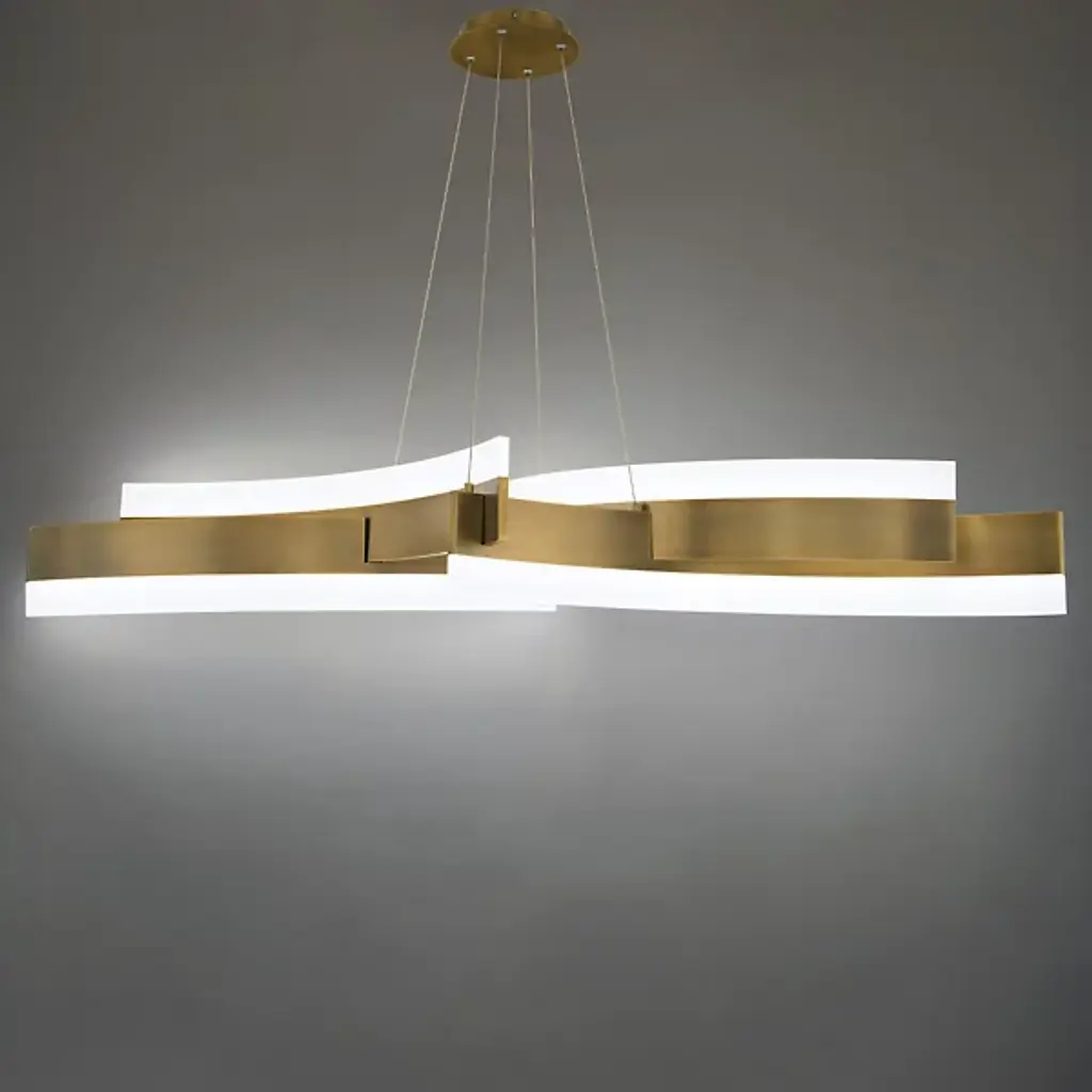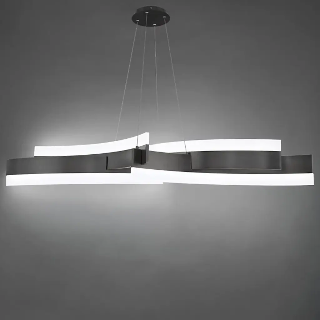 The Arcs LED Chandelier by Modern Forms makes a dramatic statement in the spaces it brightens. Sleek concave and convex arcs with a beautiful finish intersect and mirror each other as they support curved, etched light guides that extend above and below this piece, diffusing a lovely layer of energy-efficient light. Keeping the sweeping silhouette of this chandelier clean and crisp, a set of thin cables effortlessly suspends this piece. Elegant and contemporary, add an artful touch to rooms with this captivating composition.