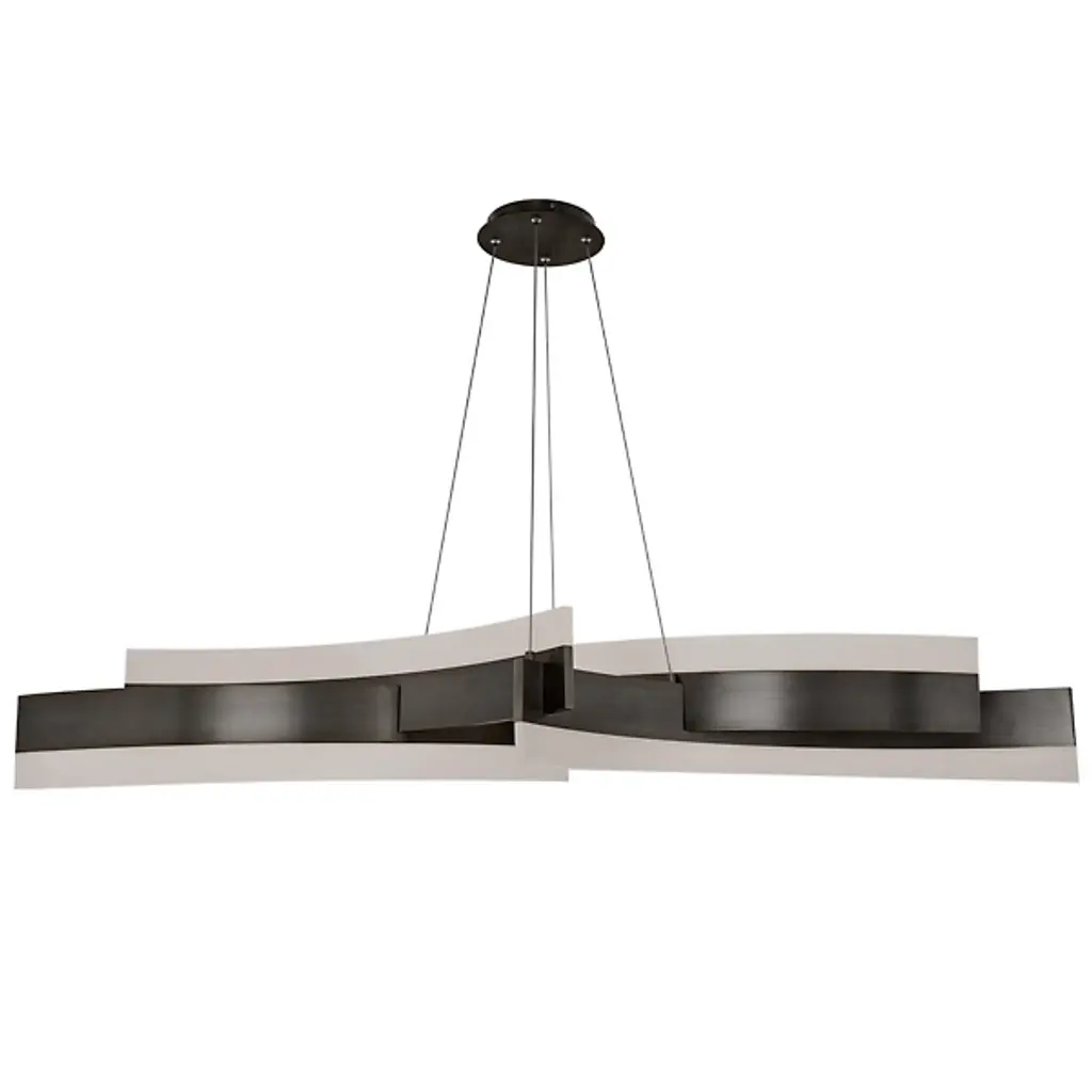 The Arcs LED Chandelier by Modern Forms makes a dramatic statement in the spaces it brightens. Sleek concave and convex arcs with a beautiful finish intersect and mirror each other as they support curved, etched light guides that extend above and below this piece, diffusing a lovely layer of energy-efficient light. Keeping the sweeping silhouette of this chandelier clean and crisp, a set of thin cables effortlessly suspends this piece. Elegant and contemporary, add an artful touch to rooms with this captivating composition.