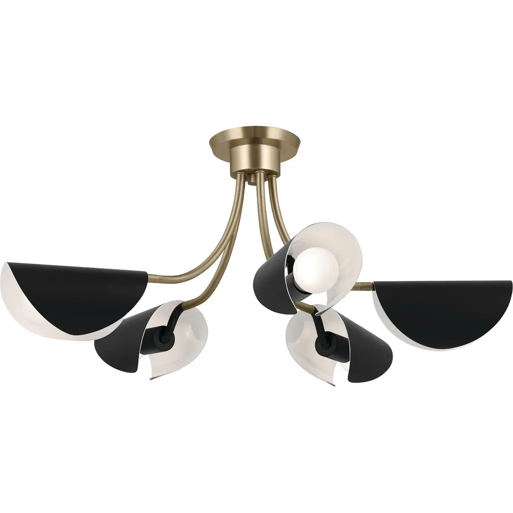 Arcus 29.25 Inch 5 Light Convertible Chandelier in Champagne Bronze with Black