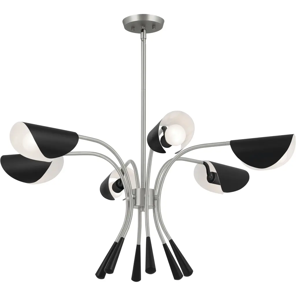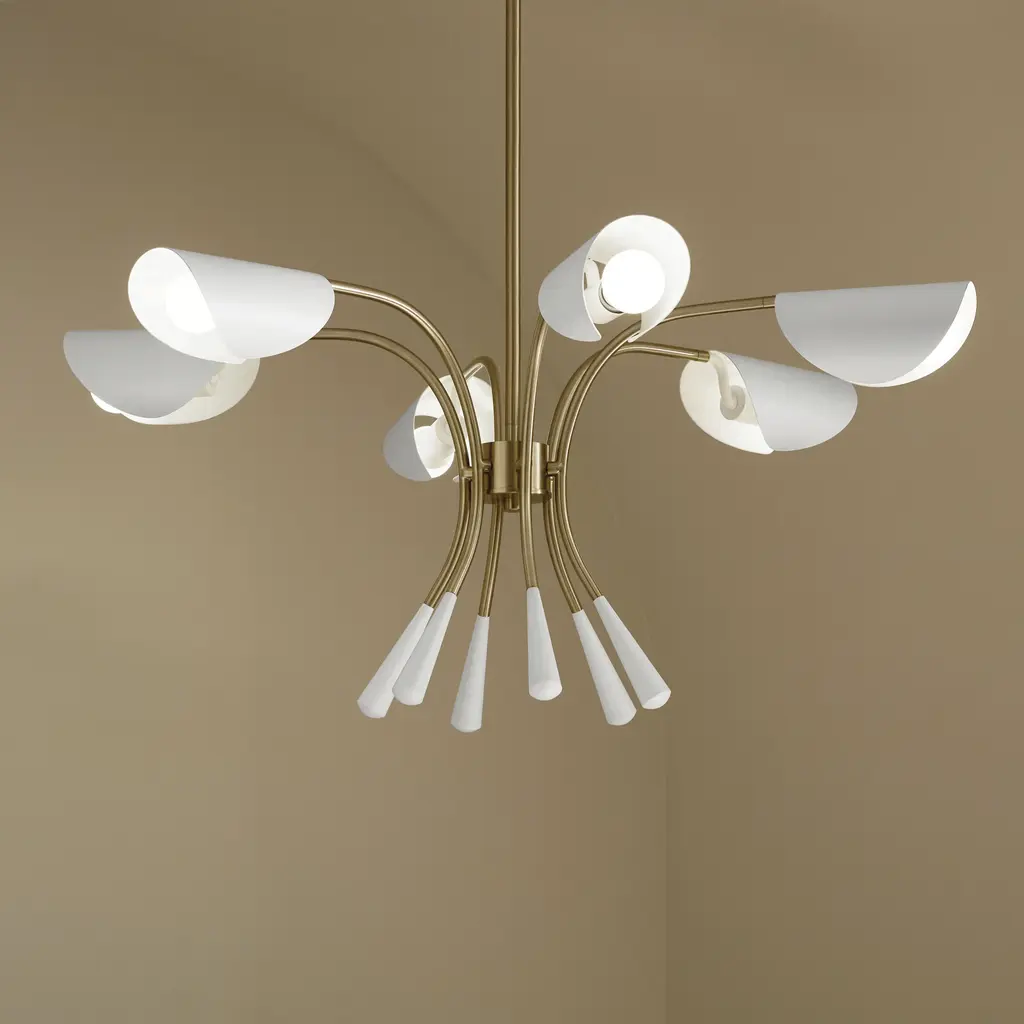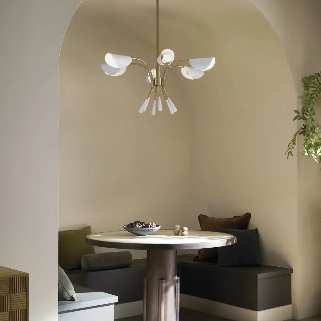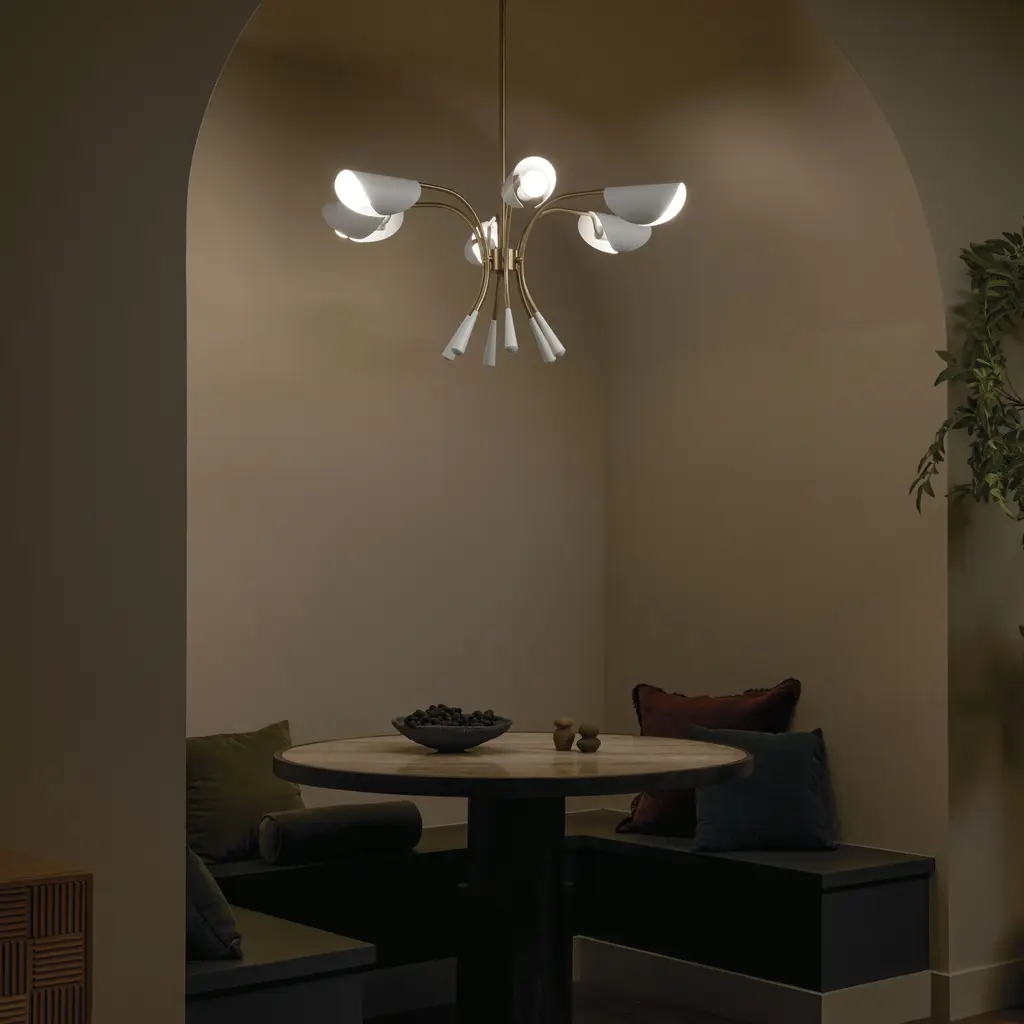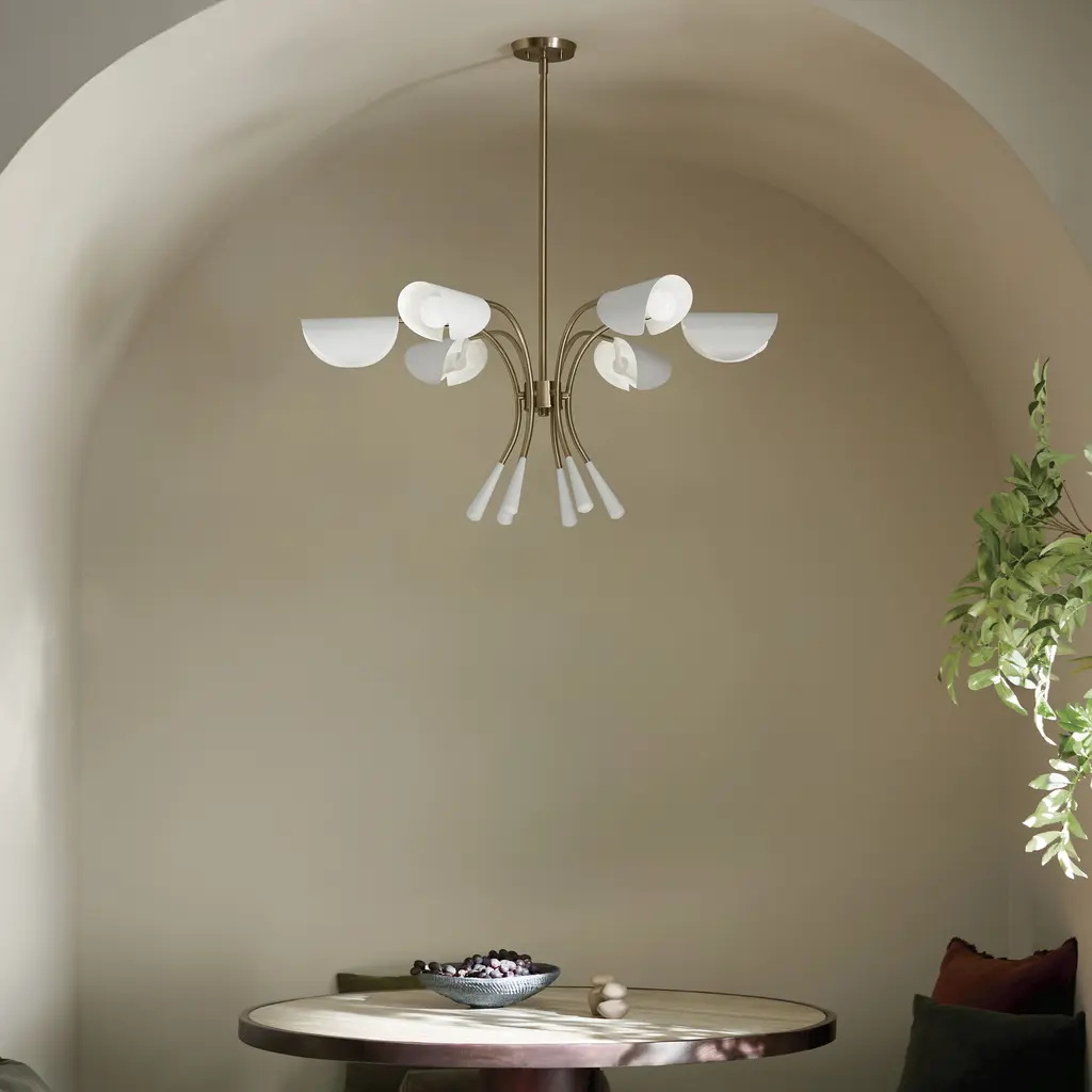 Arcus 39.25 Inch 6 Light Chandelier in Champagne Bronze with White