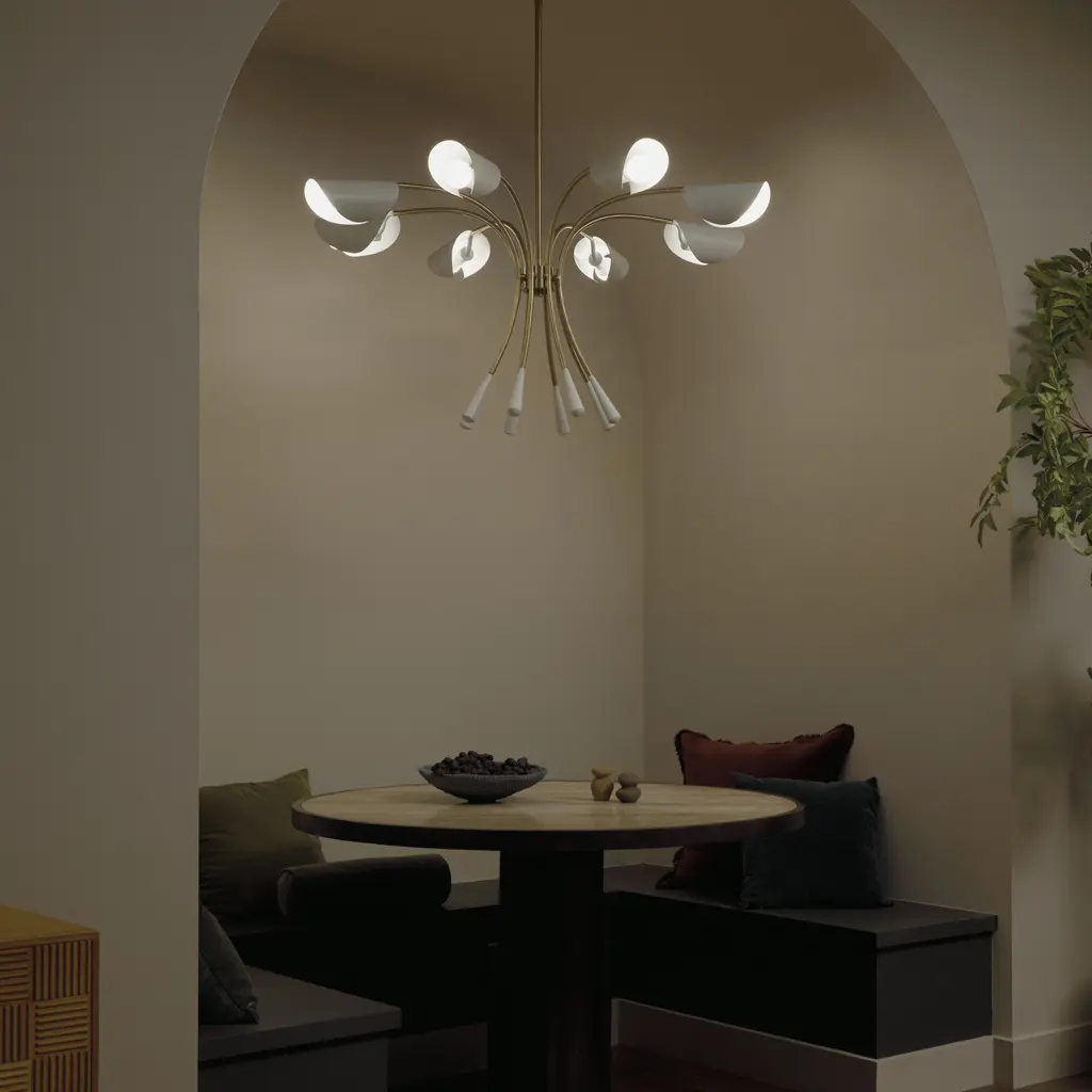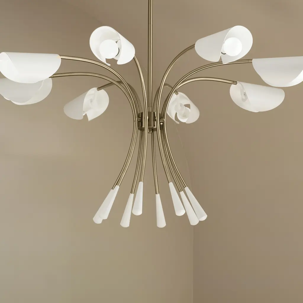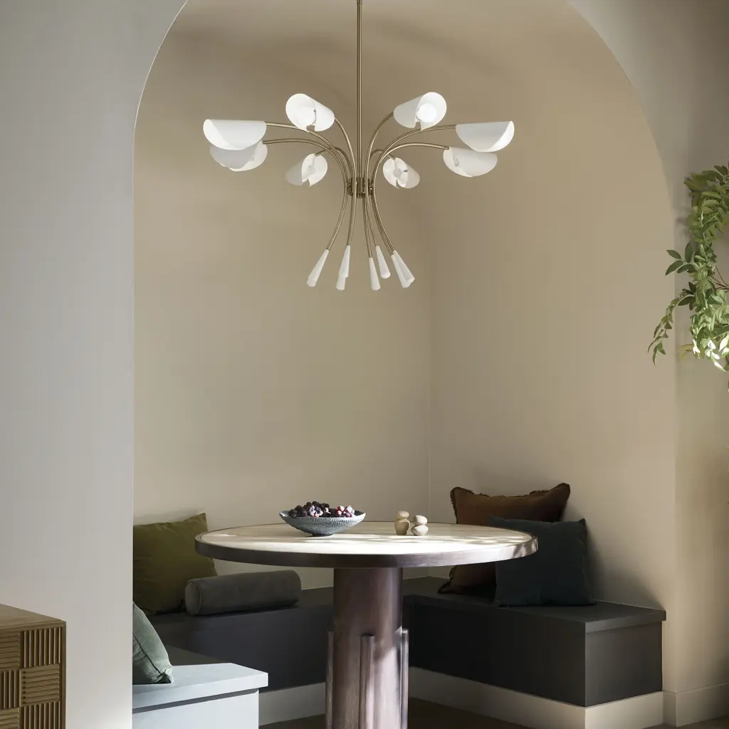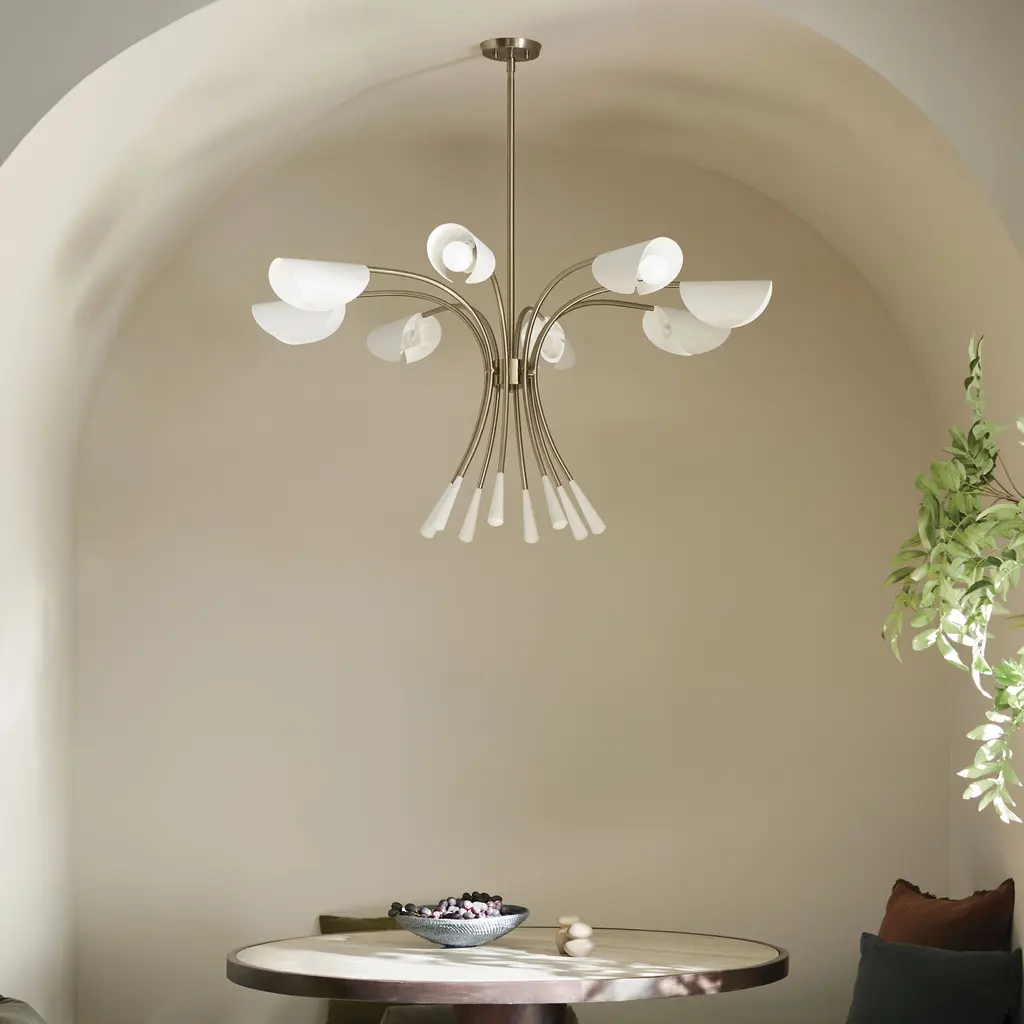Arcus 45.5 Inch 8 Light Chandelier in Champagne Bronze with White