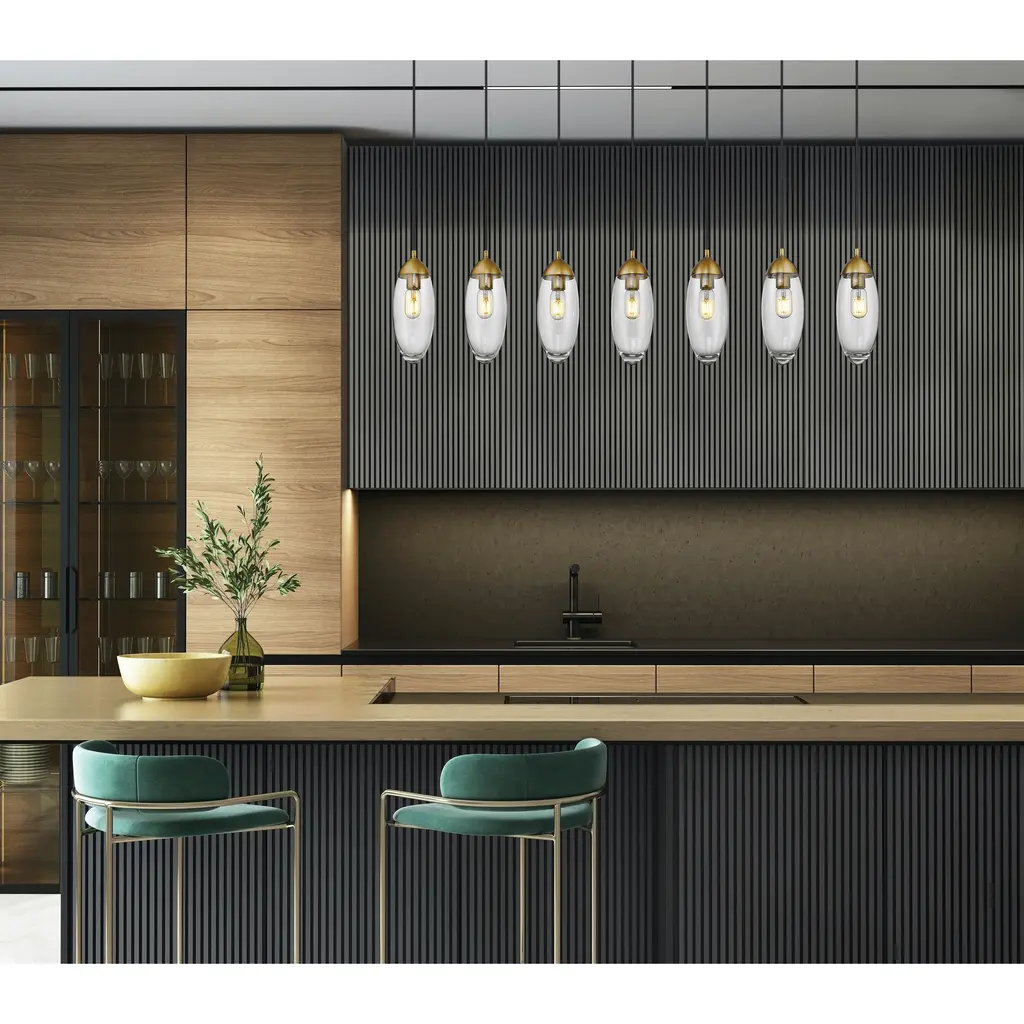 Arden 7 Light 54 Inch Rubbed Brass Linear Chandelier Ceiling Light