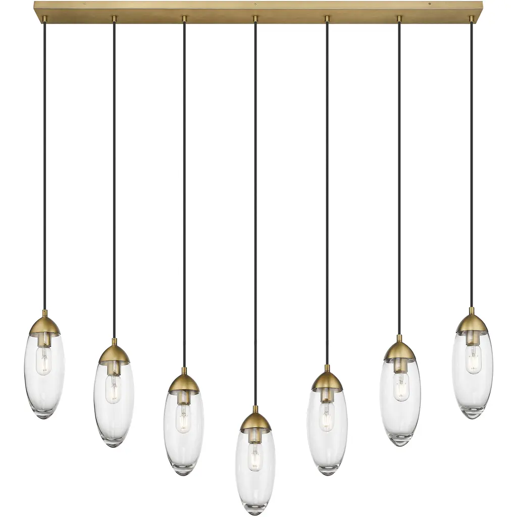 Arden 7 Light 54 Inch Rubbed Brass Linear Chandelier Ceiling Light