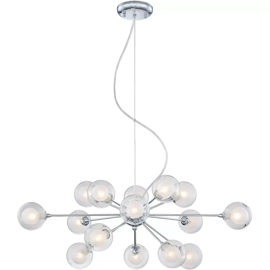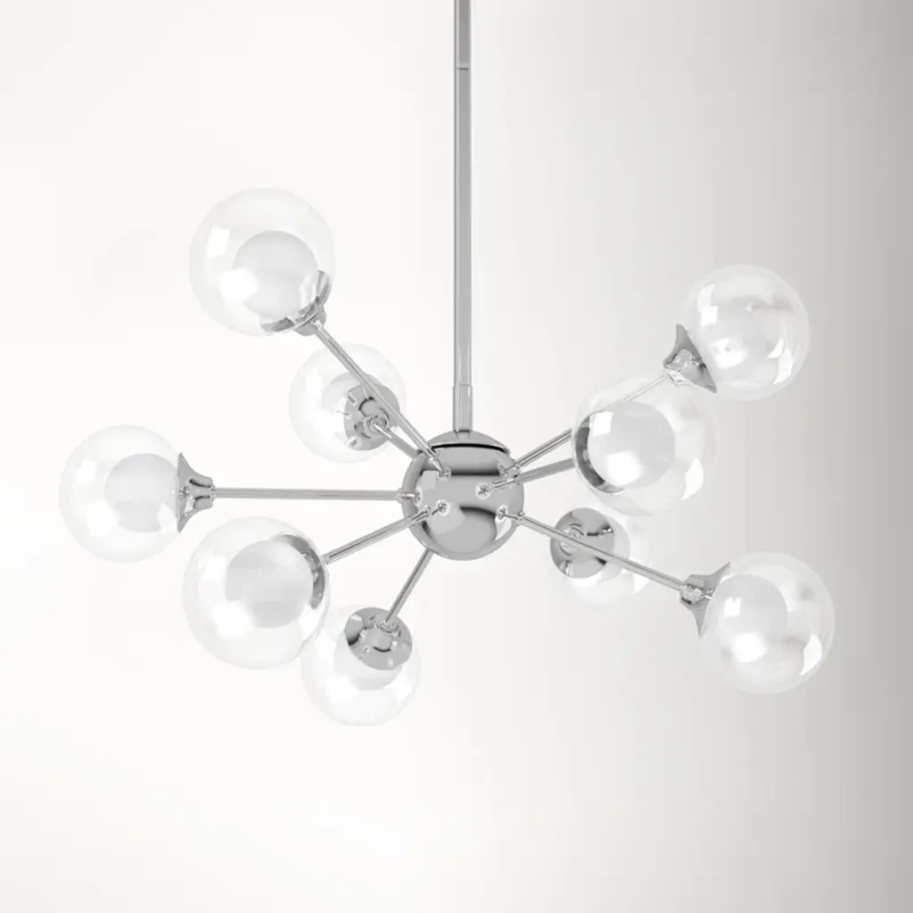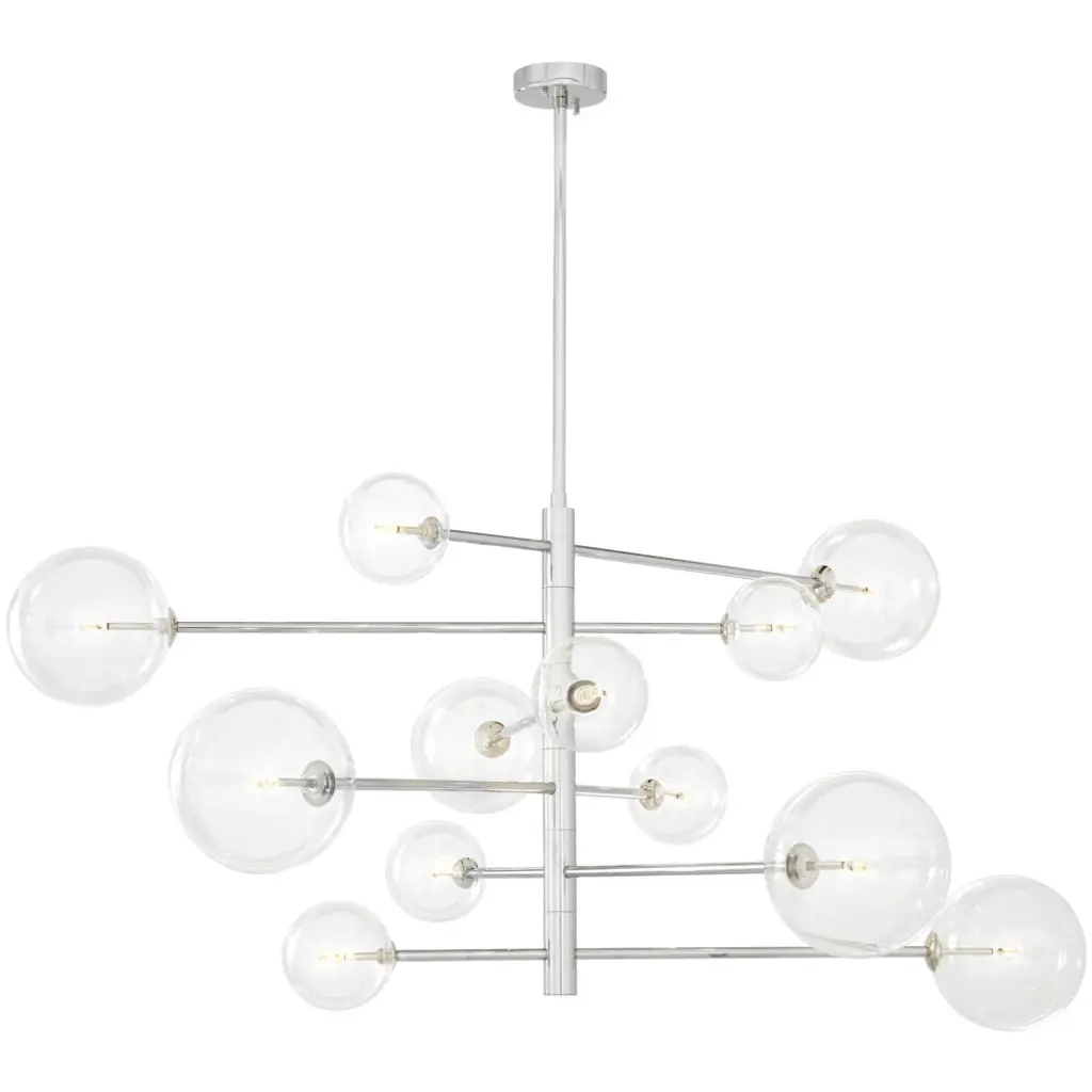 Create a retro-chic focal point in your living space with the Argento L Chandelier. This asymmetrical interpretation of Mid-Century Modern designer lighting instantly elevates your room It features a Nickel finish and 12 hand blown clear glass globes.