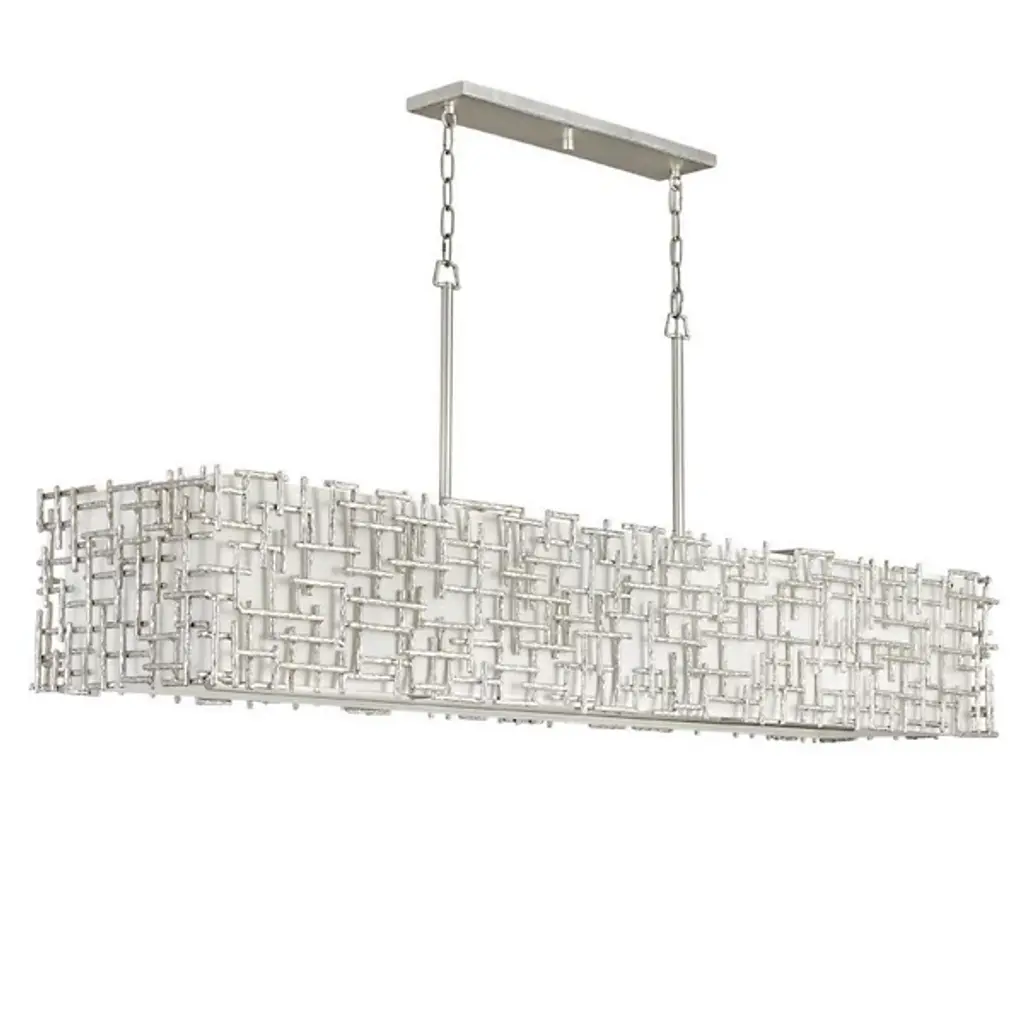 The Argyle Collection showcases a striking cage of glowing, energy-efficient diodes, intricately intersected by sleek metal lines. Its bold silhouette and open design create a contemporary statement, blending modern aesthetics with functional elegance.