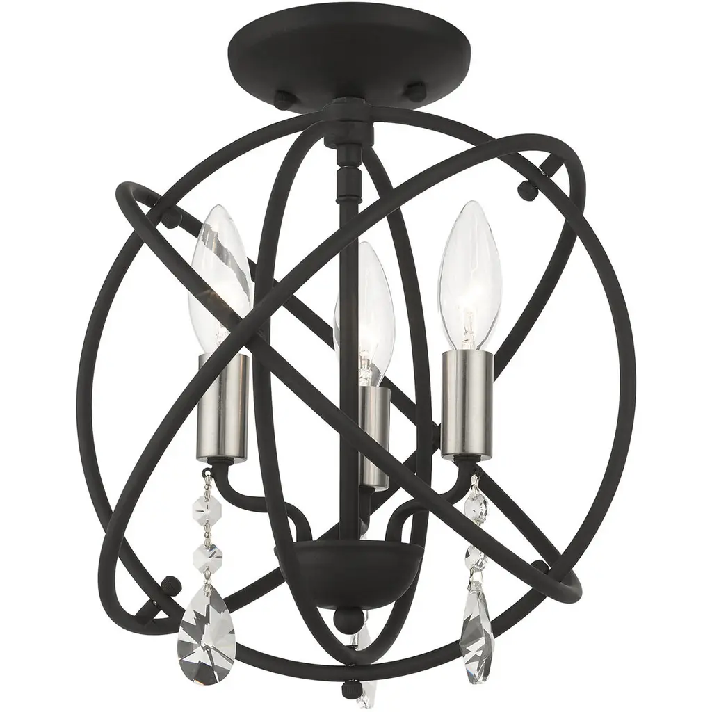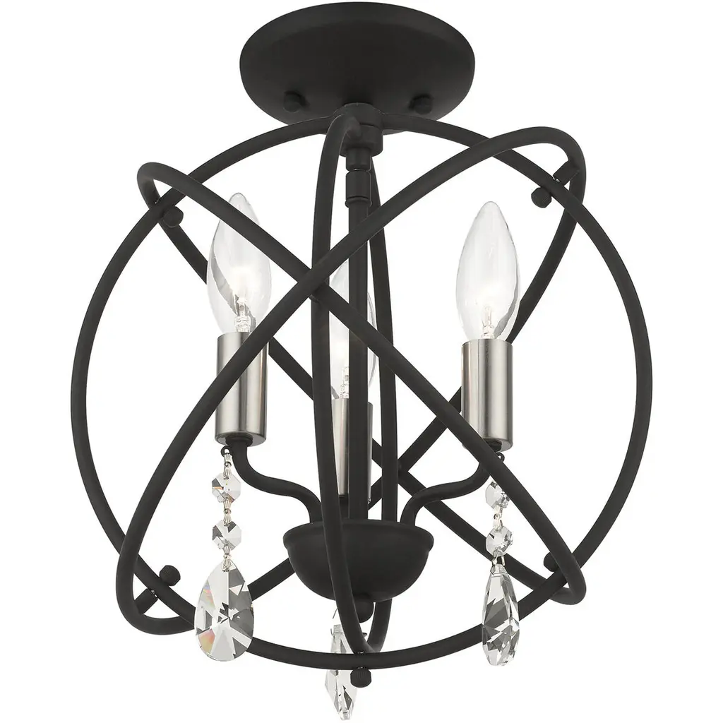 Aria 3 Light 13 Inch Black Convertible Chandelier / Semi Flush Ceiling Light
