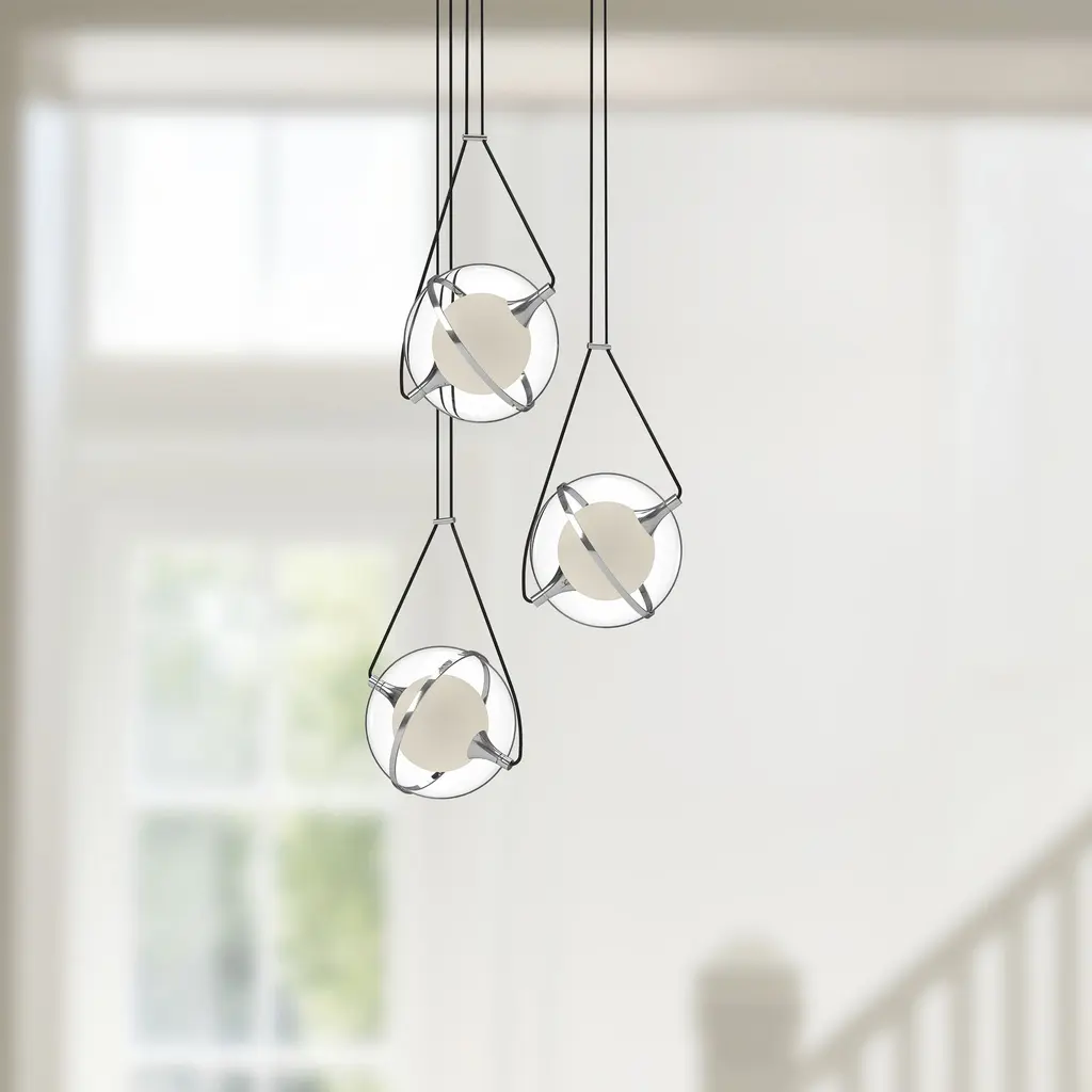 The celestial spheres of the Aries Collection create a one-of-a-kind space that's quite literally out of this world. This fantastic displace of floating light makes a superb statement piece in any style home. Each of the three incredible finishes offers completely adjustable lengths up to 120". The gyroscope-like spheres can also be adjusted for optimal lighting from the interior frosted glass accents