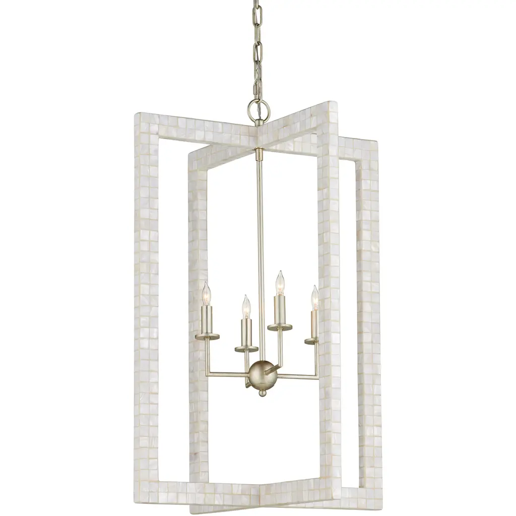 Arietta 4 Light 22 Inch Mother Of Pearl/contemporary Silver Leaf Chandelier Ceiling Light